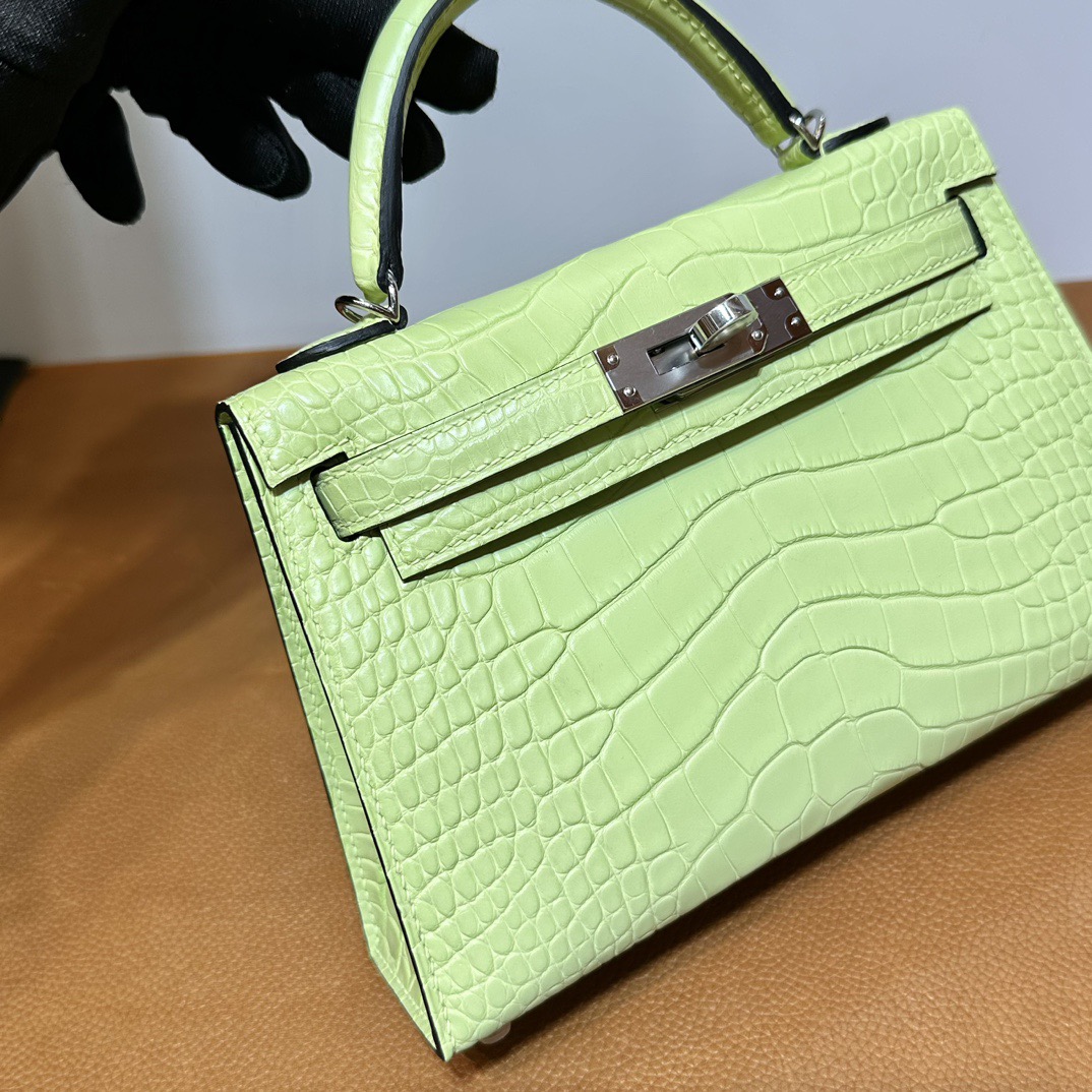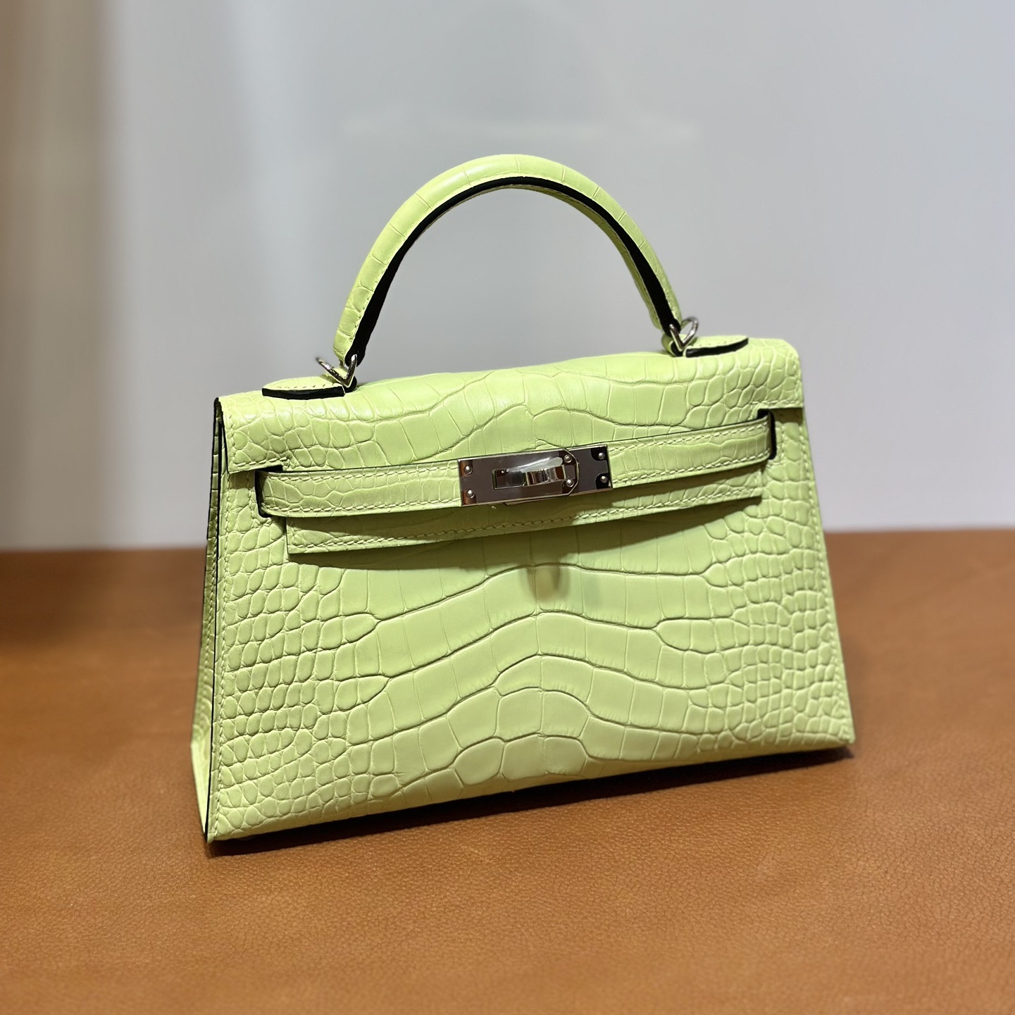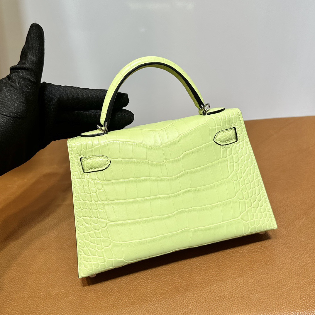Kuwait Hermes Kelly Mini Bag Price Matt Mississippiensis Alligator Crocodile CK9R Lime 柠檬黄 Palladium Hardware(PHW)