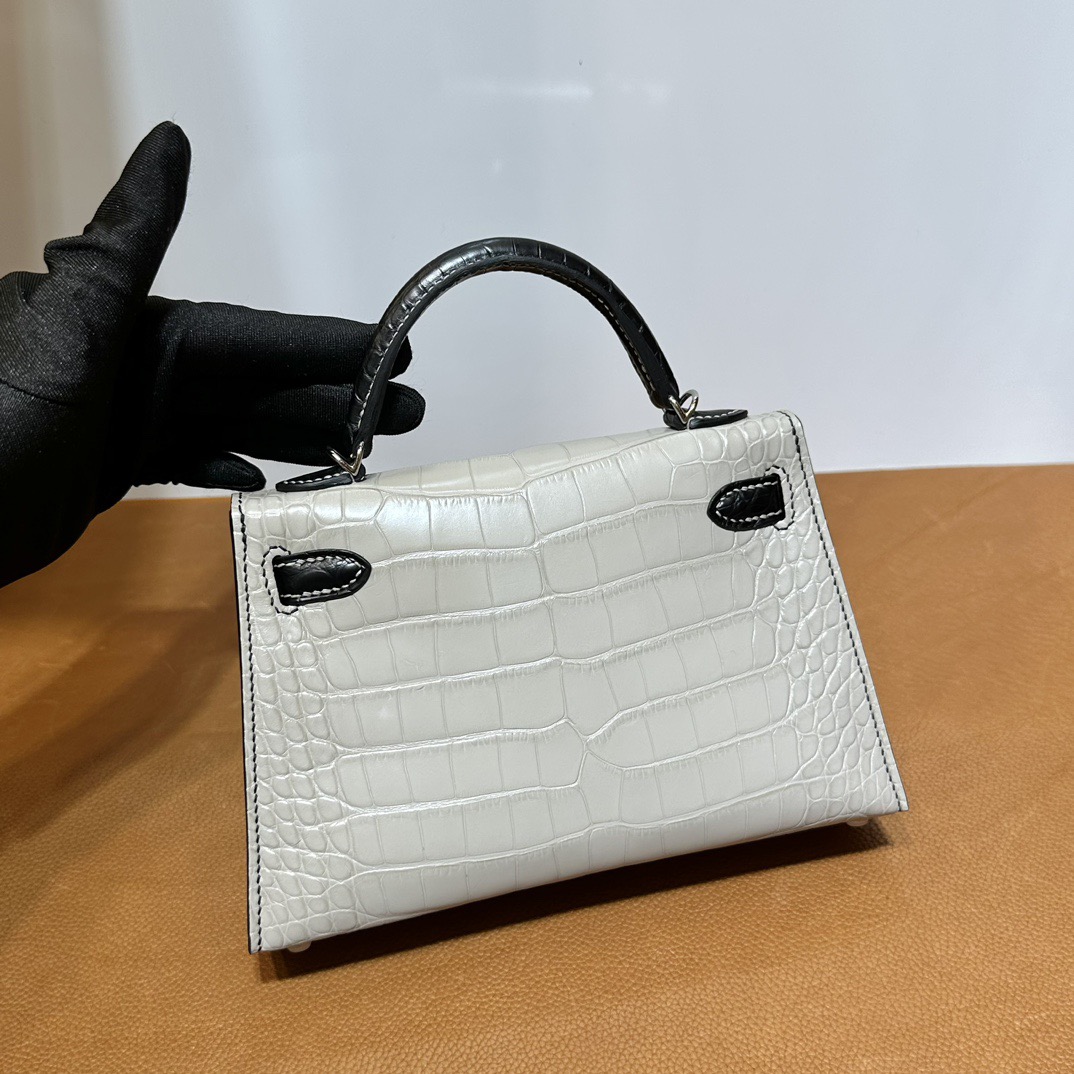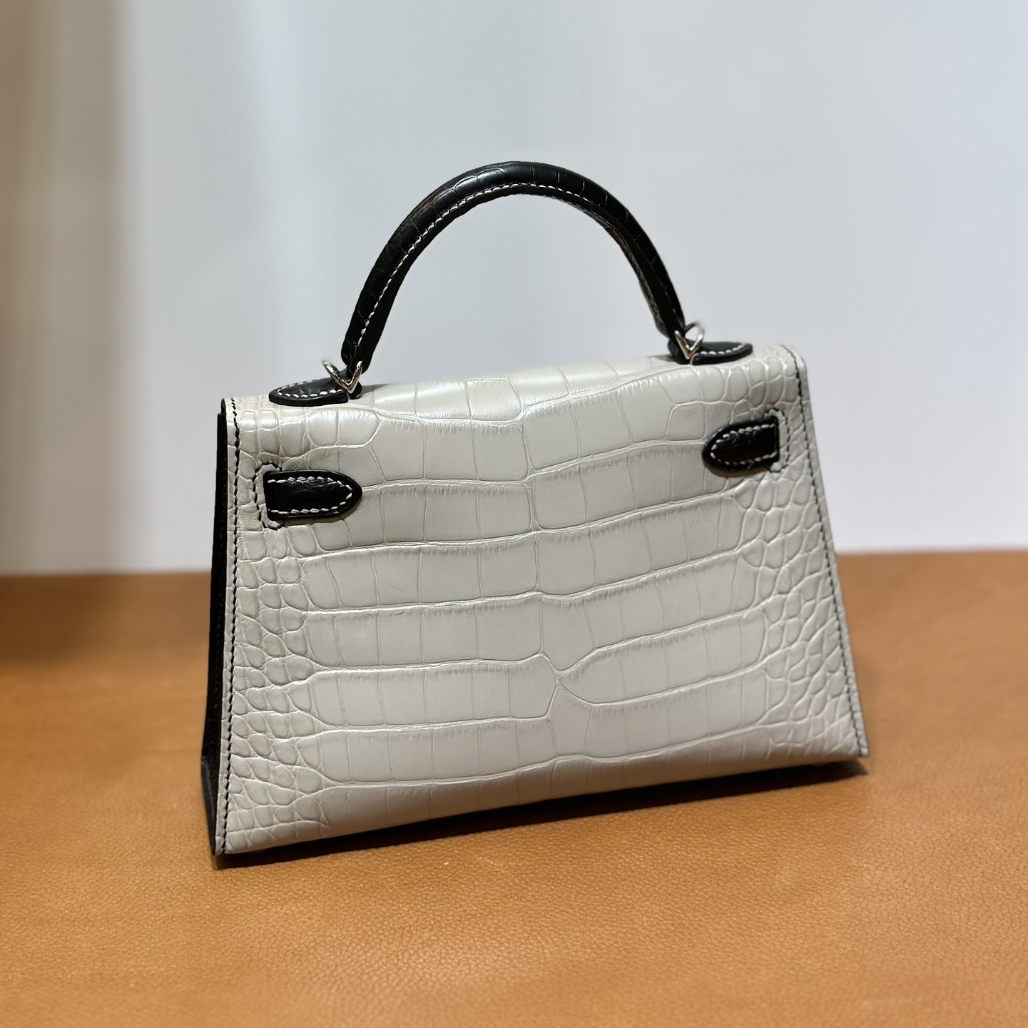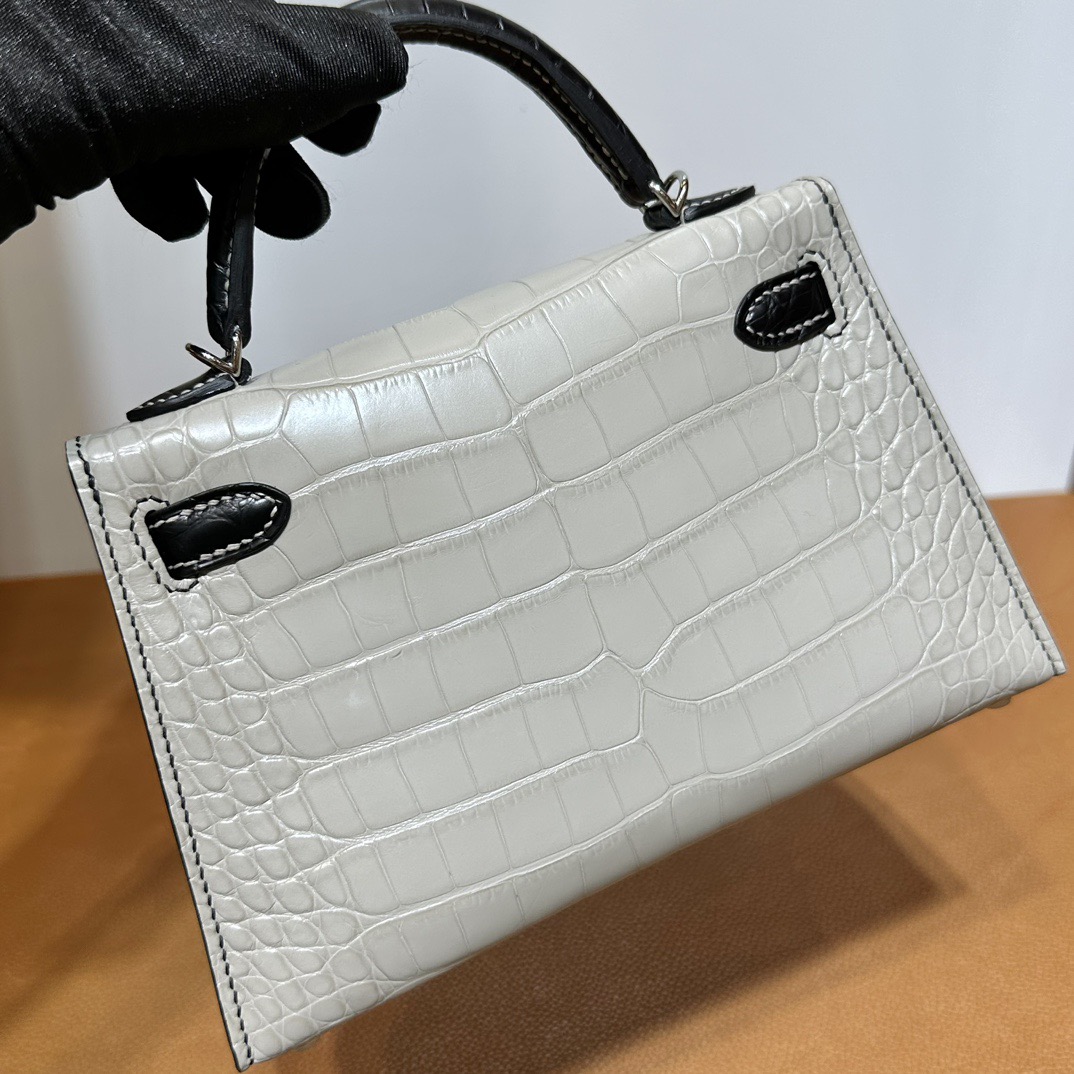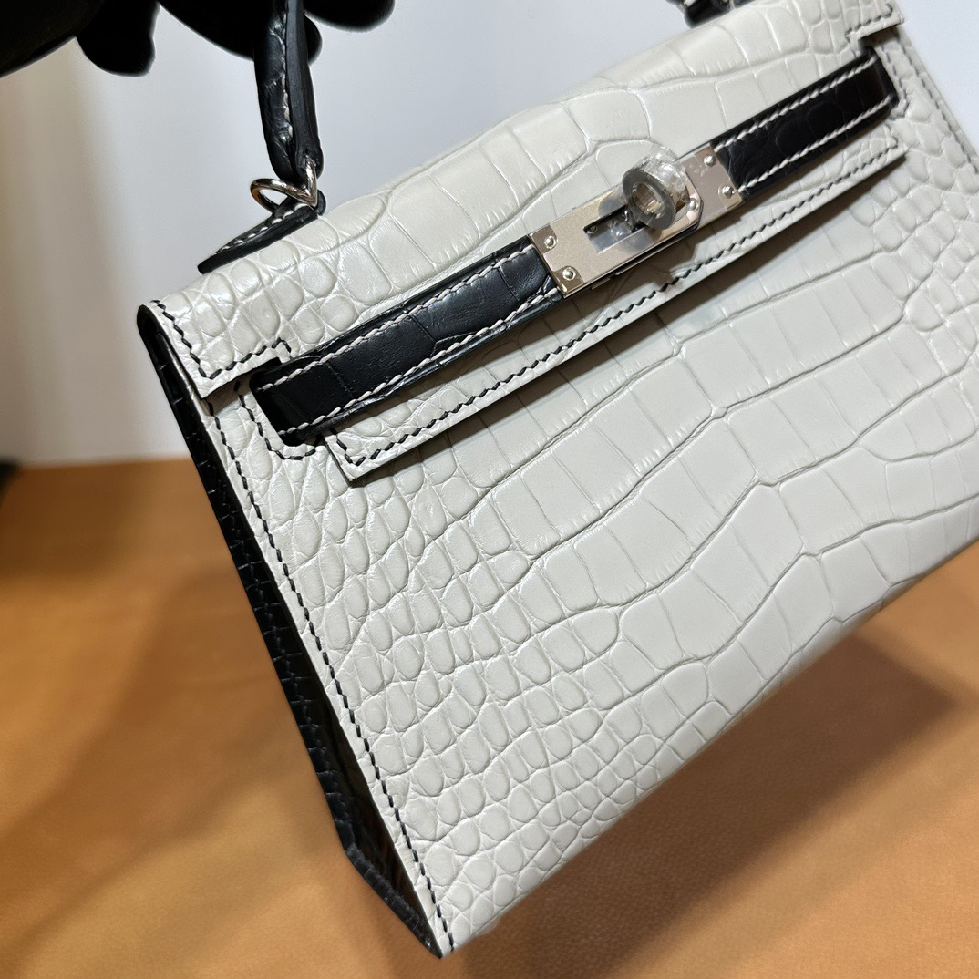 Saudi Arabia Hermes Kelly Mini Bag Price Matt Mississippiensis Alligator Crocodile CK80 Gris Perle 珍珠灰 And CK89 Noir 黑色 Palladium Hardware(PHW)
