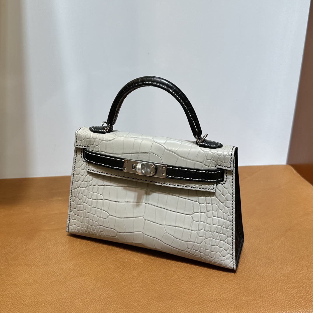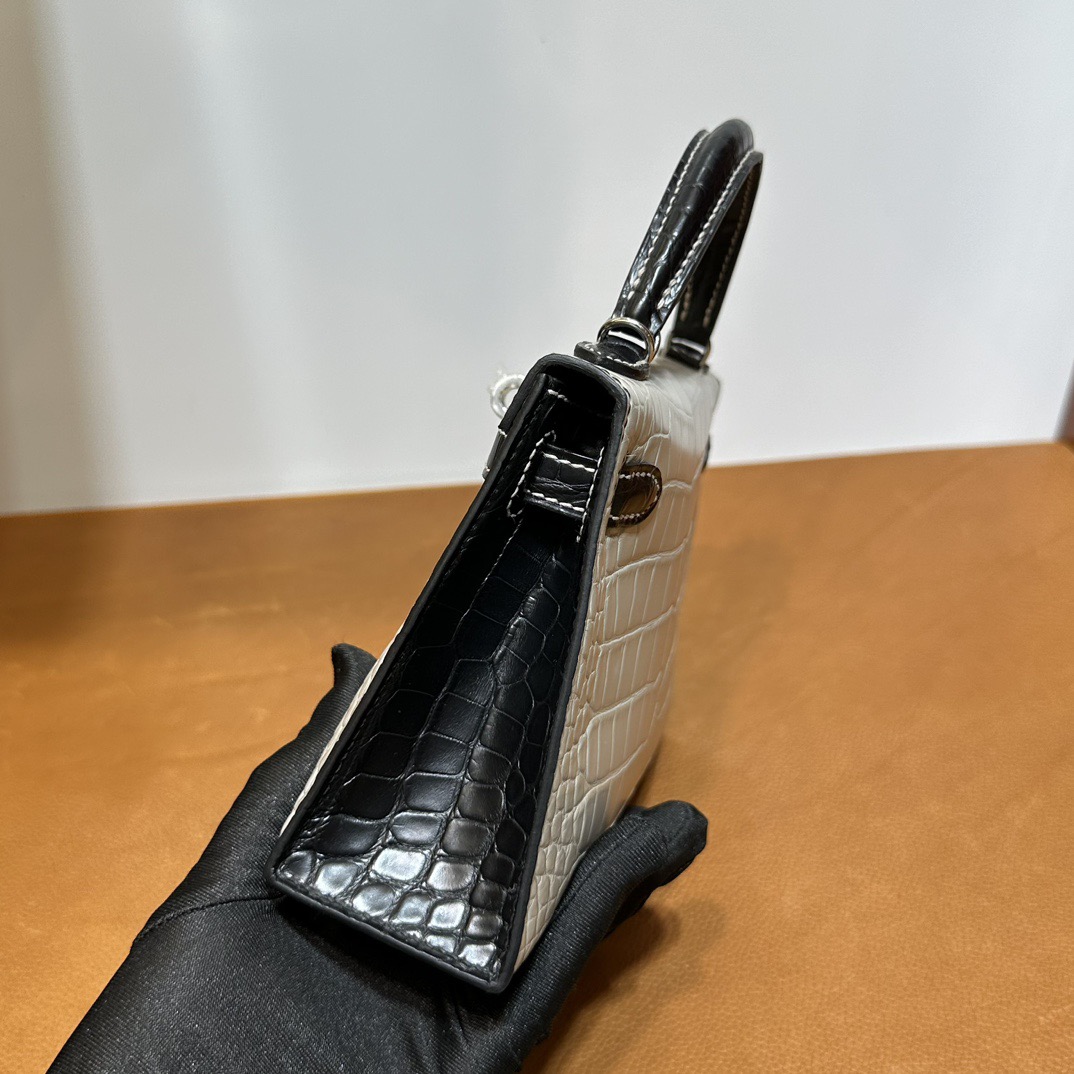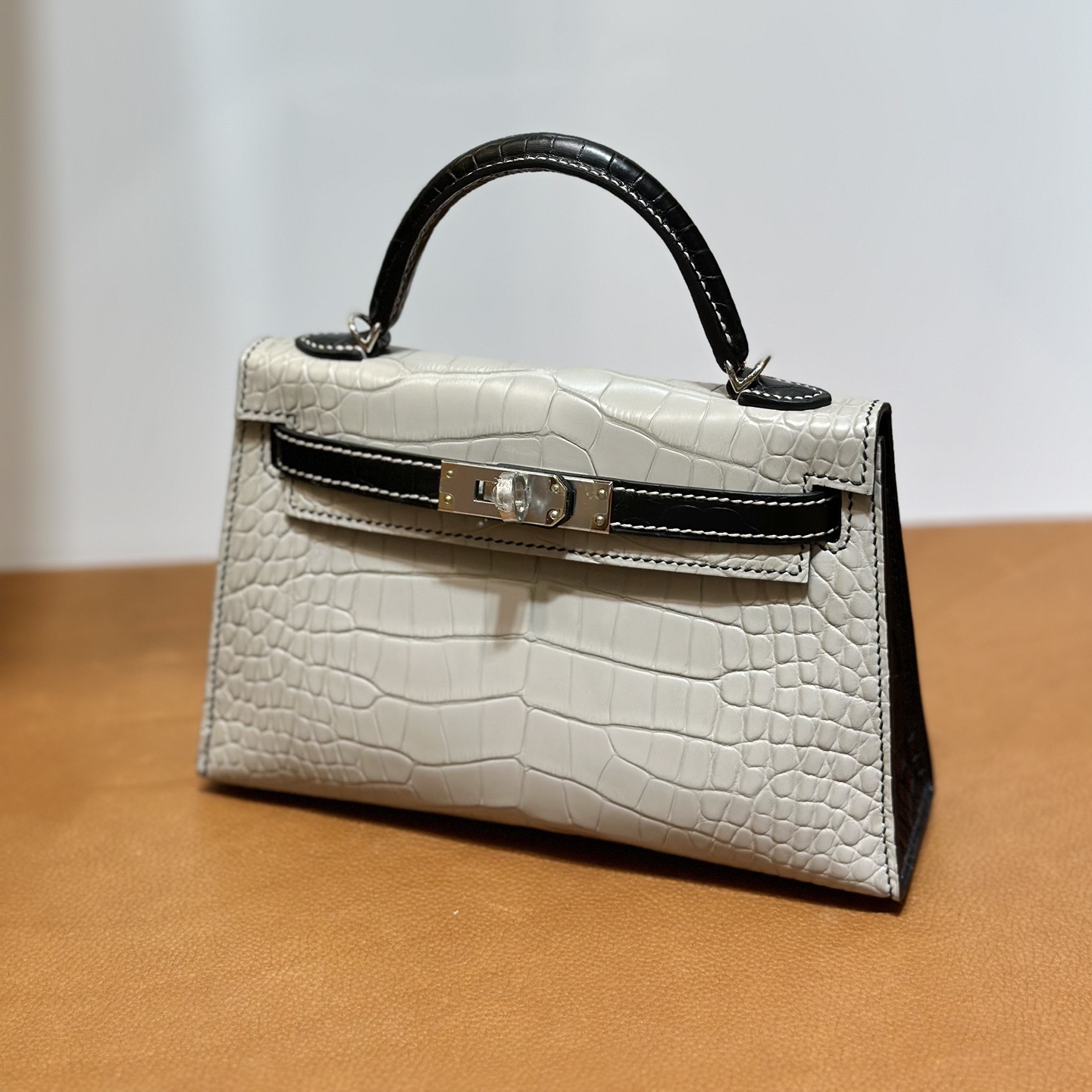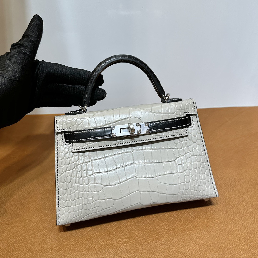 Saudi Arabia Hermes Kelly Mini Bag Price Matt Mississippiensis Alligator Crocodile CK80 Gris Perle 珍珠灰 And CK89 Noir 黑色 Palladium Hardware(PHW)