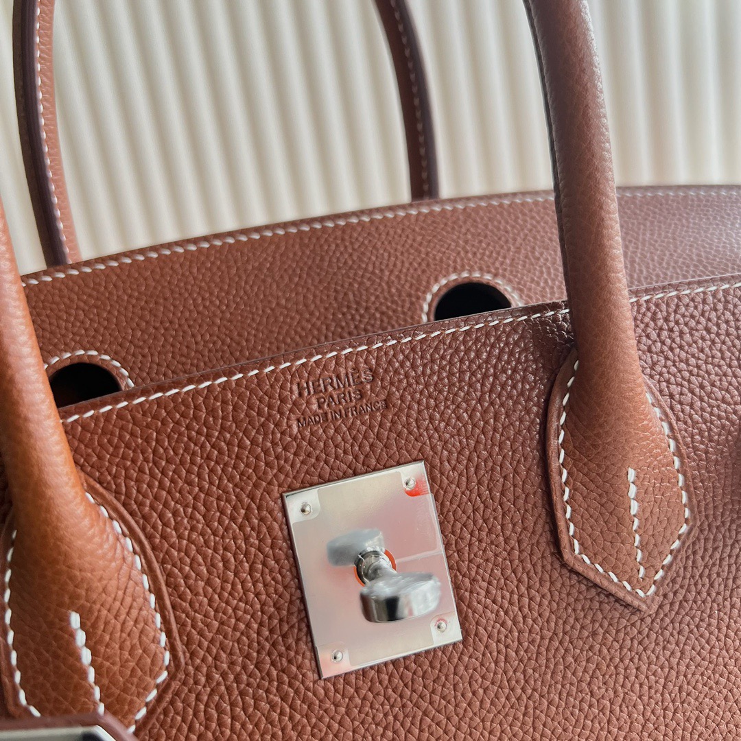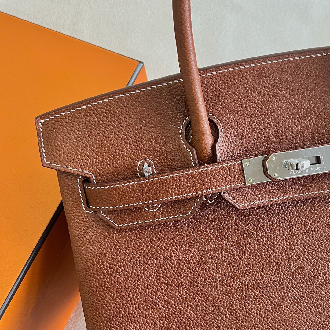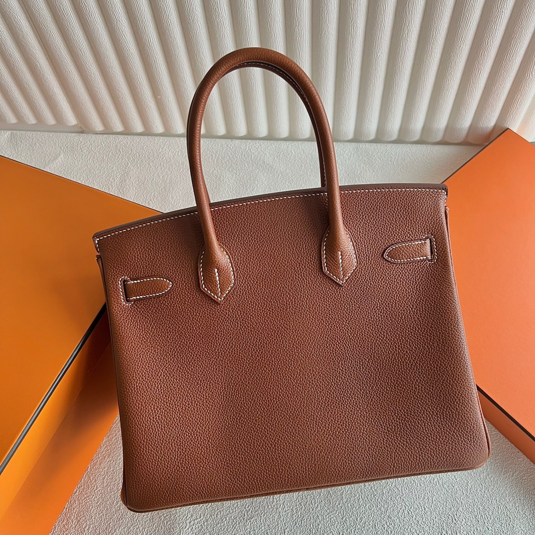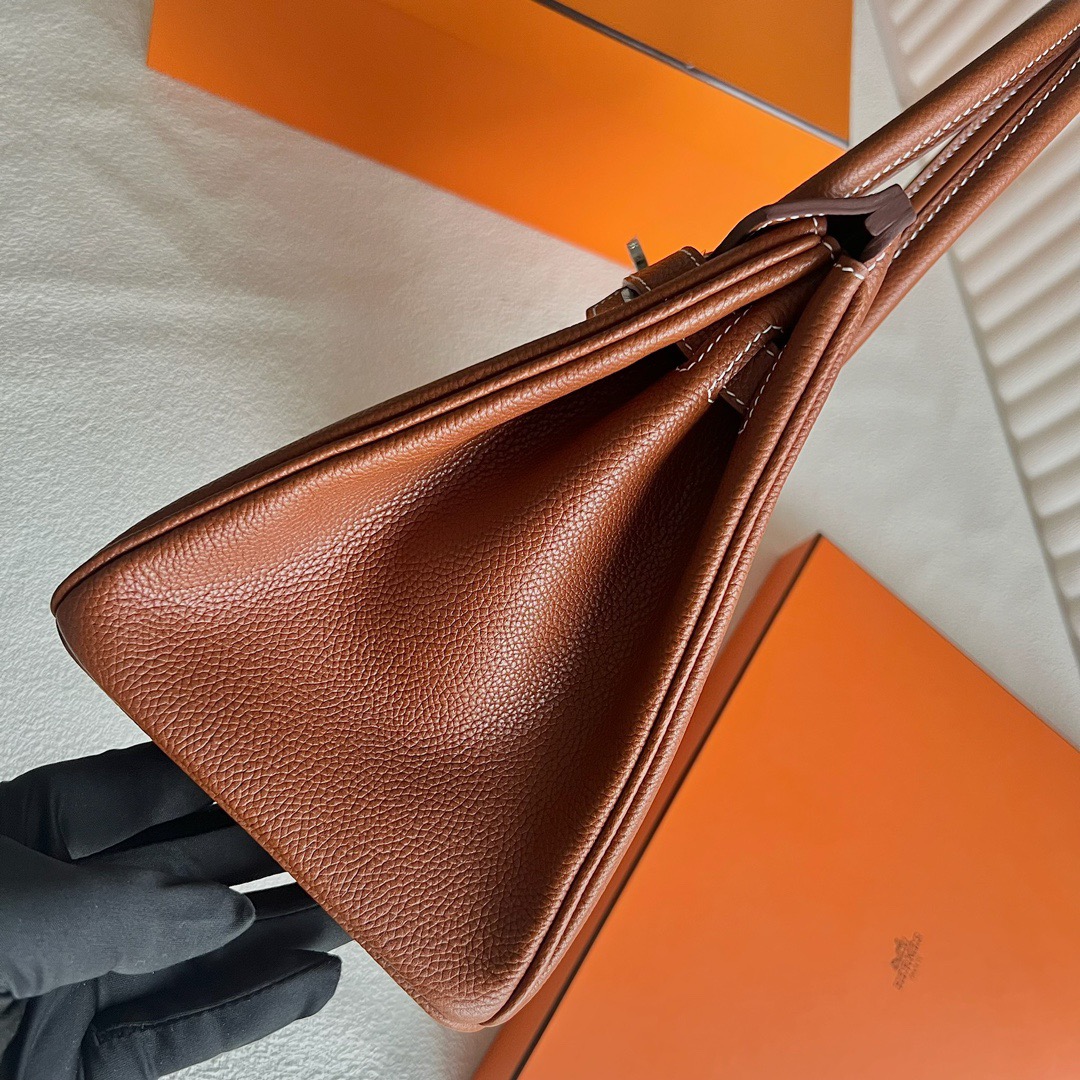 Hermes Birkin 30 Togo Original leather CC93 Orange Sew white thread