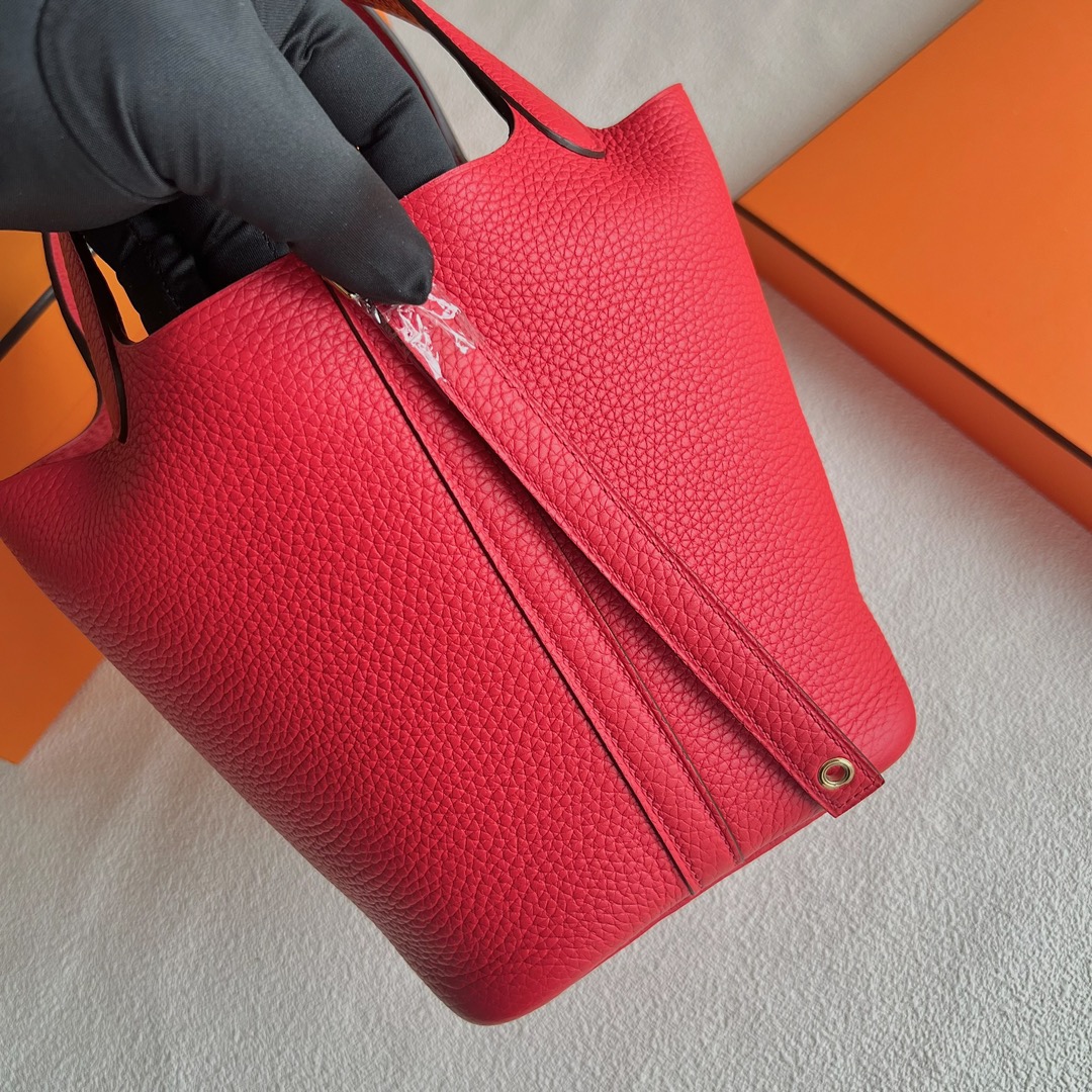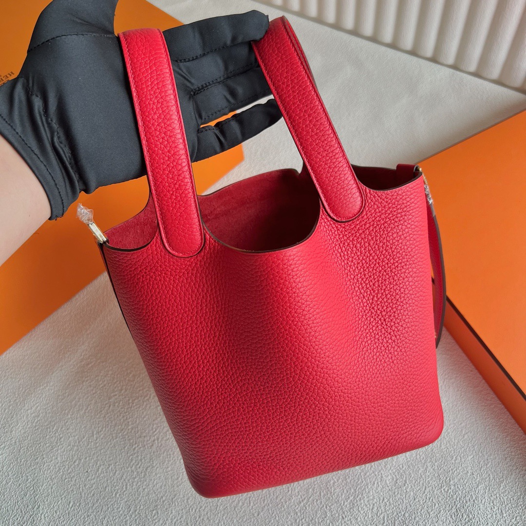 Thailand Hermes Picotin Lock 18cm Bag Price Taurillon Clemence Original leather from Germany CCS3 Rose de coeur 心红色 Gold hardware(GHW)
