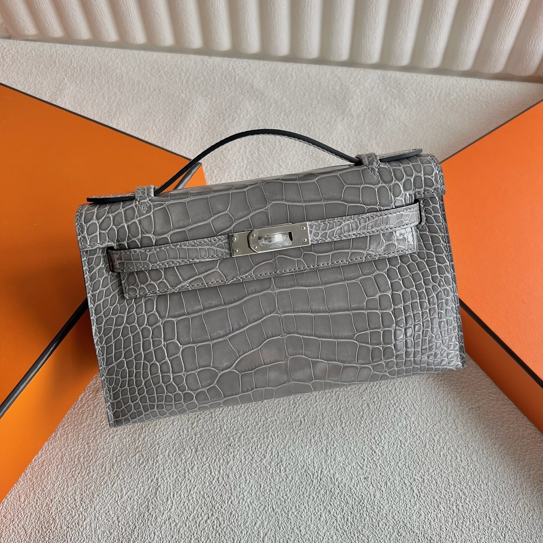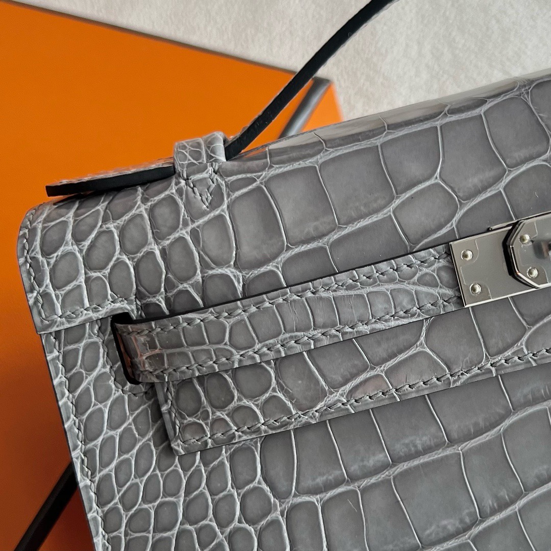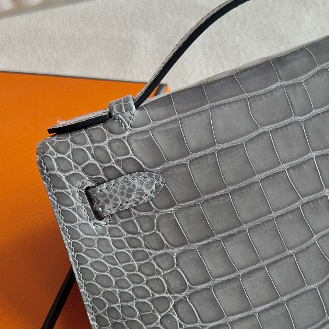Hanoi Vietnam Hermes Mini Kelly Pochette 22cm polished Mississippiensis alligator CK0V Crystal Grey 水泥灰 Palladium Hardware(PHW)