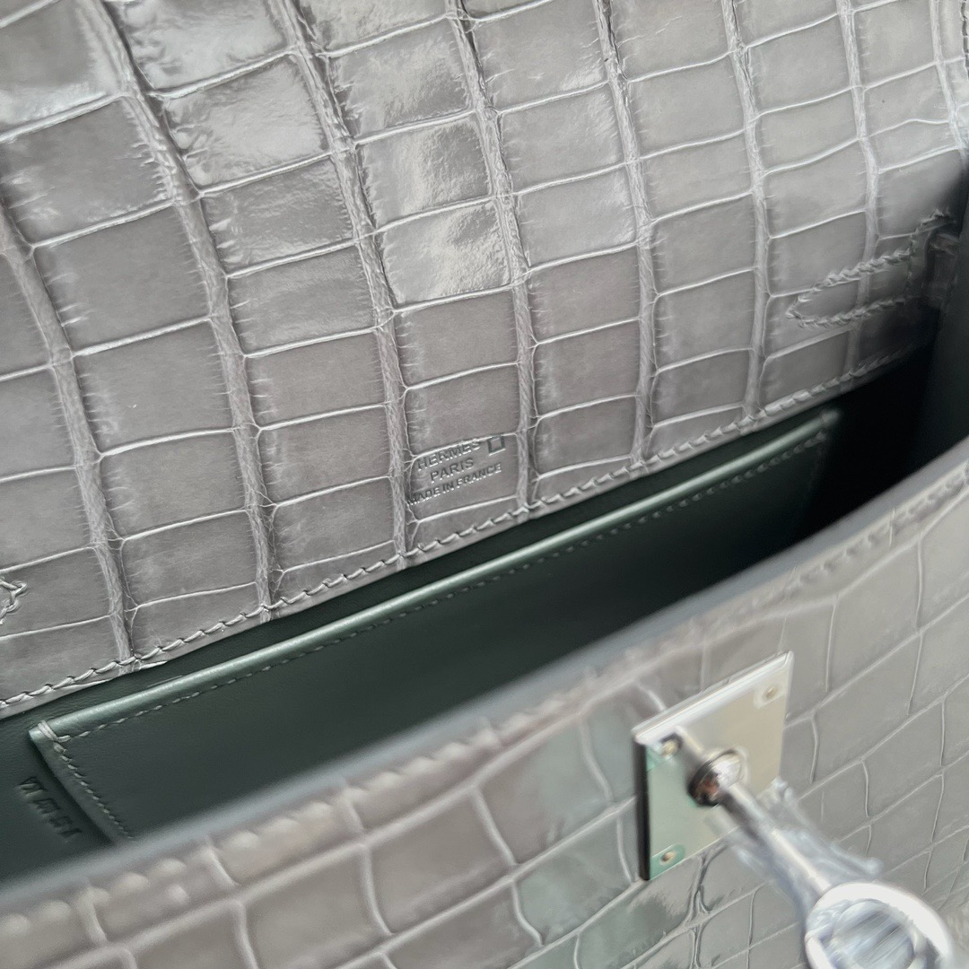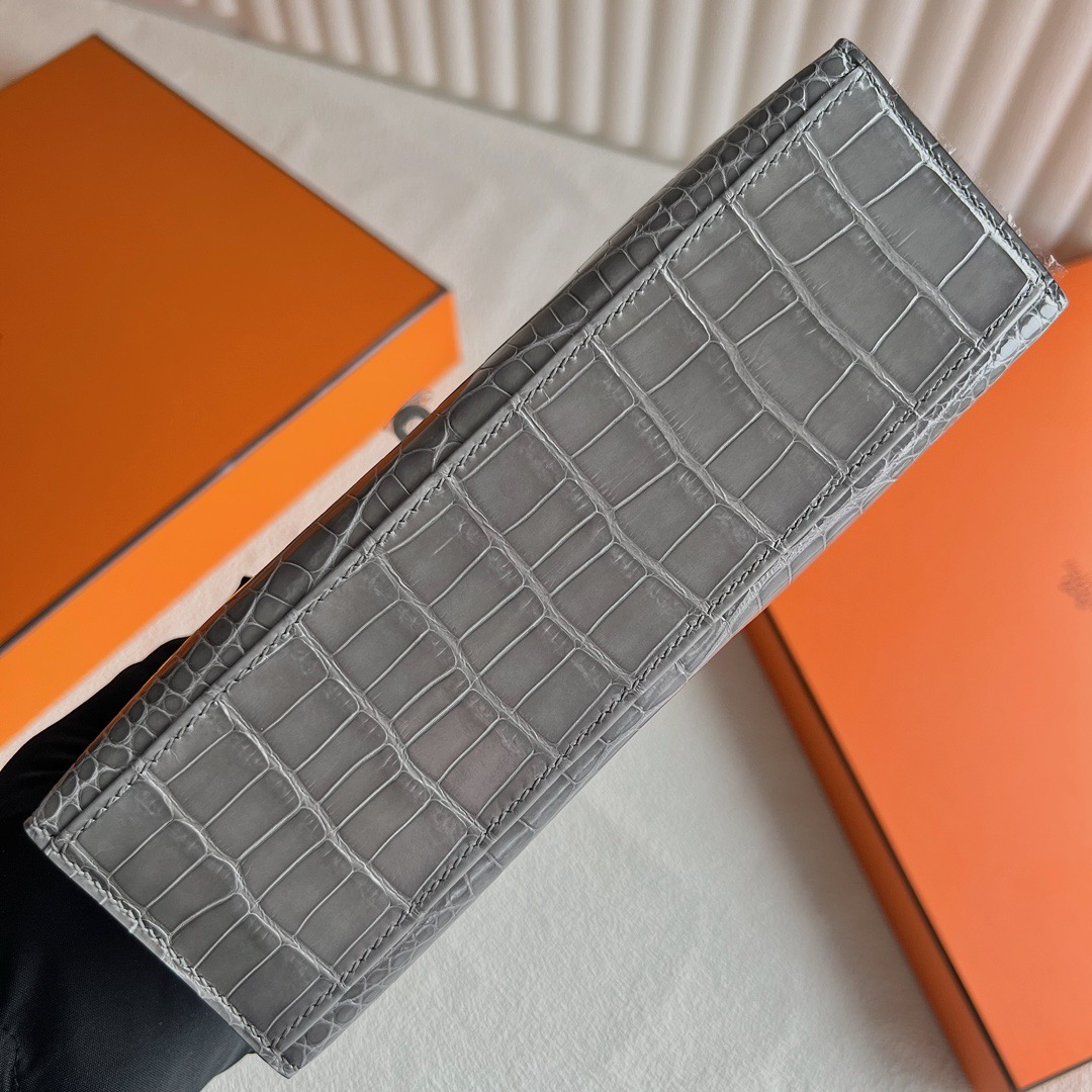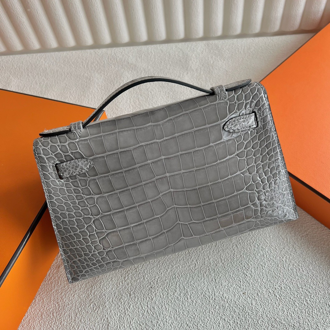 Hanoi Vietnam Hermes Mini Kelly Pochette 22cm polished Mississippiensis alligator CK0V Crystal Grey 水泥灰 Palladium Hardware(PHW)