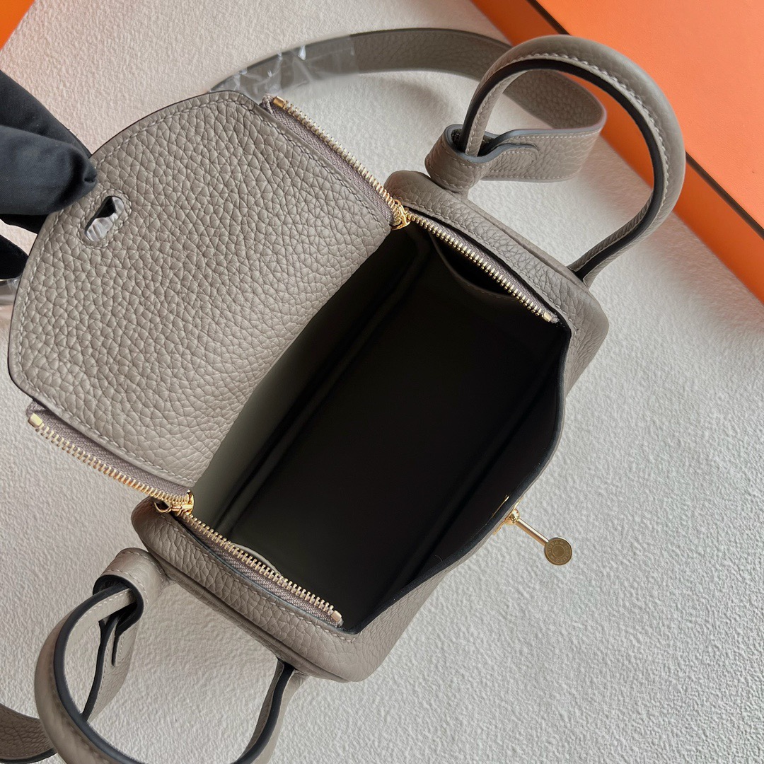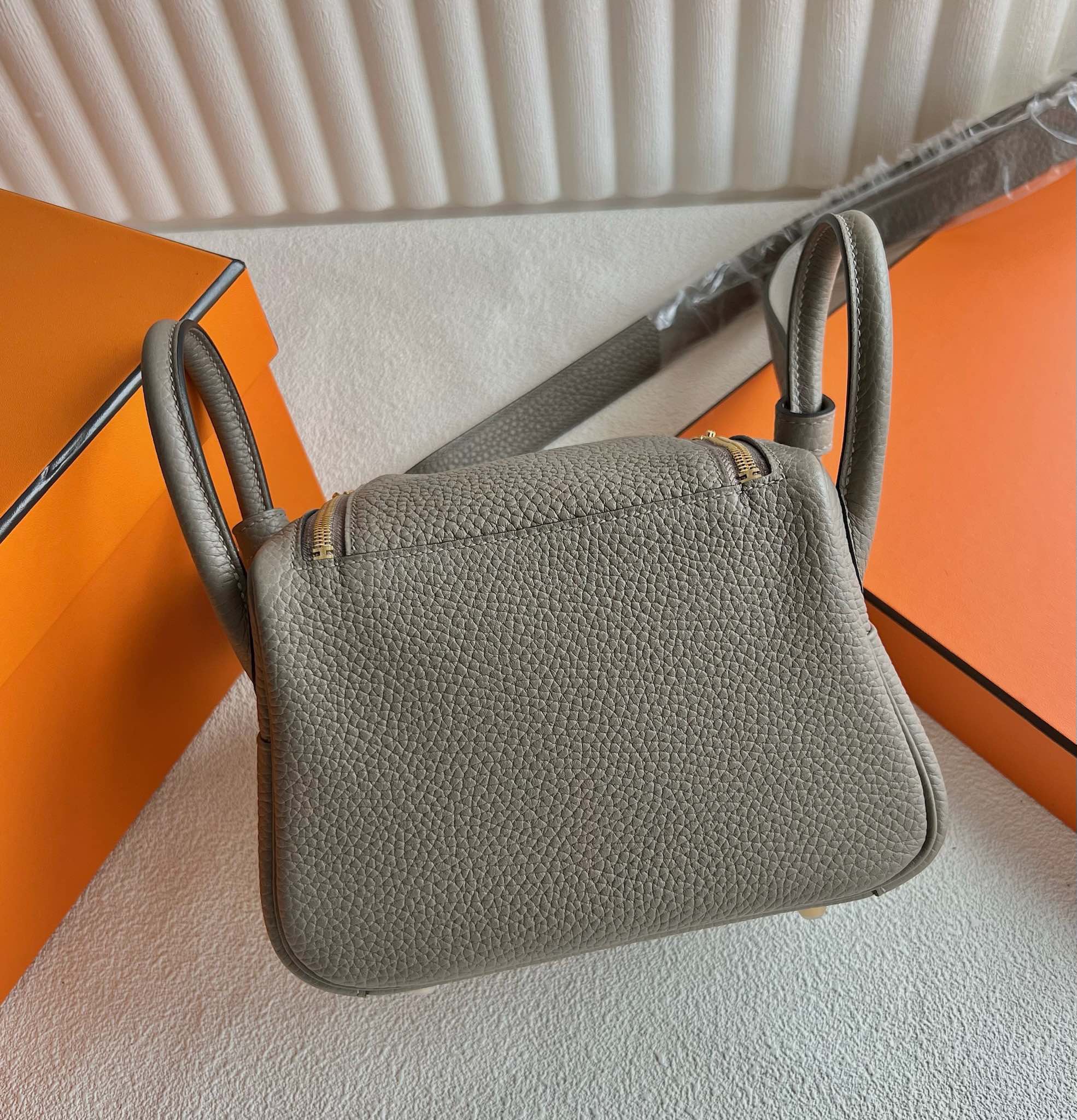 UAE Dubai Hermes Mini Lindy Bag sizes Taurillon Clemence Original leather CCM8 Gris Asphalte 沥青灰 Gold hardware(GHW)