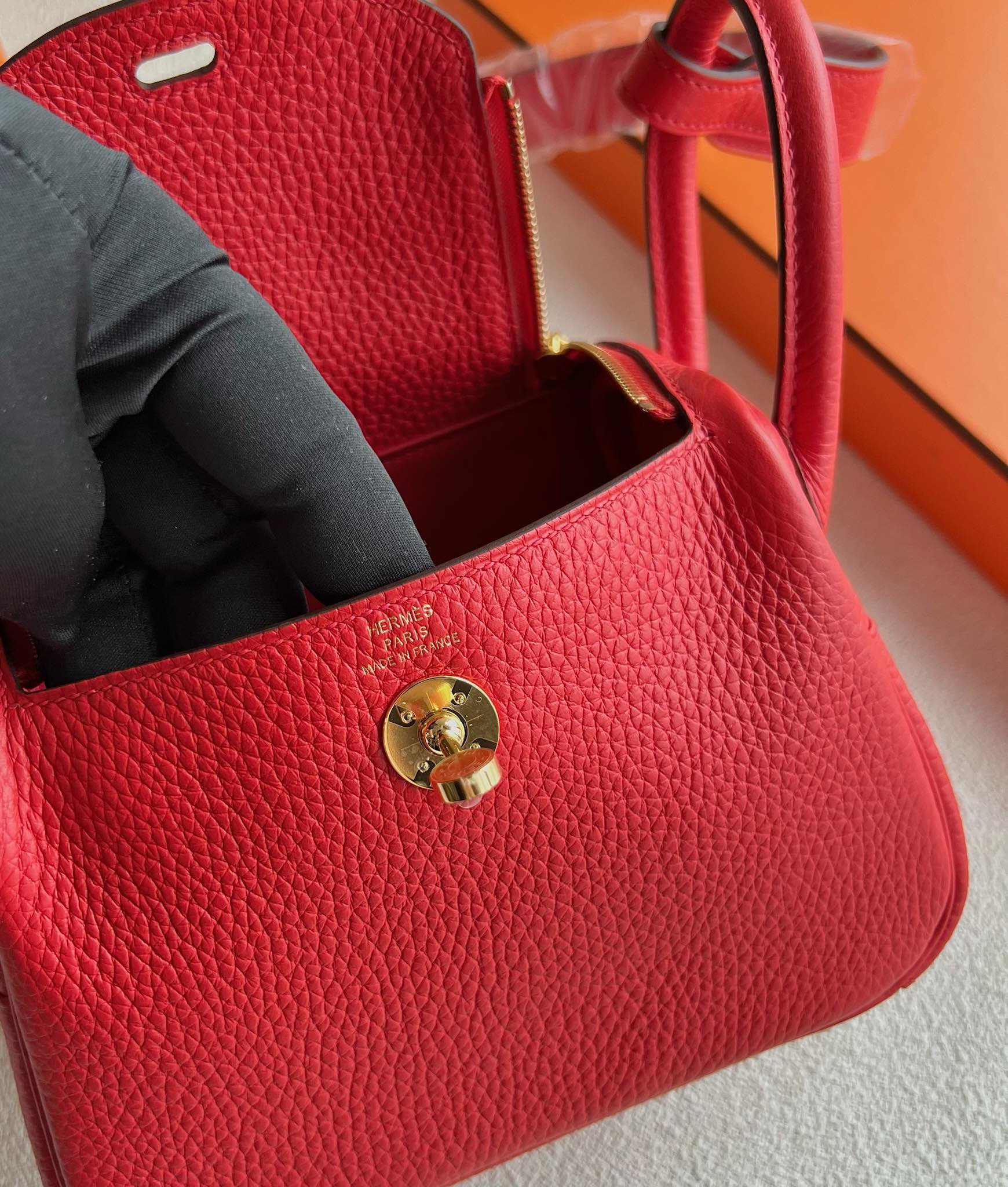 United Arab Emirates Hermes Mini Lindy Bag Taurillon Clemence Original leather CCS3 Rose de coeur 心紅色 Gold hardware(GHW)