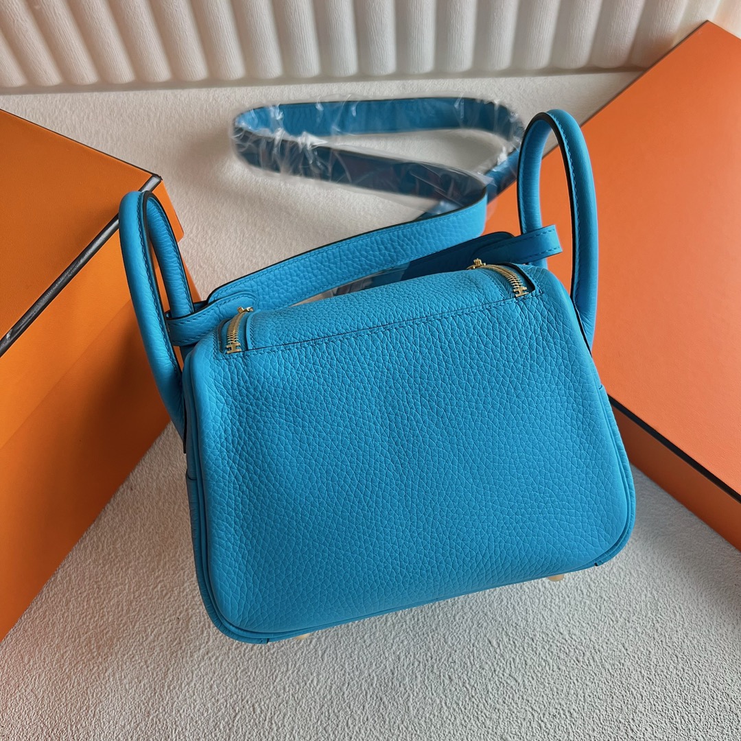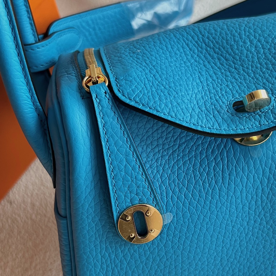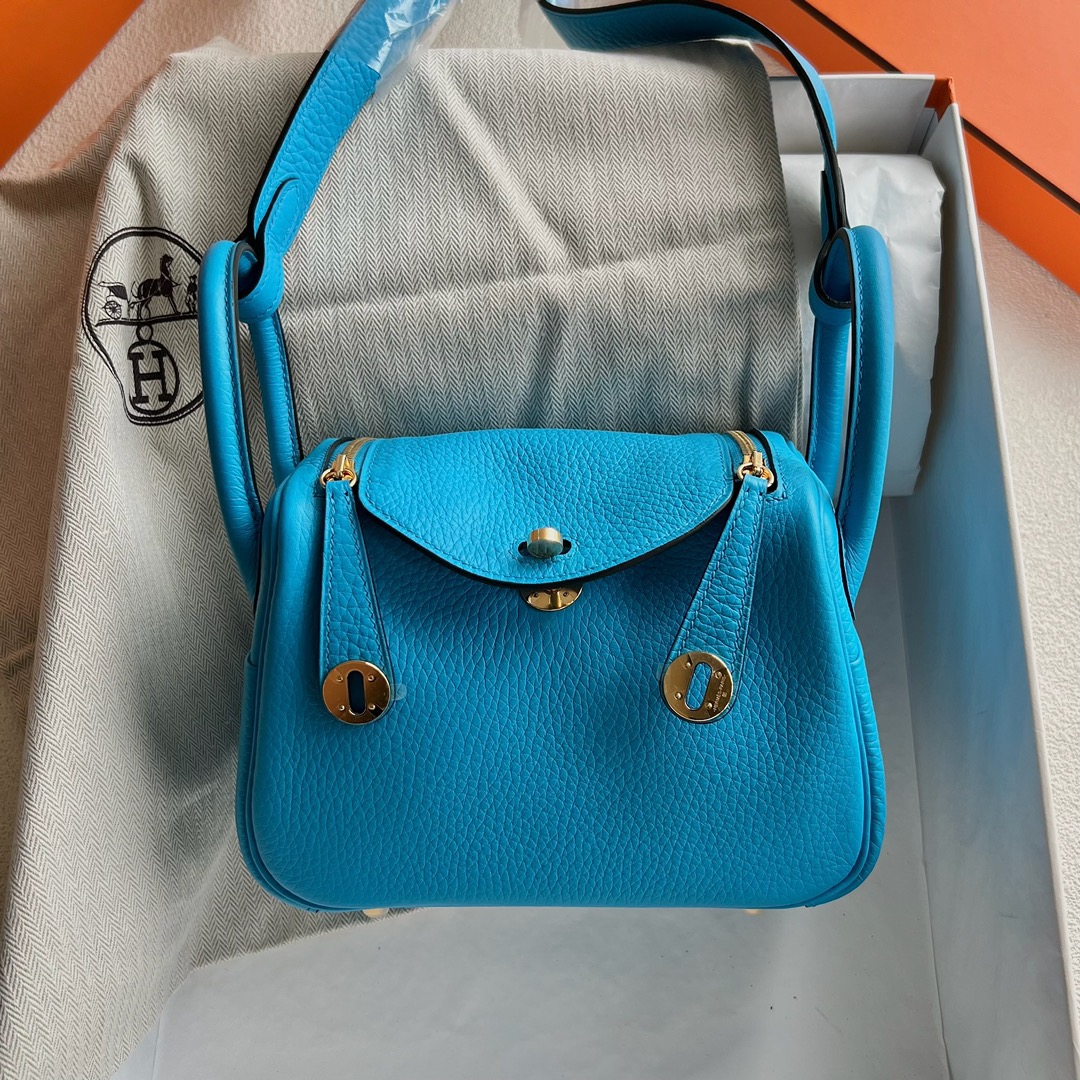 Taiwan Hermes Mini Lindy Bag Taurillon Clemence Original leather CC0F Bleu frida 弗里达蓝 Gold hardware(GHW)