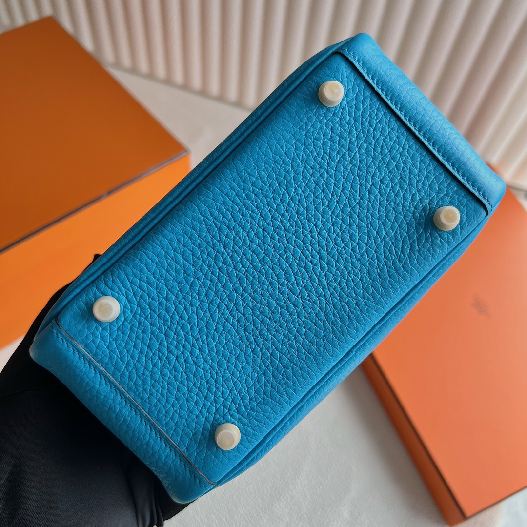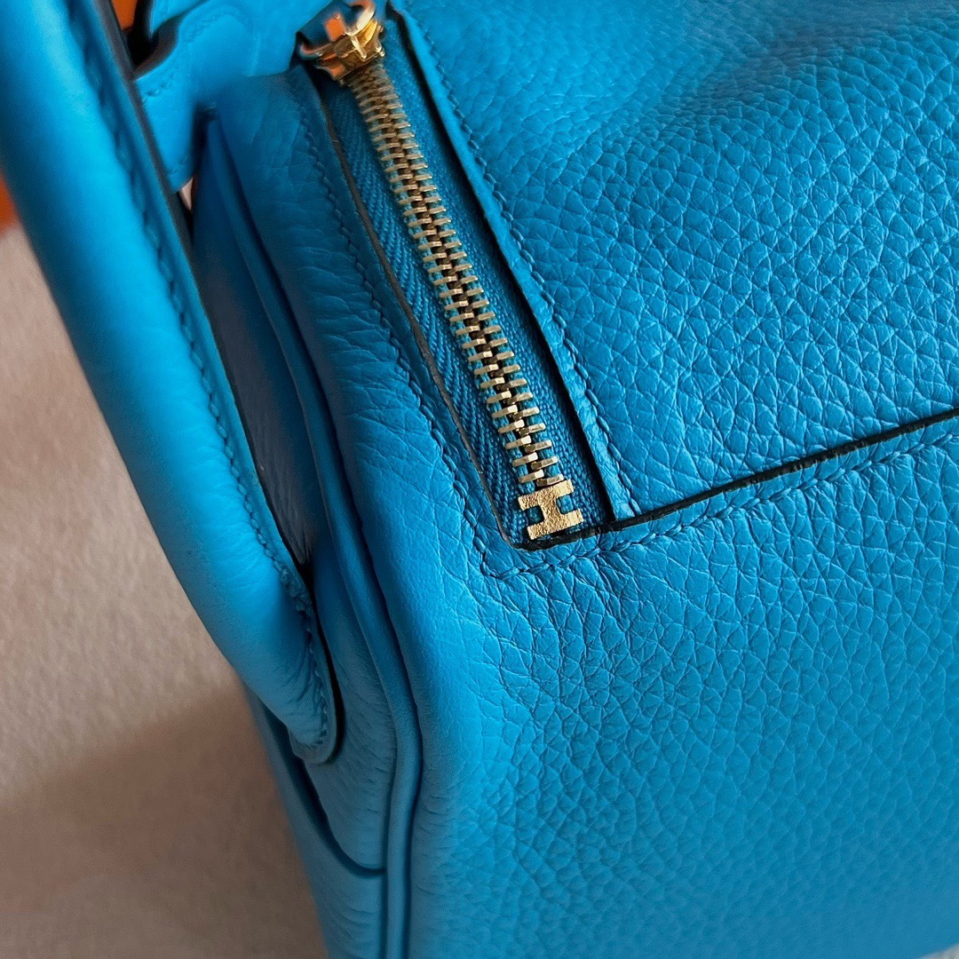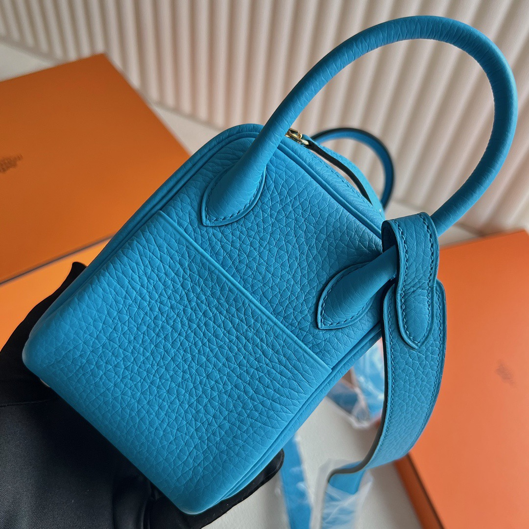 Taiwan Hermes Mini Lindy Bag Taurillon Clemence Original leather CC0F Bleu frida 弗里达蓝 Gold hardware(GHW)