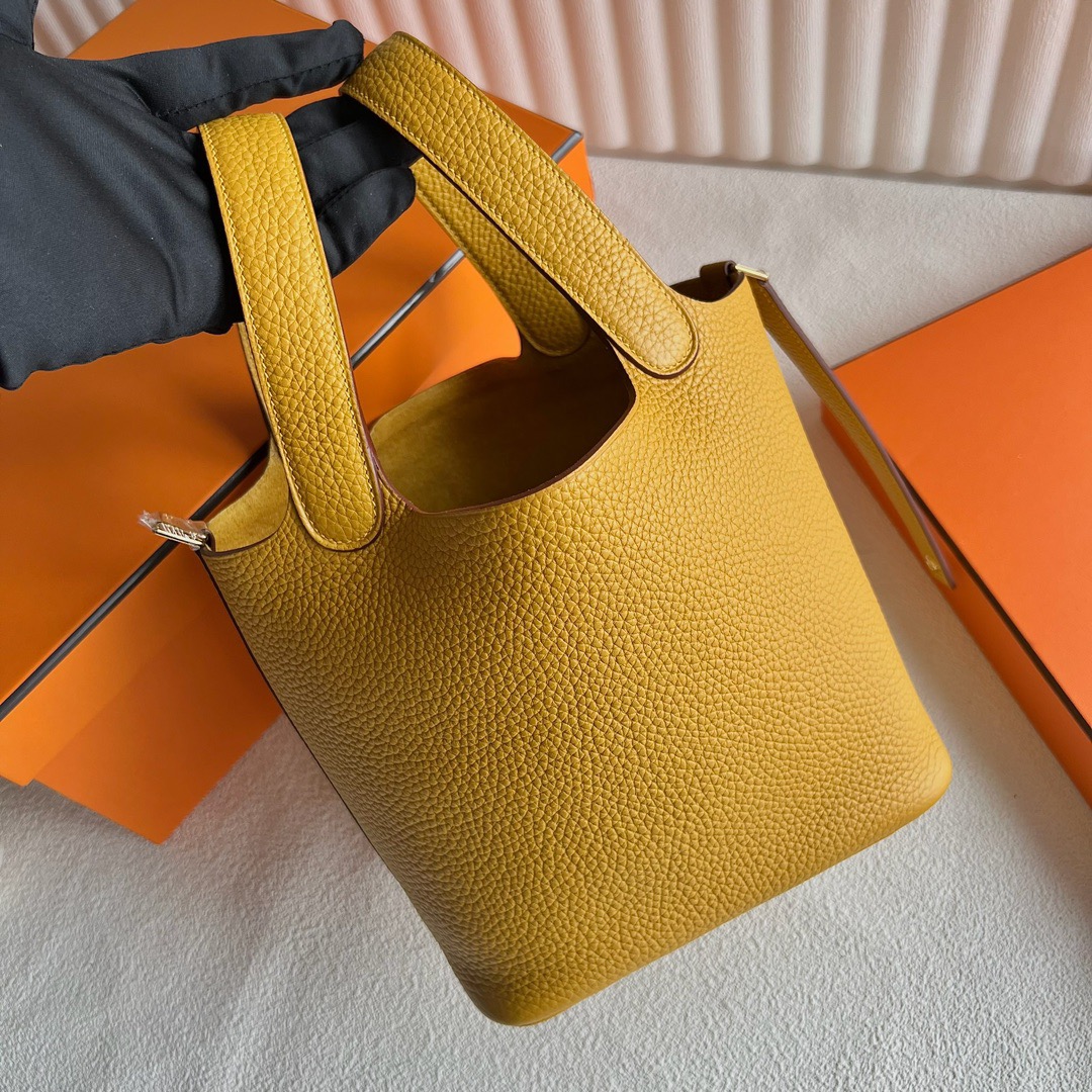 Hermes Picotin 18cm Taurillon Clemence Original leather CC9D Jaune Ambe 琥珀黄 Gold hardware(GHW)