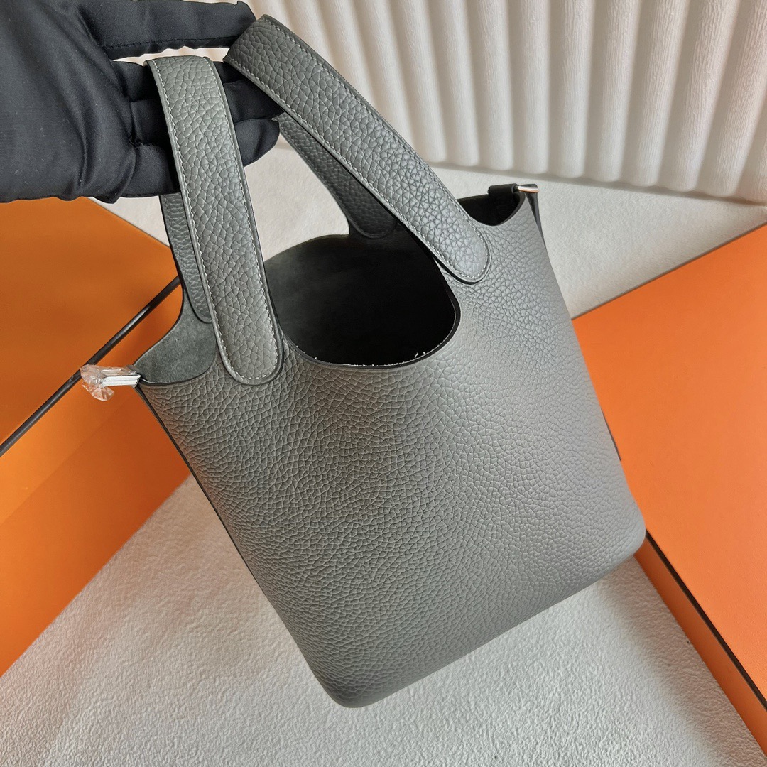 Hermes Picotin Lock 18cm Bag Price 2026 Taurillon Clemence Original leather CK0L Gris Meyer 积雨云灰 Palladium Hardware(PHW)
