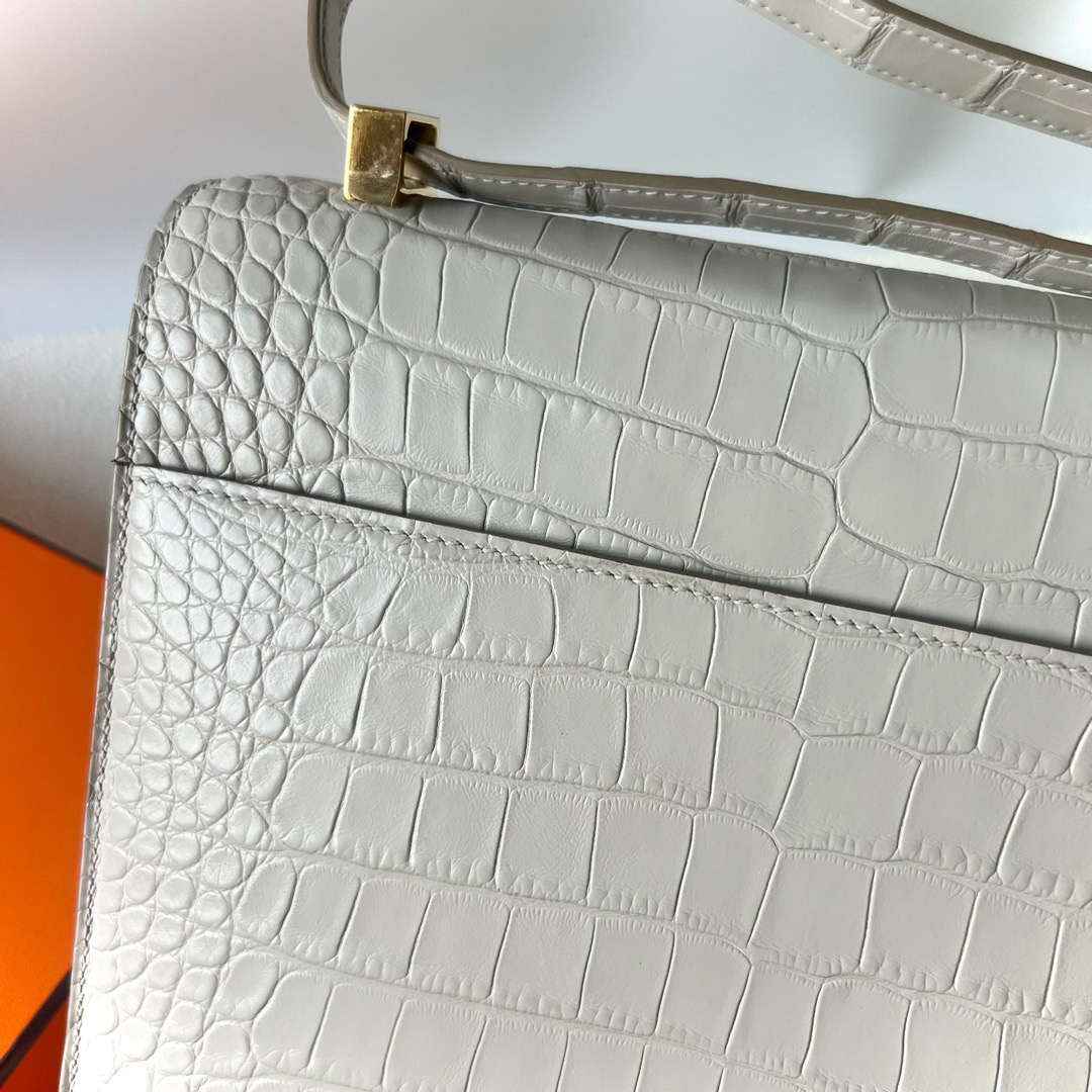 Hermes Verrou Bag 21cm Matt Mississippiensis Alligator Crocodile CC8L Beton 冰川白 Gold Hardware(GHW)