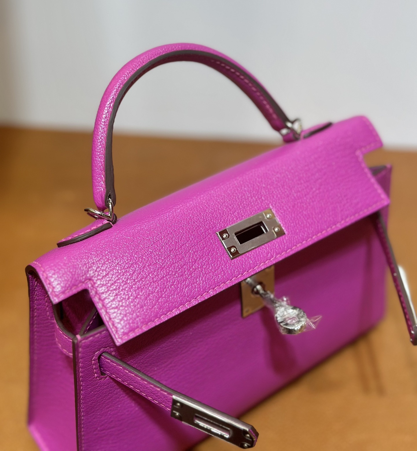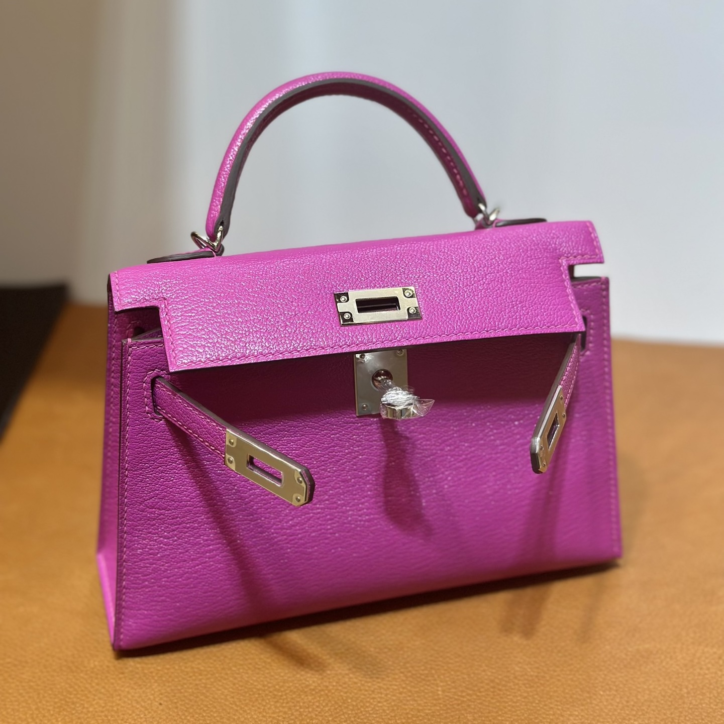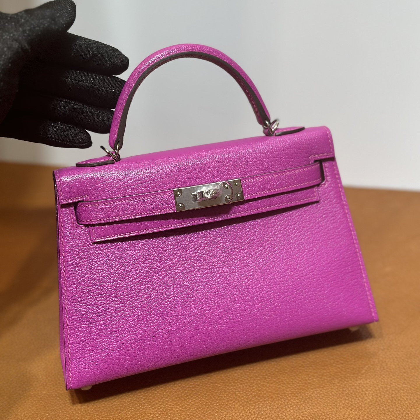 Hermes Kelly Mini Bag How much Chevre Mysore CK9i Magnolia 玉兰粉 Palladium Hardware(PHW)