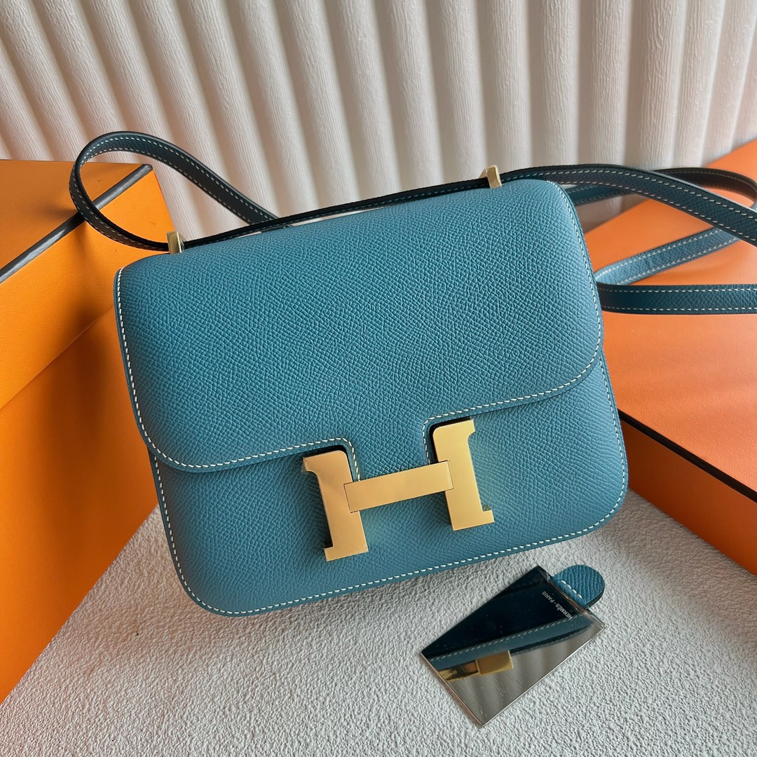 Hermes Constance 18cm Epsom Leather CCO6 Vert Jade 帝王绿 And CCT0 Blue Brume 雾蓝色 Enamel