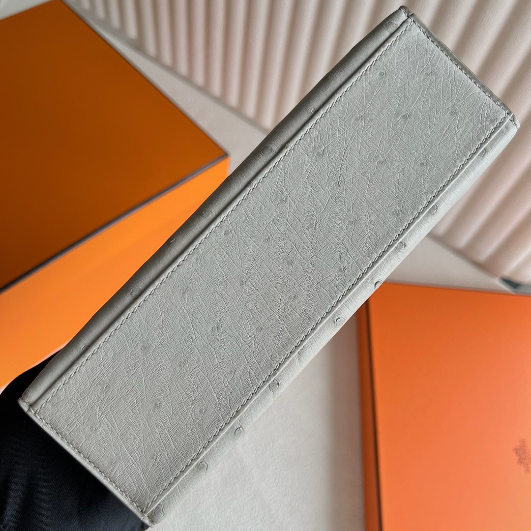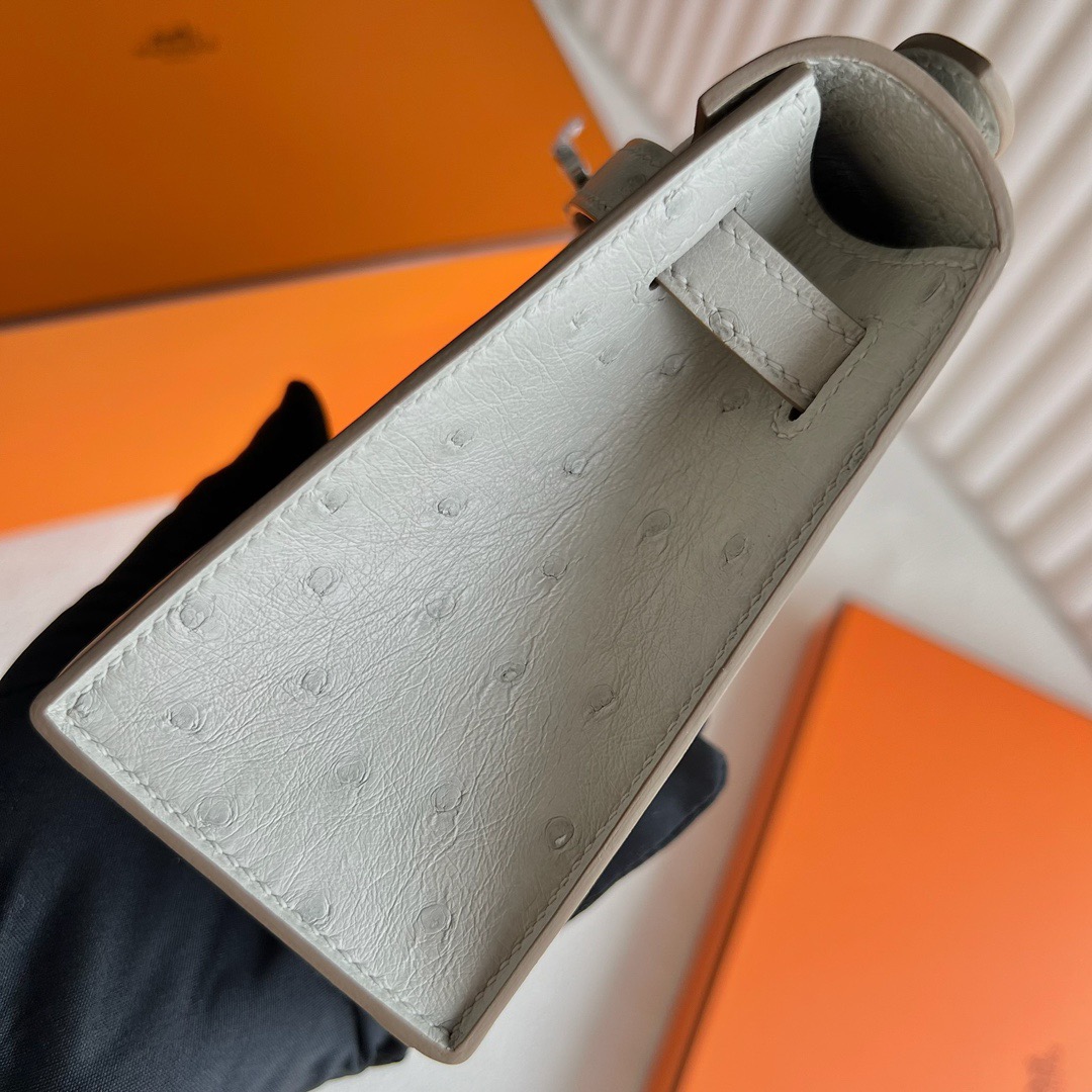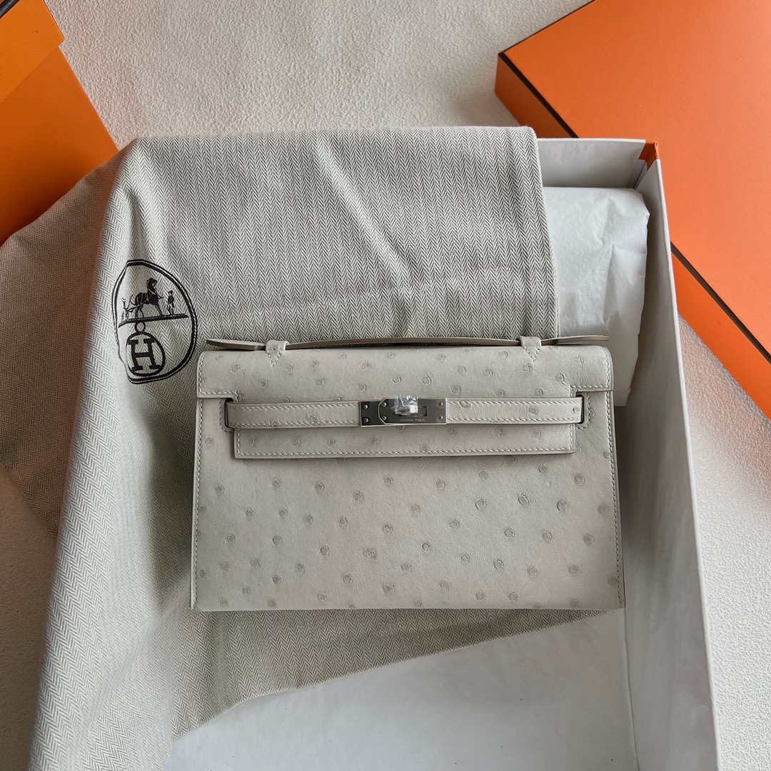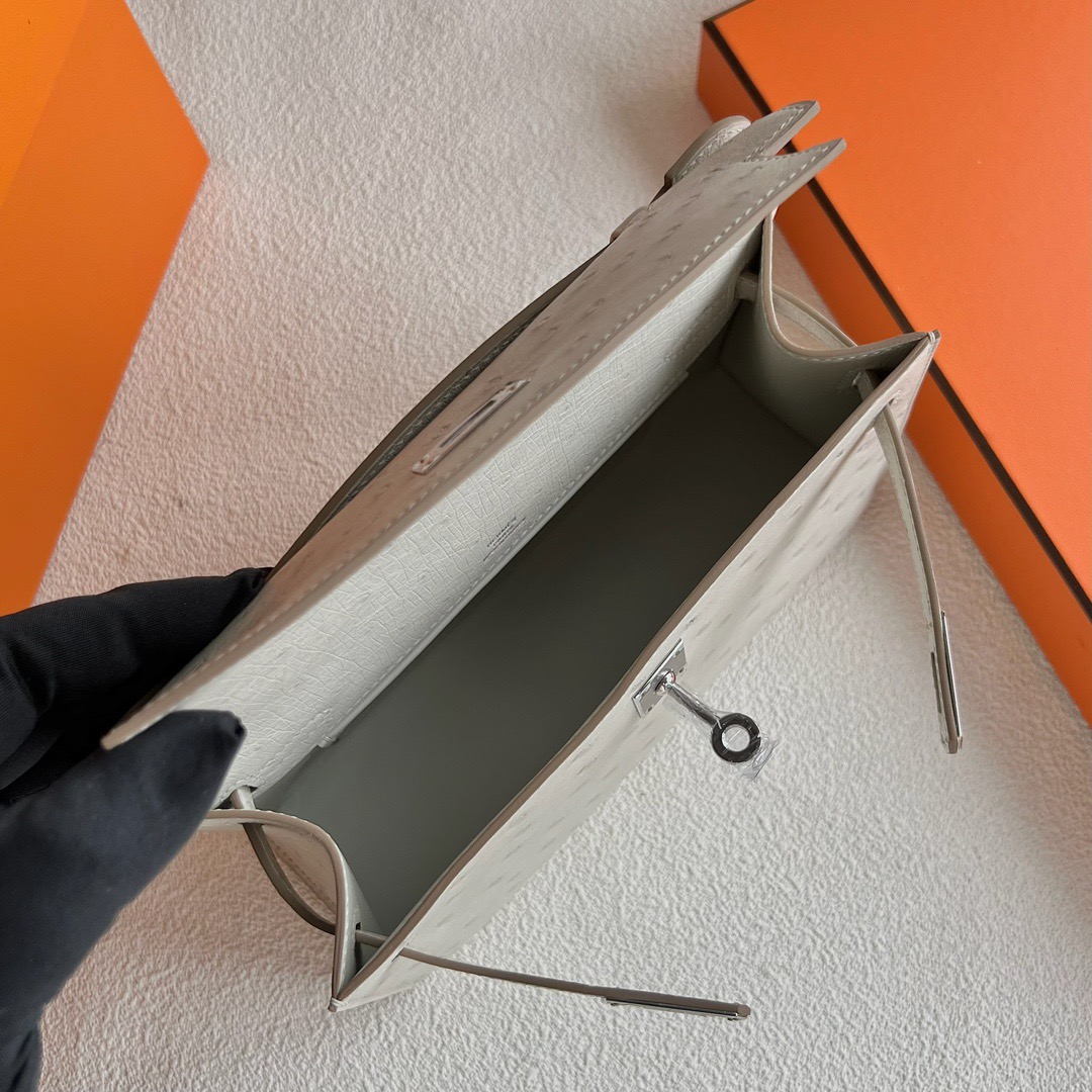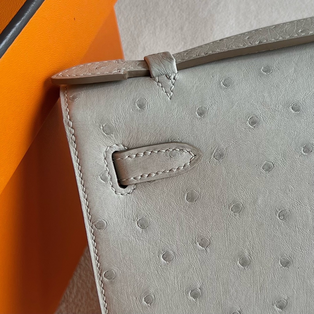 Hermes Mini Kelly Pochette 22cm South Africa Klein Karoo Original leather Ostrich CK80 Gris Perle 珍珠灰 Palladium Hardware(PHW)