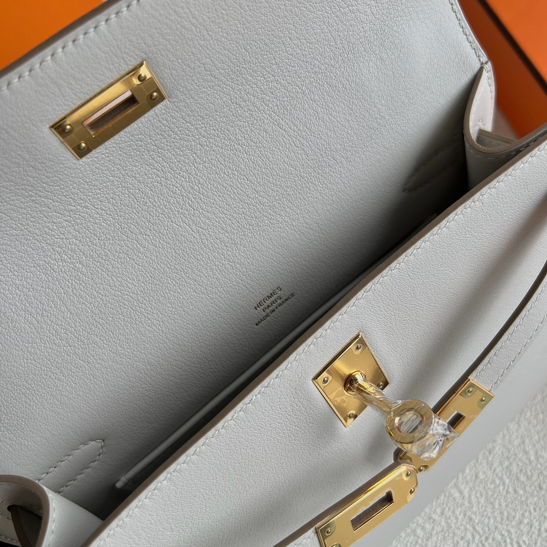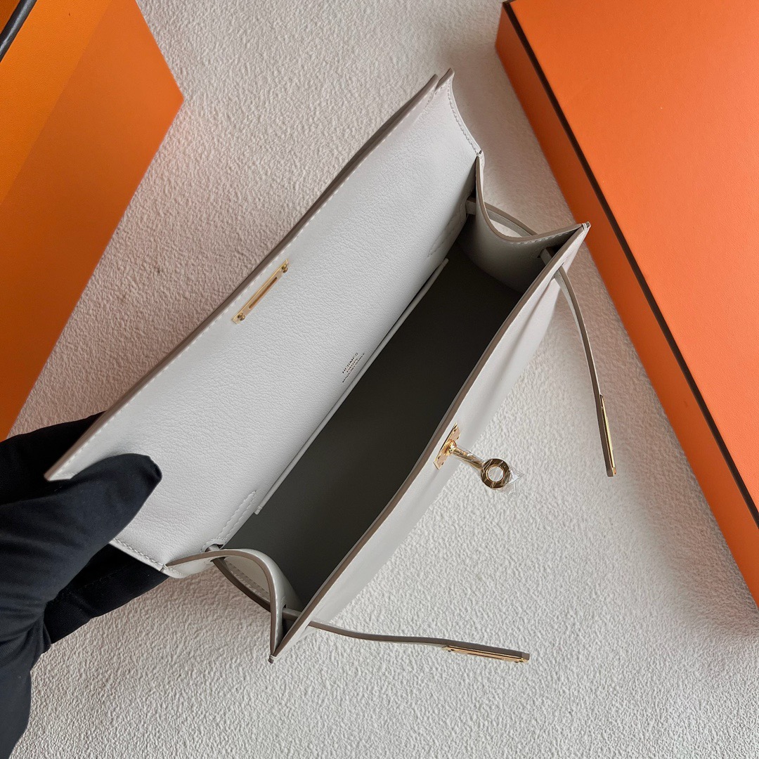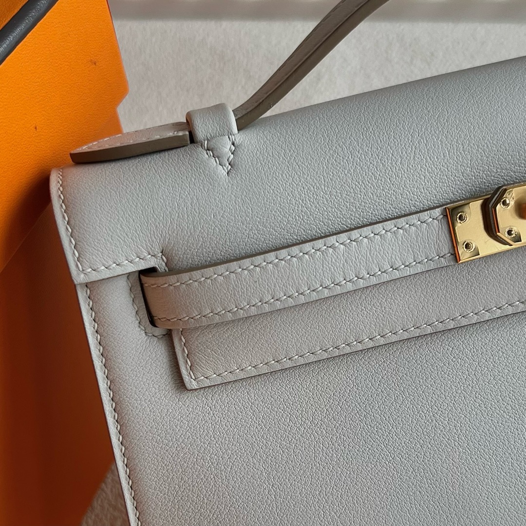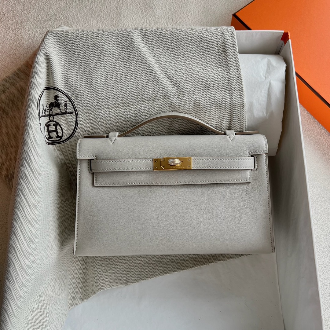 Hermes Mini Kelly Pochette 22cm Swift Leather CC80 Gris Perle 珍珠灰 Gold Hardware(GHW)