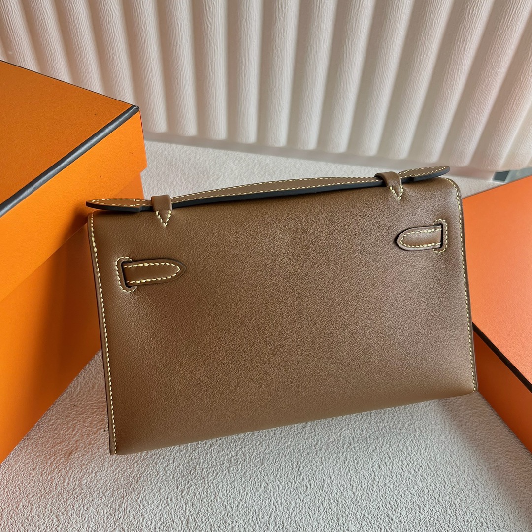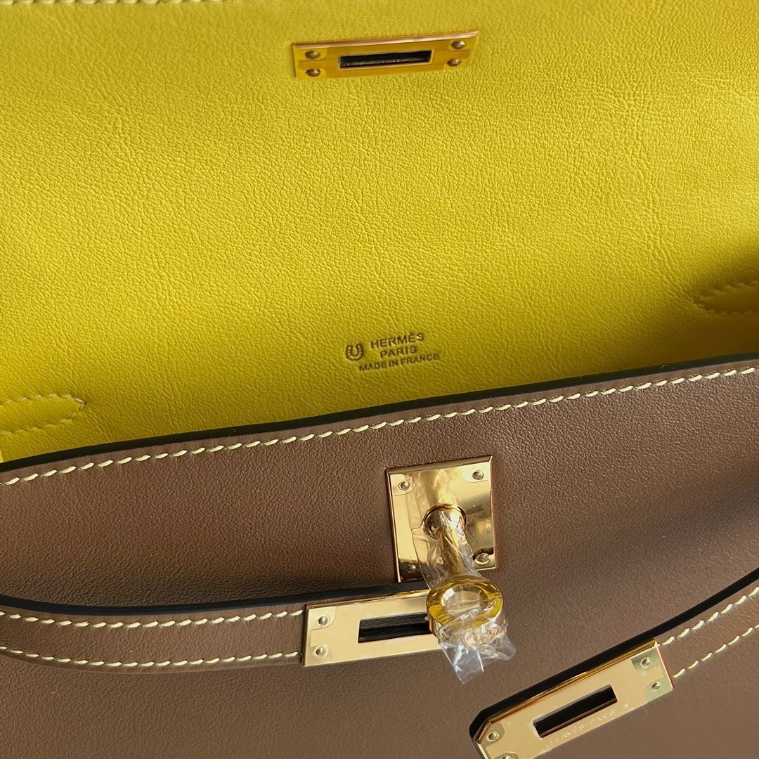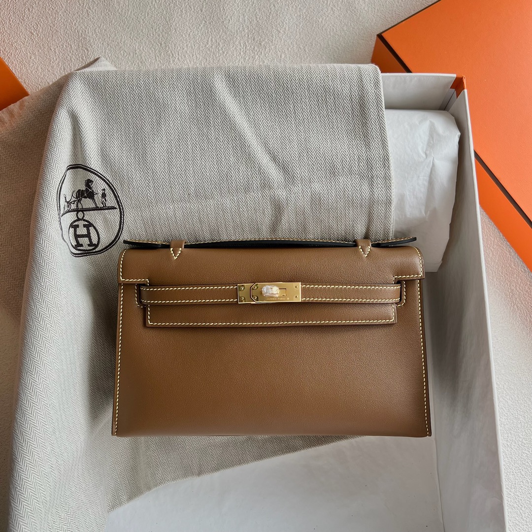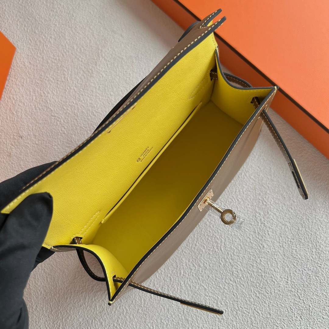Hermes Mini Kelly Pochette 22cm Swift Leather CCD0 beige de weimer 威犬马米色 And CC9R Lime 柠檬黄 Gold Hardware(GHW)
