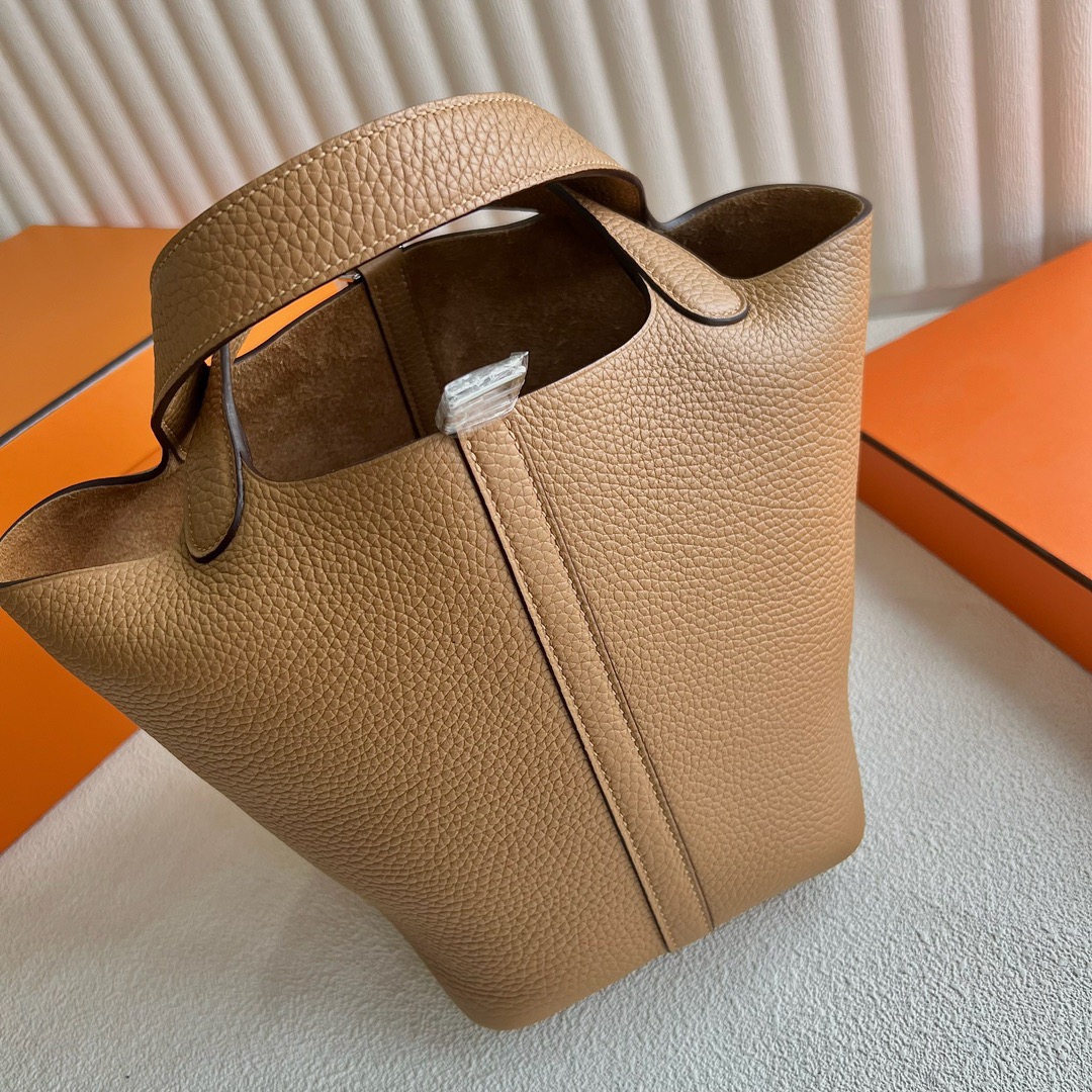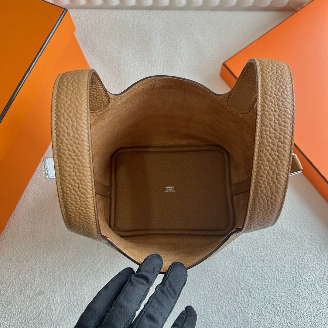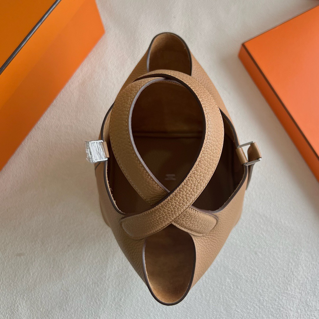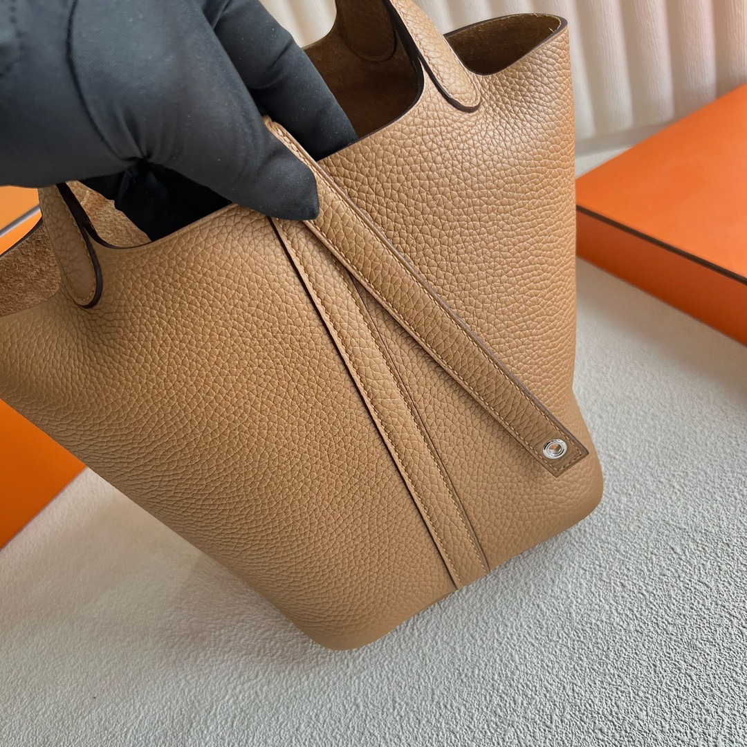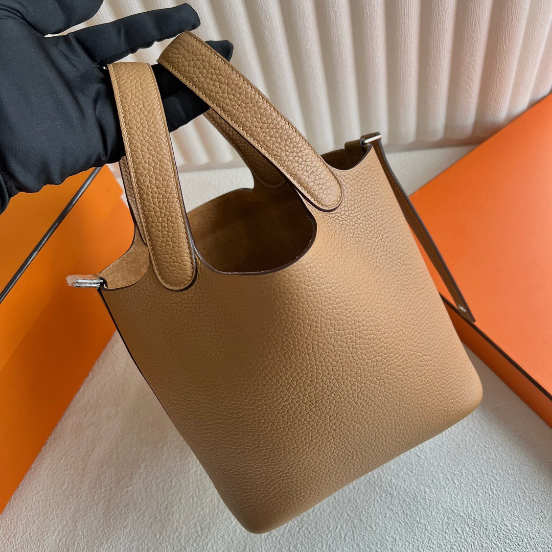 Hermes Picotin Lock 18cm Taurillon Clemence Original leather from Germany CK4B Biscuit 饼干色 Palladium Hardware(PHW)