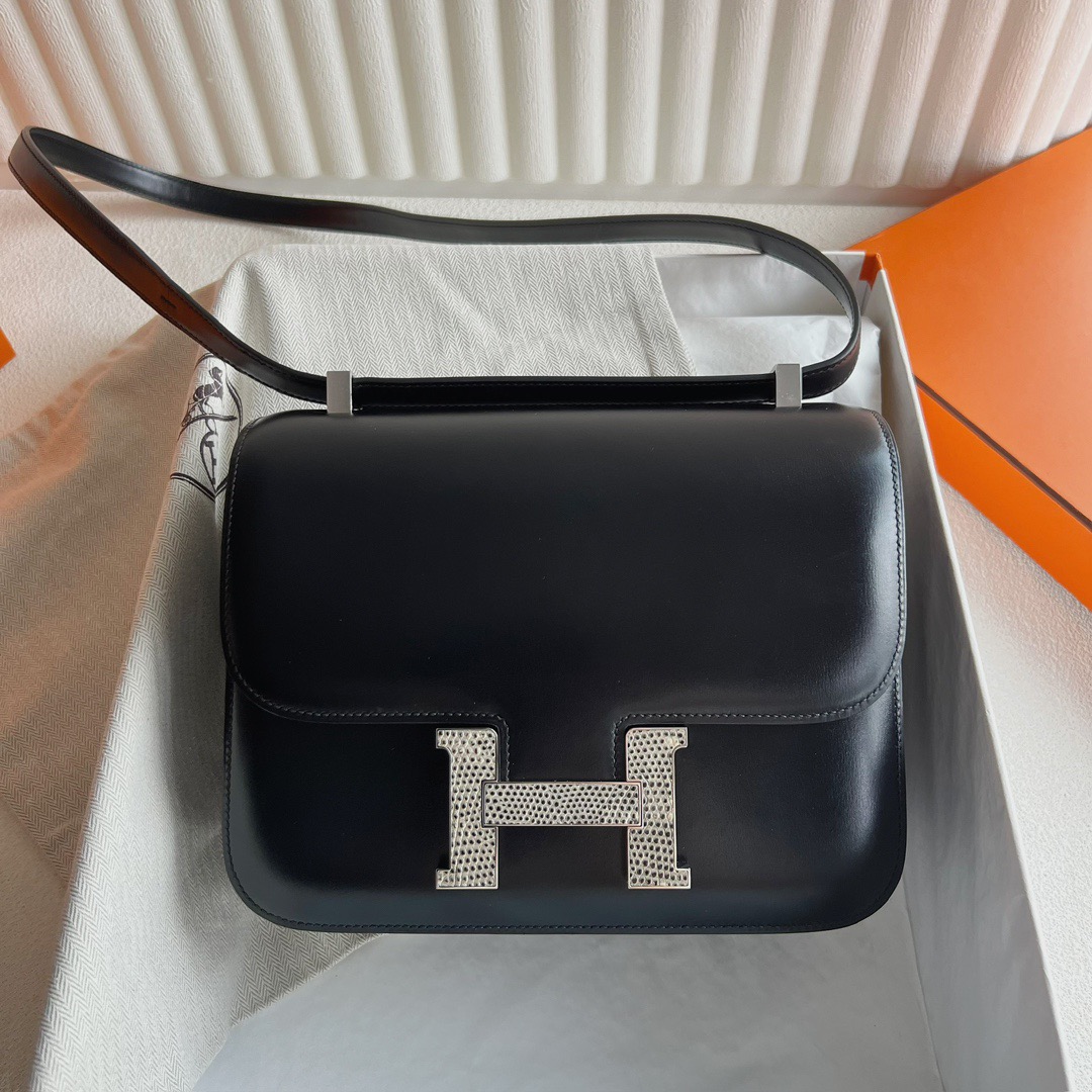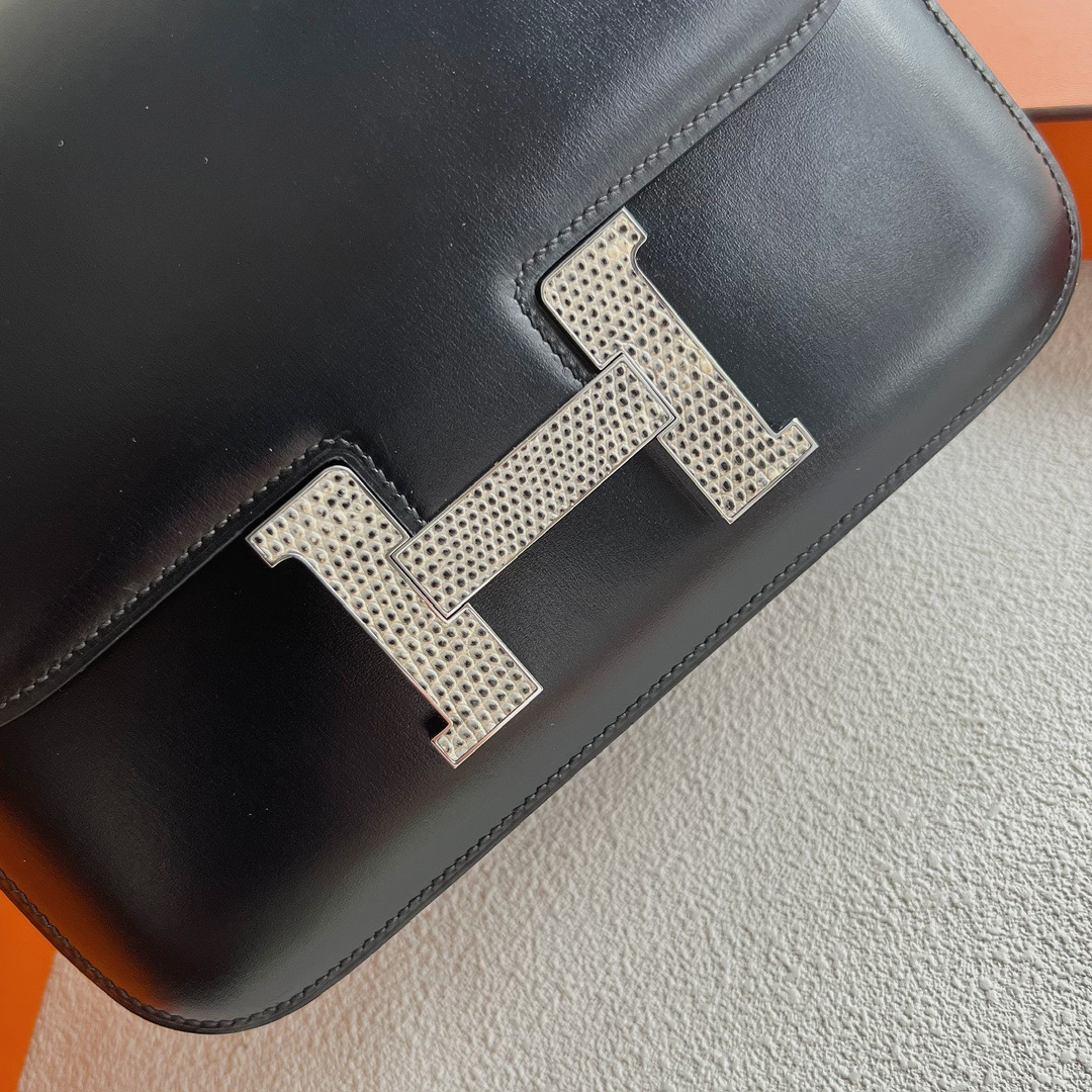 Thailand Bangkok Hermes Constance 24cm Box Leather CC89 Noir 黑色 拼 自然色 Lizard Palladium Hardware(PHW)