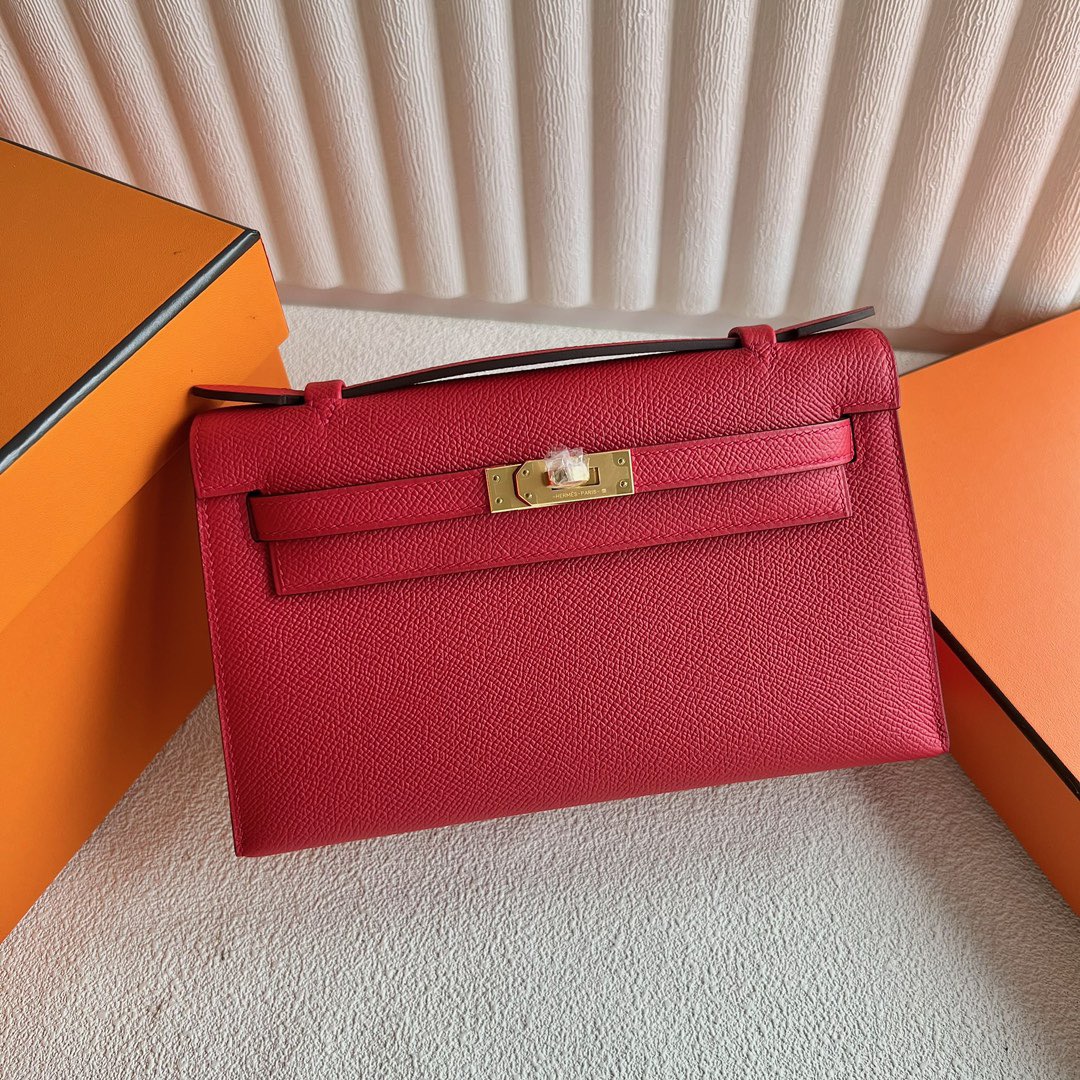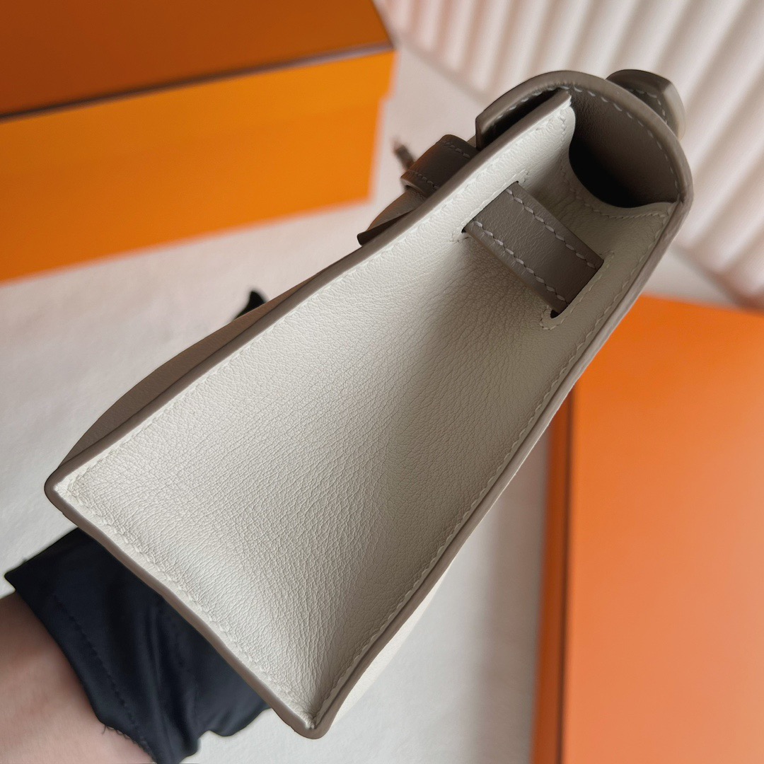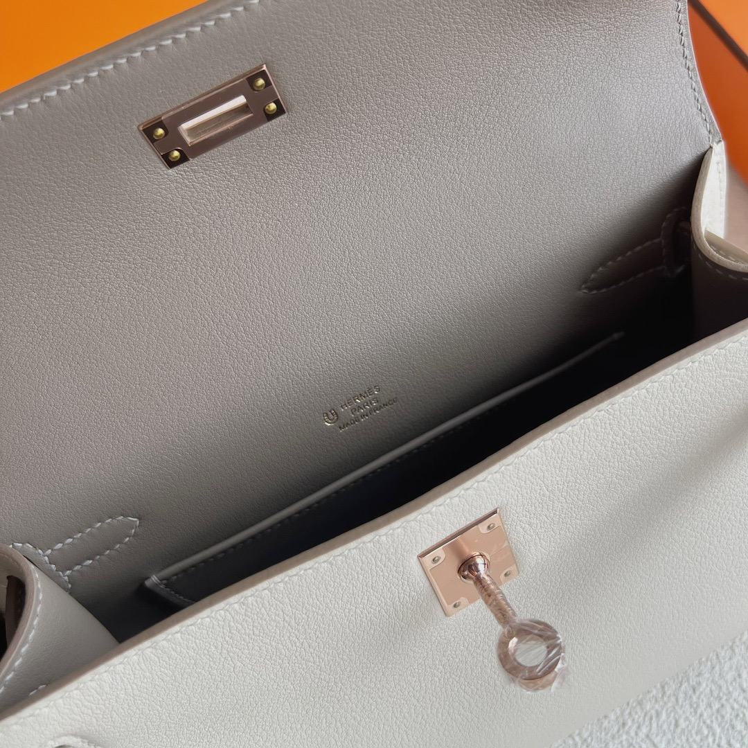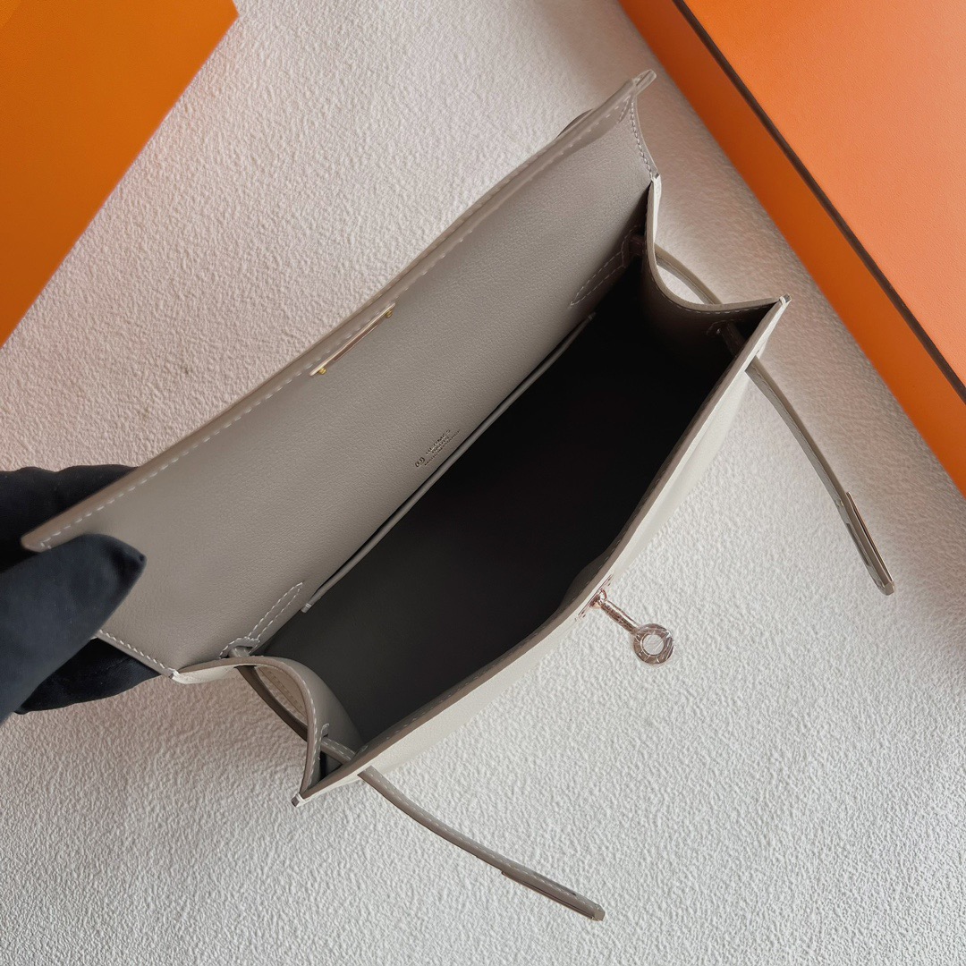 Hermes Mini Kelly Pochette 22cm Swift Leather CK10奶昔白 And M8 Gris Asphalte 沥青灰、马路灰 Rose Gold Hardware(RGHW)
