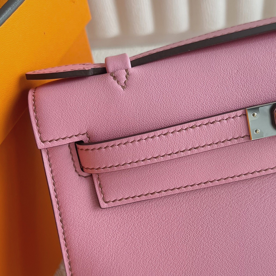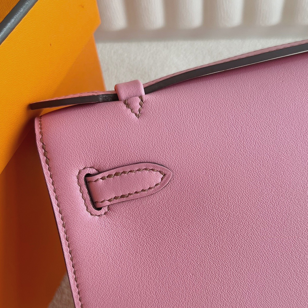 Netherlands Hermes Mini Kelly Pochette 22cm Swift Leather CK5P Pink 樱花粉 Palladium Hardware(PHW)