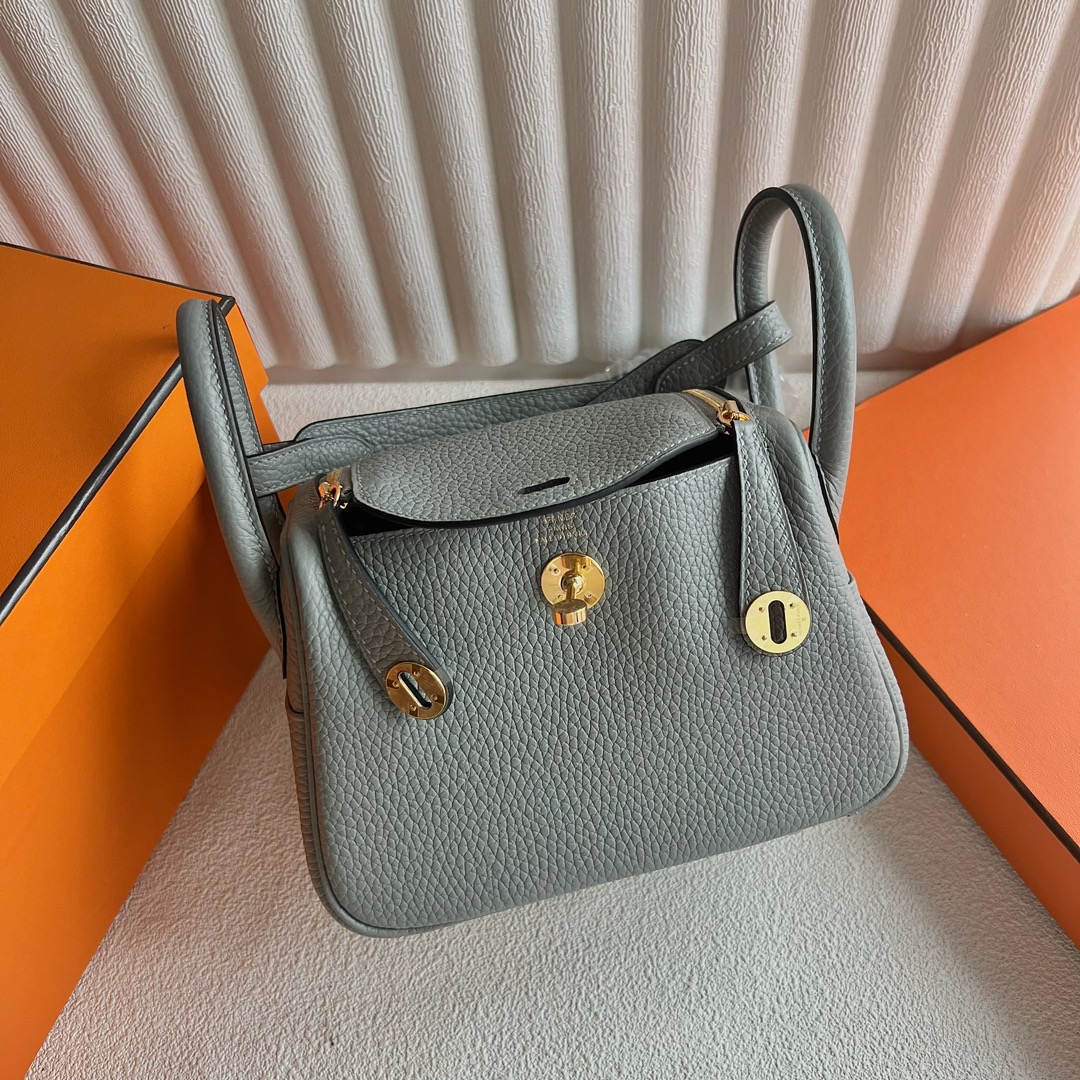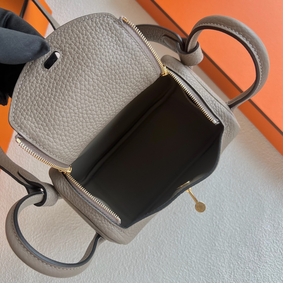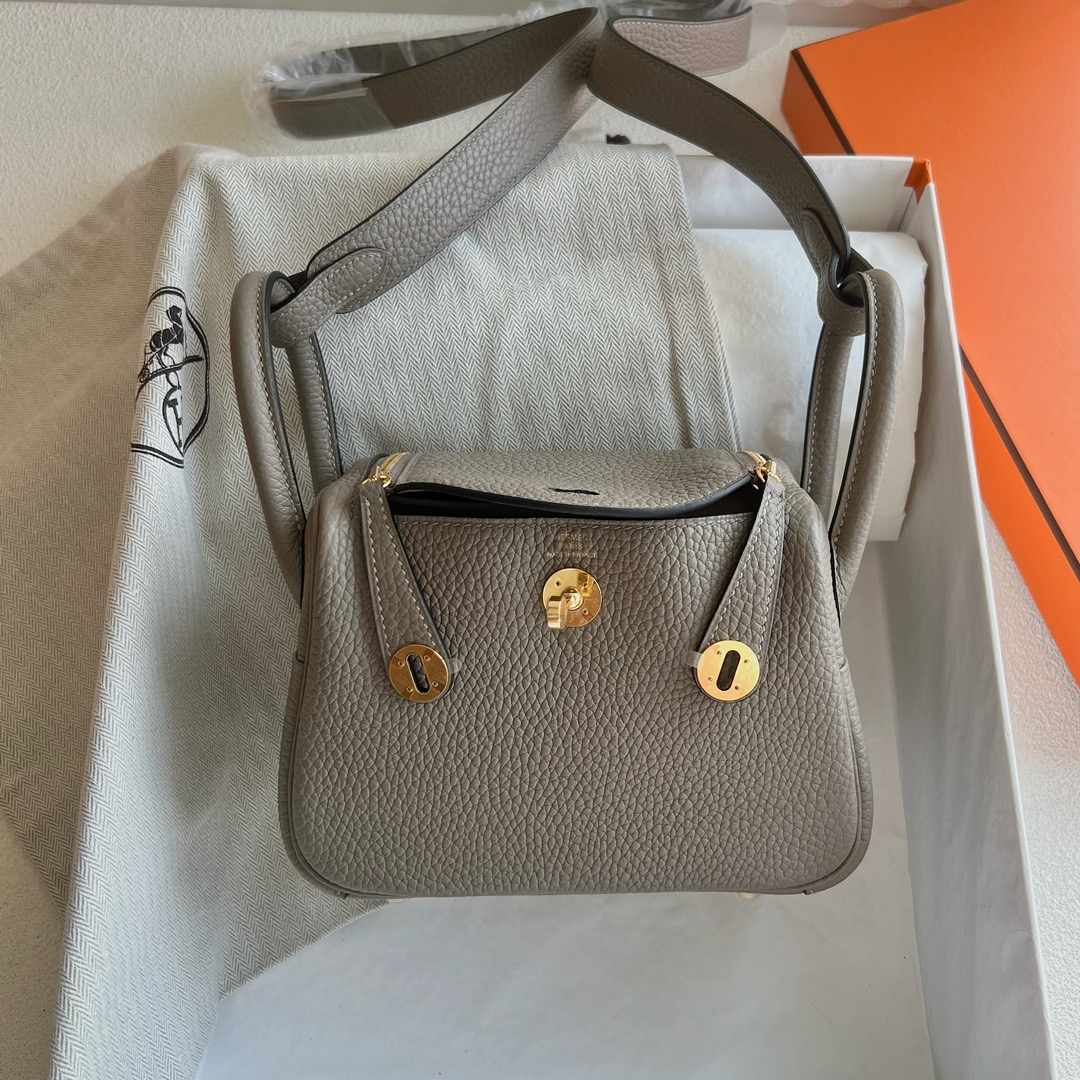 Taiwan Hermes Mini Lindy Bag Price Taurillon Clemence Original Leather from Germany CCM8 Gris Asphalte 沥青灰、马路灰 Gold hardware(GHW)