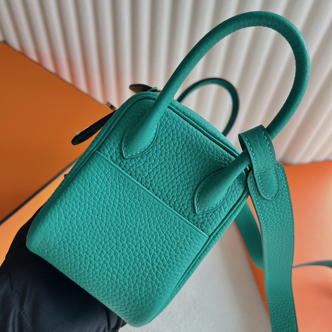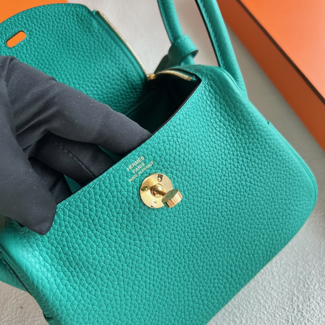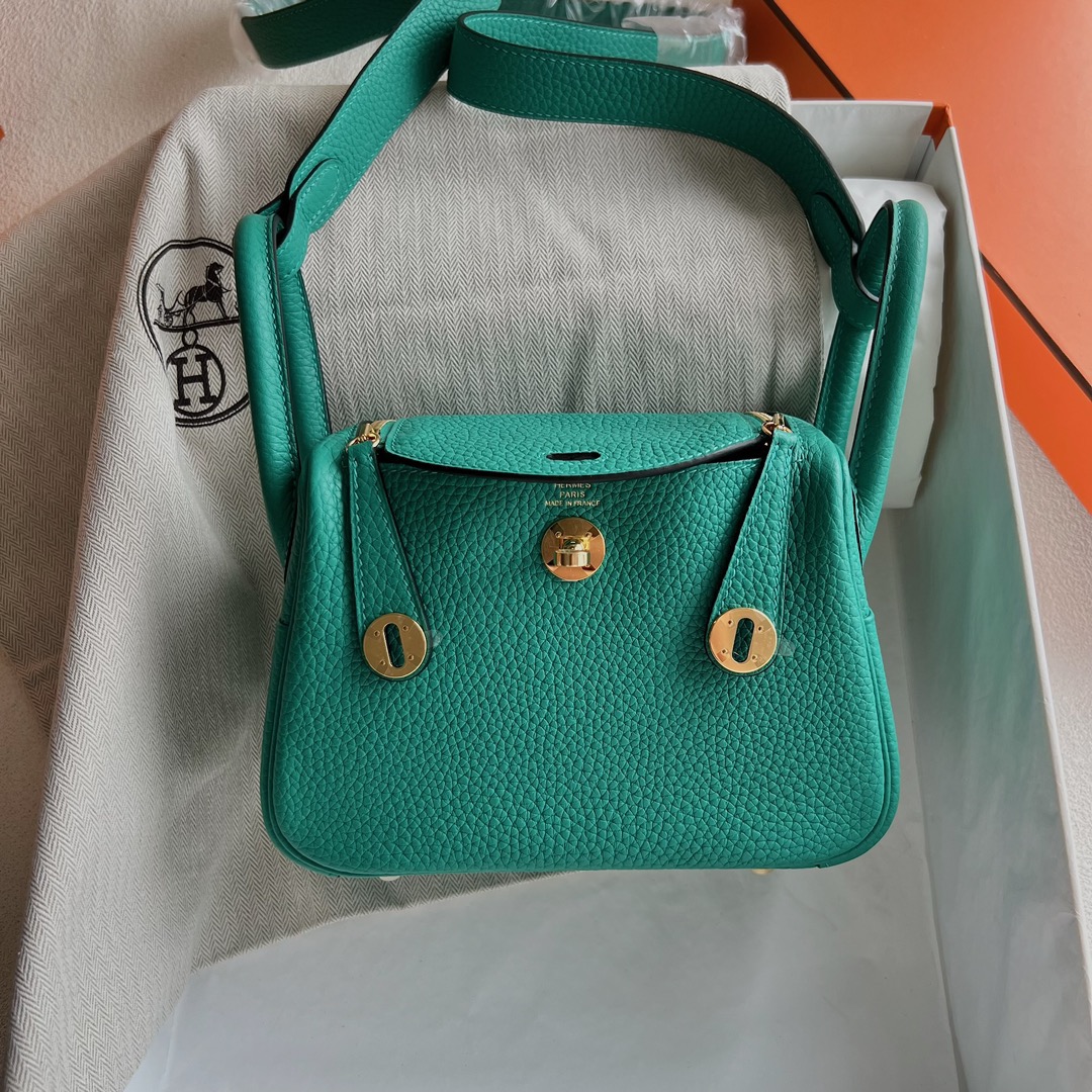 Hermes Mini Lindy Bag Price Taurillon Clemence Original Leather from Germany CCU1 Vert verone 维罗纳绿 Gold Hardware(GHW)