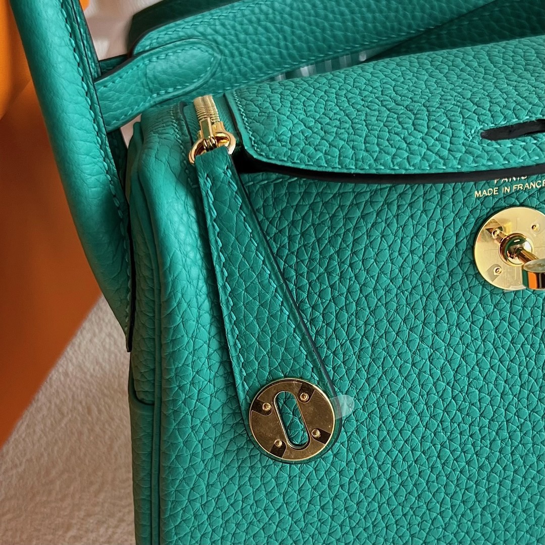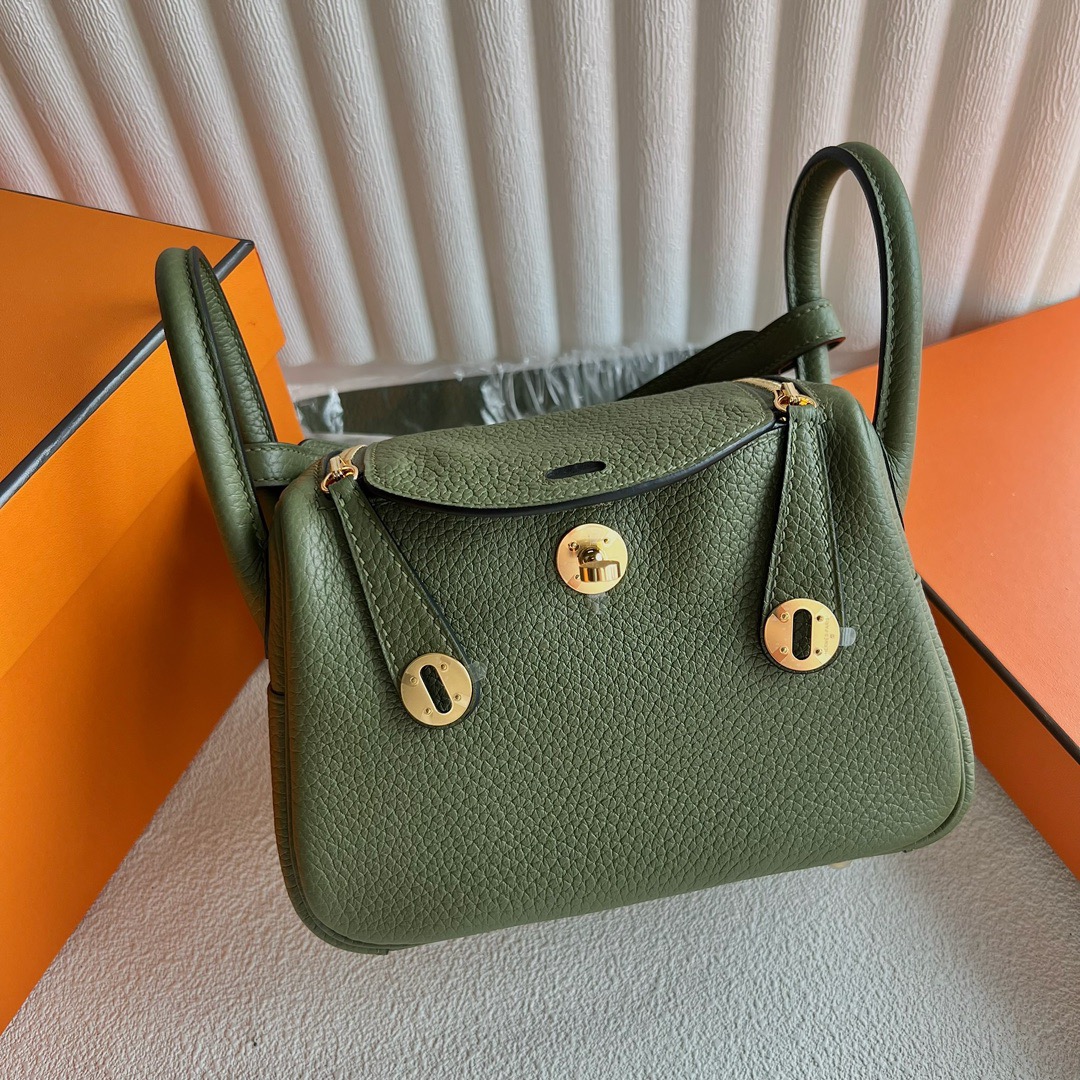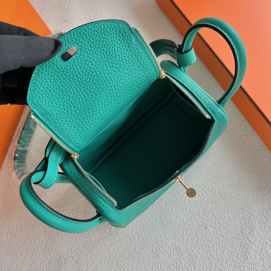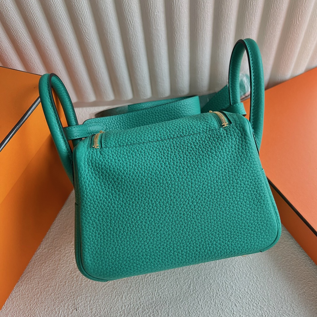 Hermes Mini Lindy Bag Price Taurillon Clemence Original Leather from Germany CCU1 Vert verone 维罗纳绿 Gold Hardware(GHW)