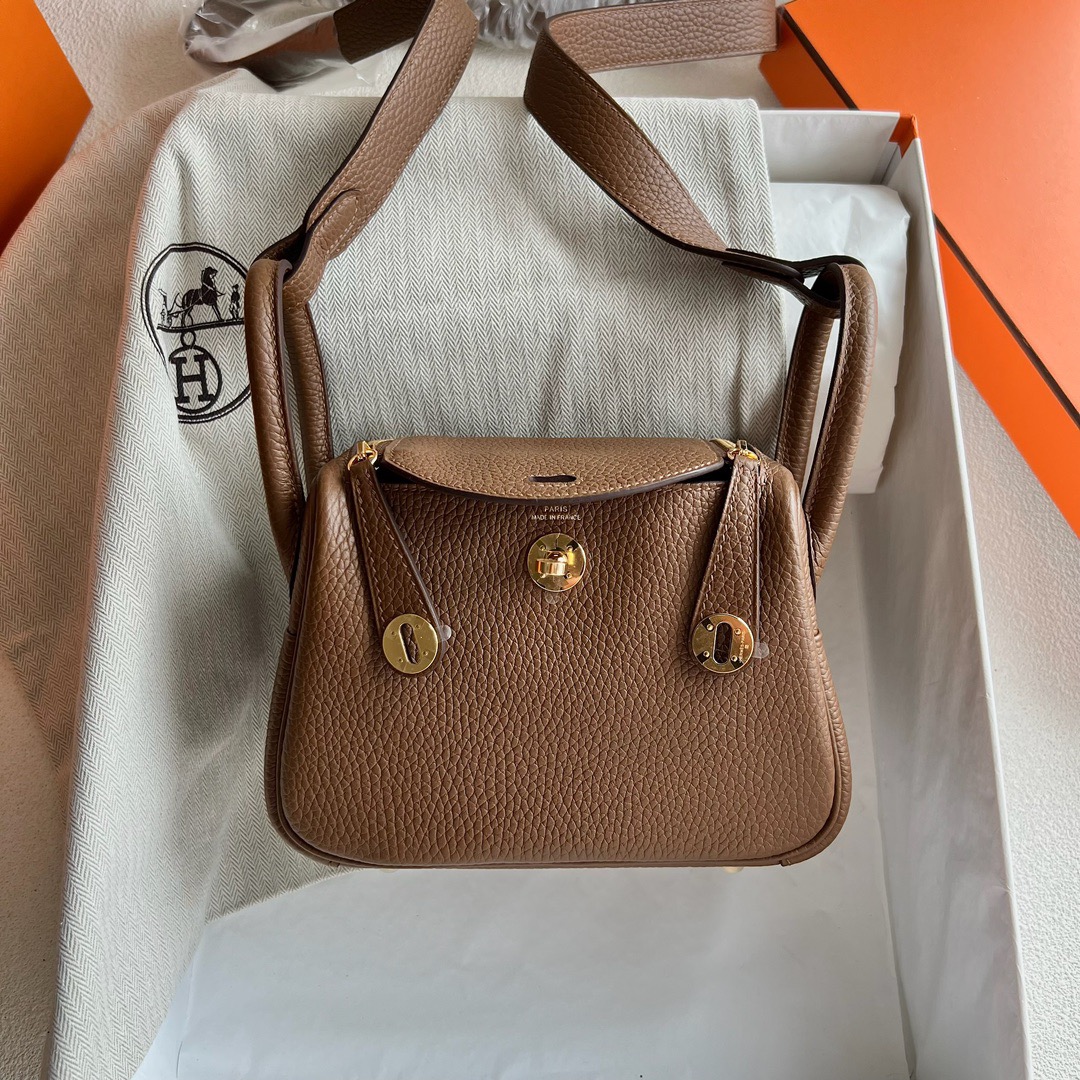 Hermes Mini Lindy Bag Price Taurillon Clemence Original Leather from Germany CC3G Alezan 栗子棕 Gold Hardware(GHW)