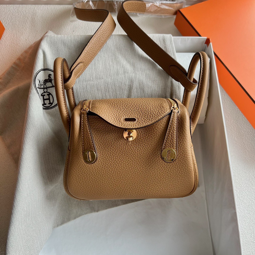 Hermes Mini Lindy Bag Price Taurillon Clemence Original Leather from Germany CC0M Chai 奶茶色 Gold Hardware(GHW)