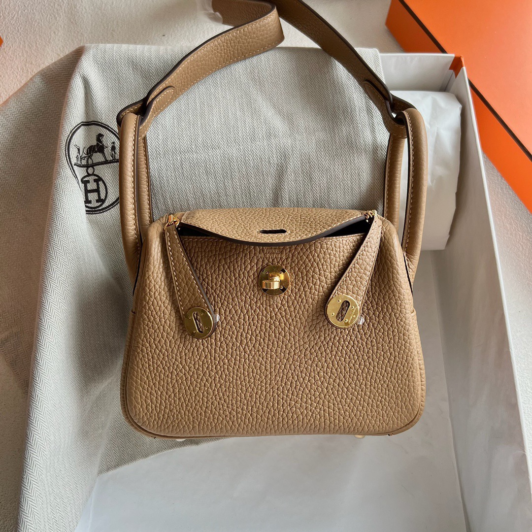 Hermes Mini Lindy Bag Price Taurillon Clemence Original Leather from Germany CC4B Biscuit 饼干色 Gold Hardware(GHW)