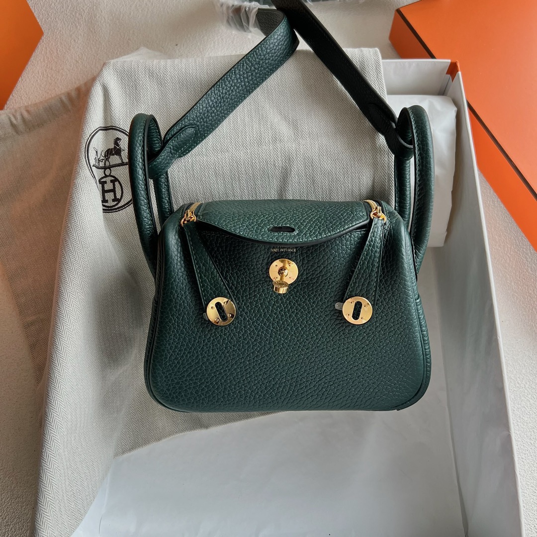 Hermes Mini Lindy Bag Price Taurillon Clemence Original Leather from Germany CC6O Vert cypres 松柏绿 柏树绿 Gold Hardware(GHW)