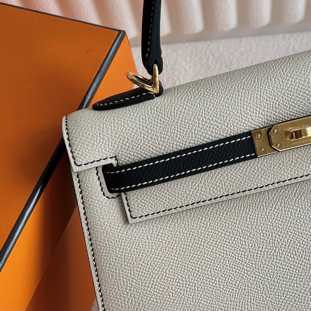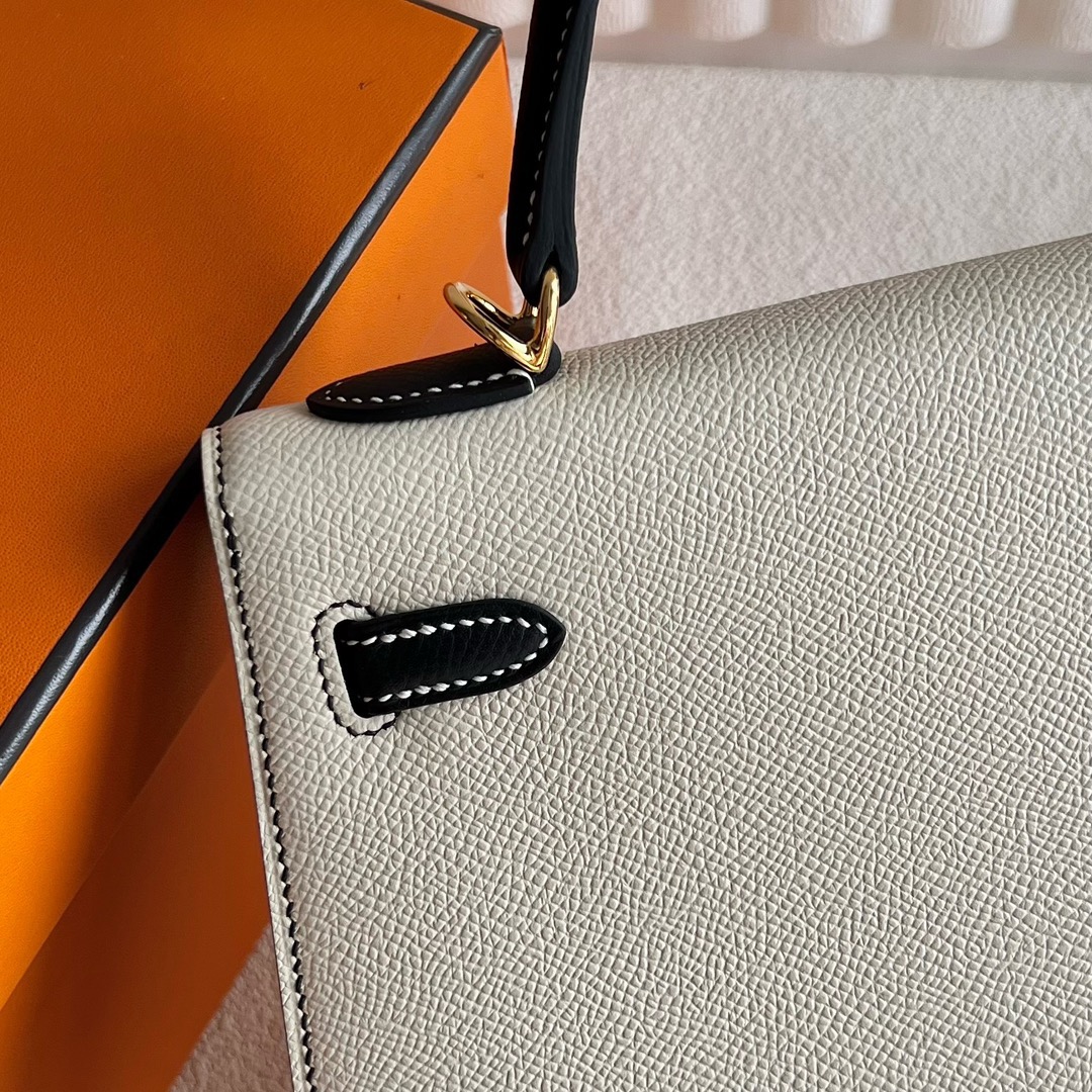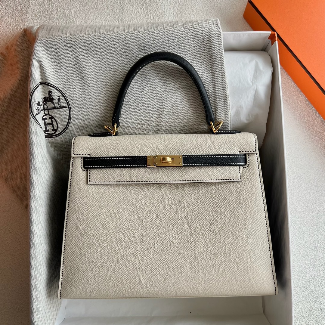Hermes Kelly 25cm Epsom Leather CK10 Craie 奶昔白/CC89 Noir 黑色 Gold Hardware(GHW)