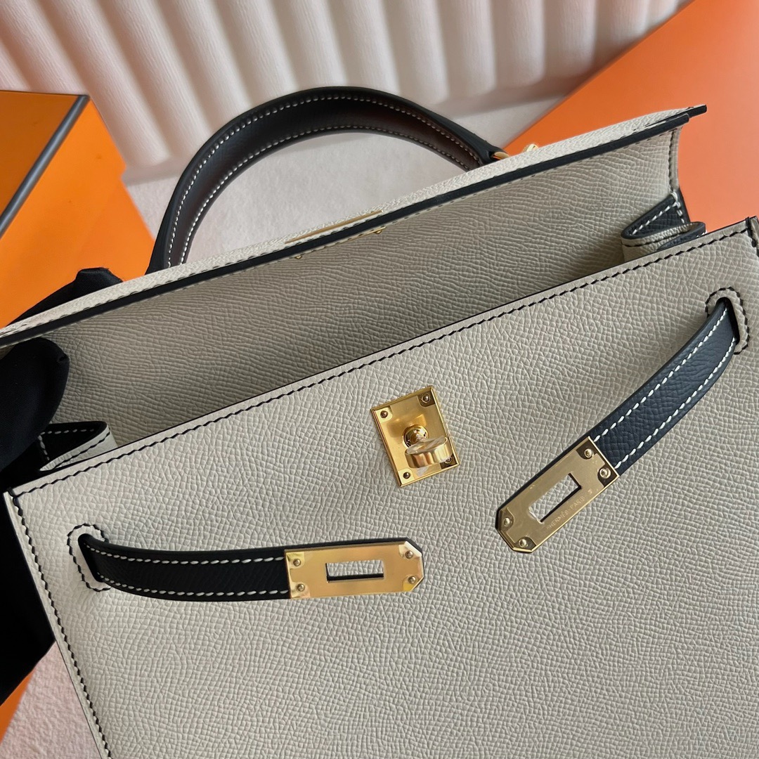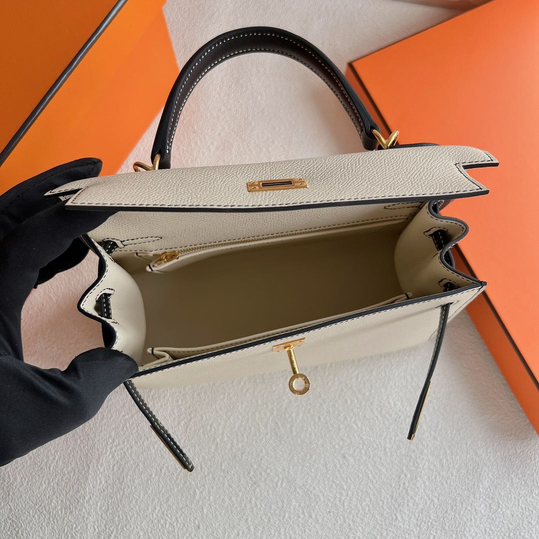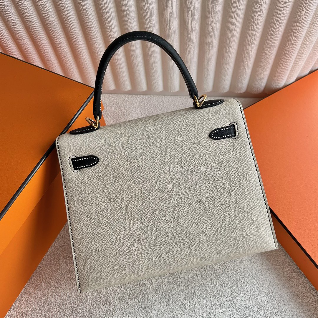 Hermes Kelly 25cm Epsom Leather CK10 Craie 奶昔白/CC89 Noir 黑色 Gold Hardware(GHW)