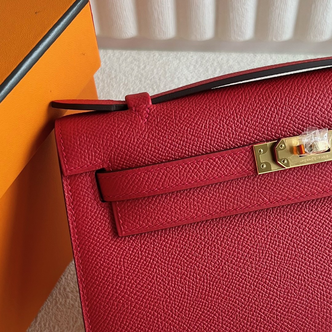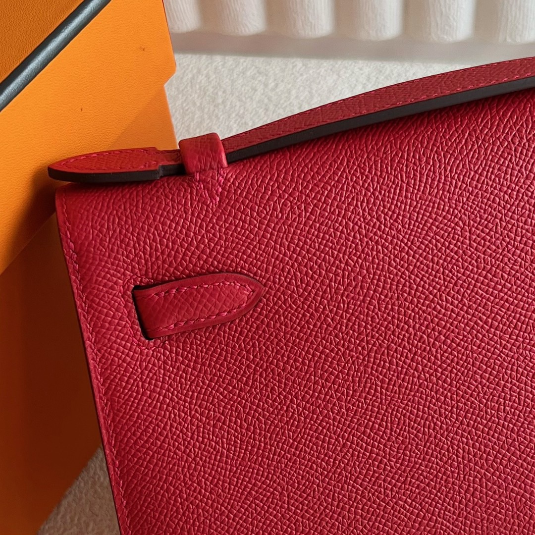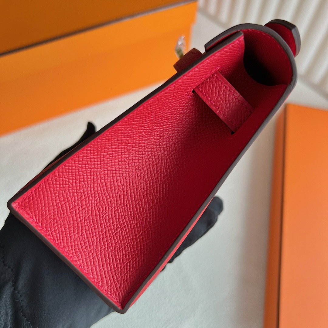 Hermes Mini Kelly Pochette 22cm Epsom CCQ5 Rose casaque 国旗红 Gold Hardware(GHW)