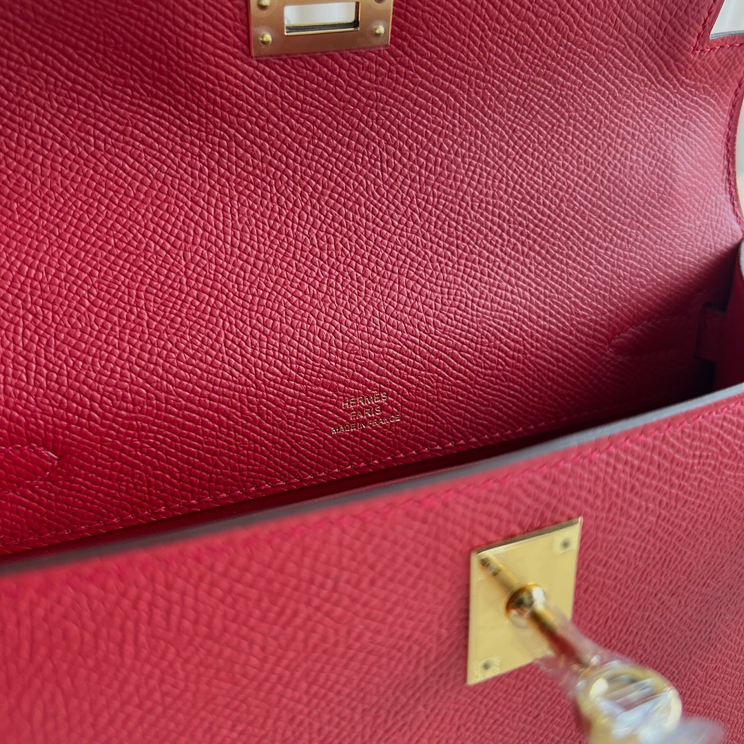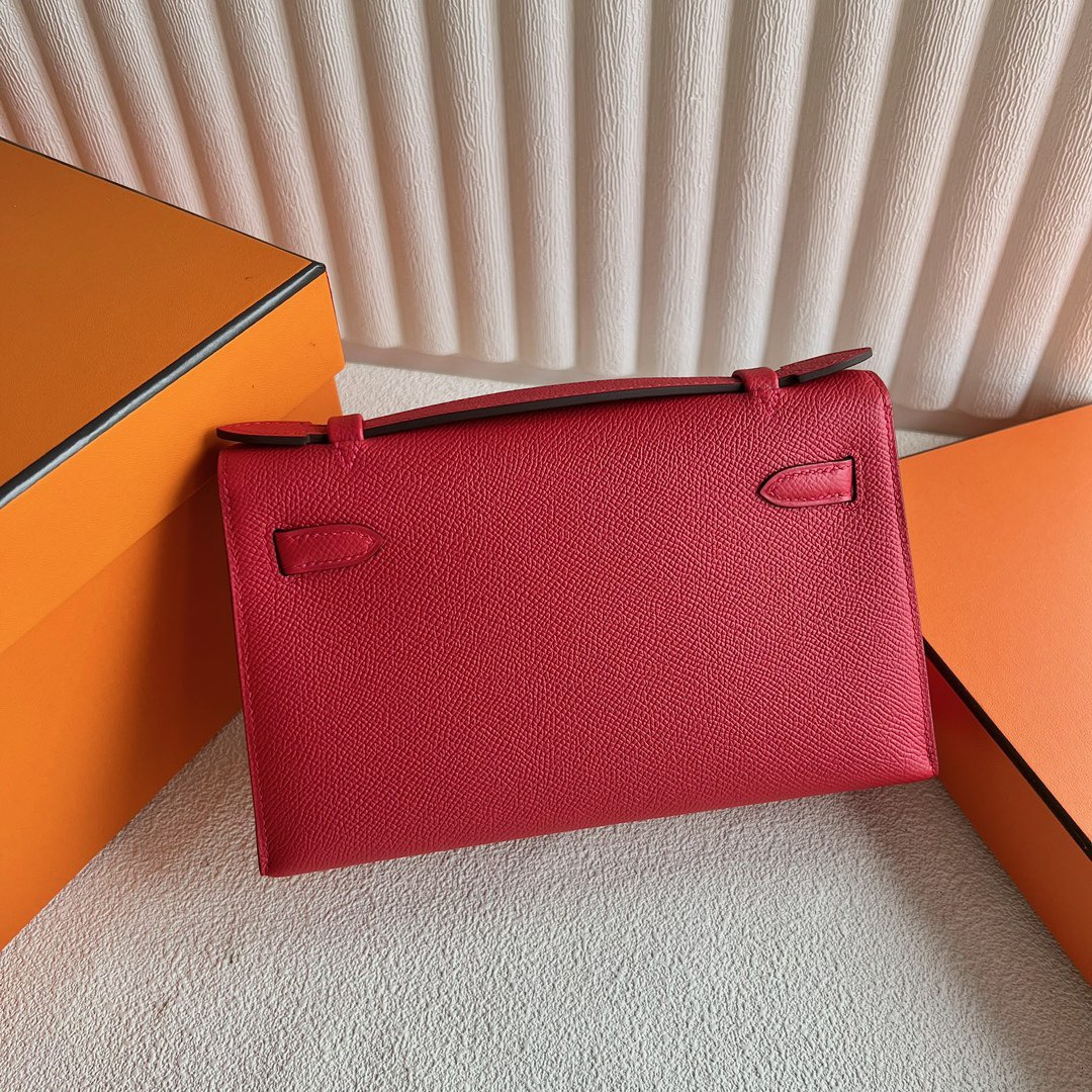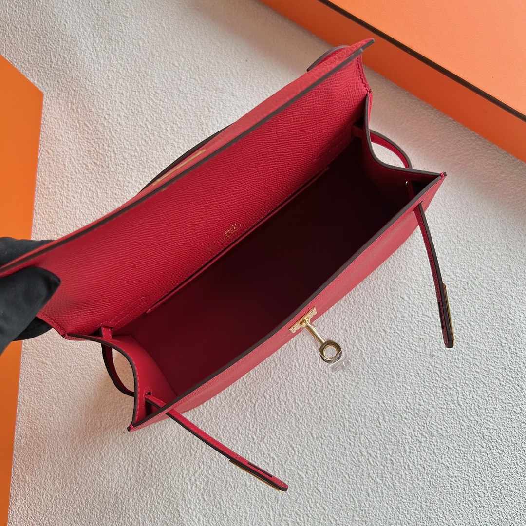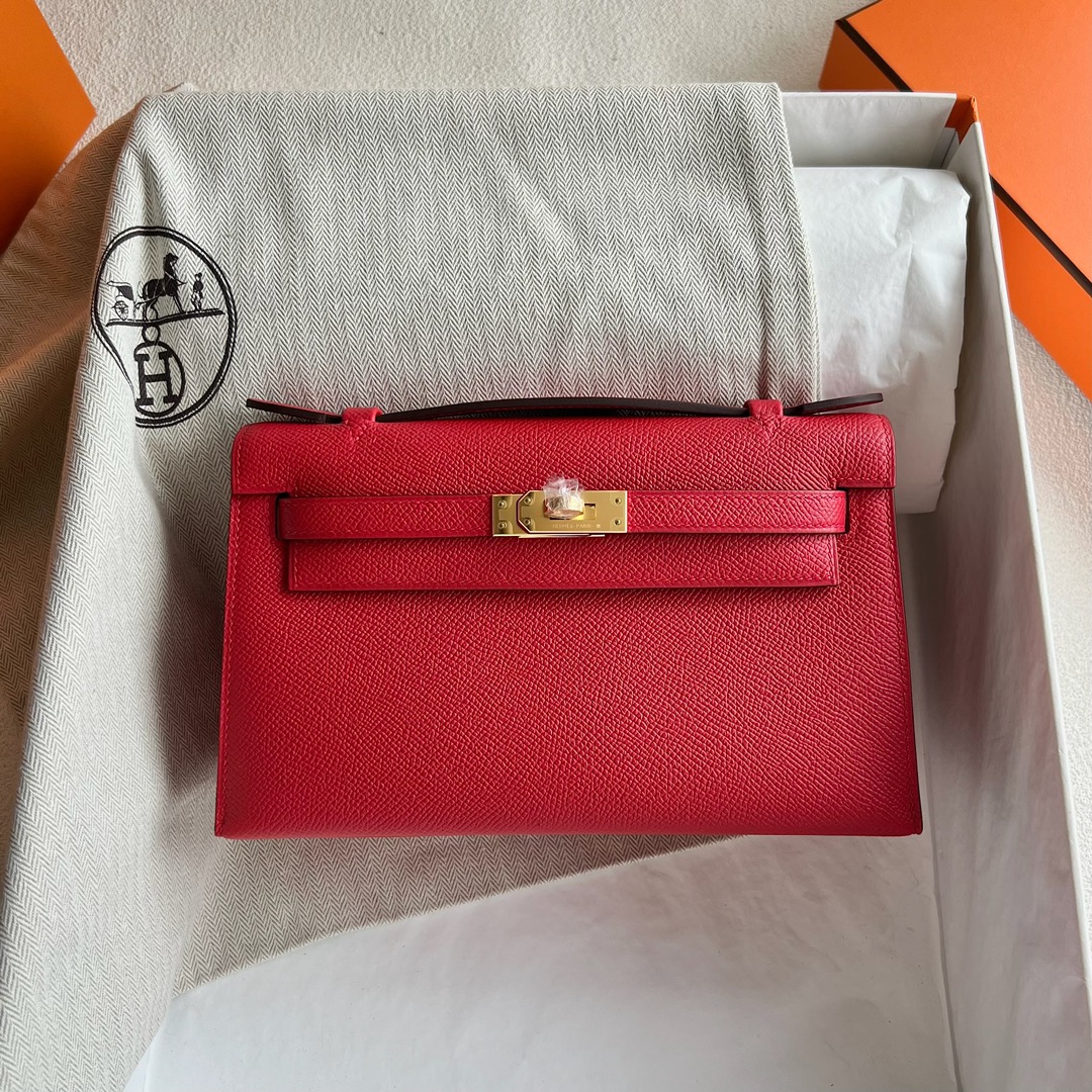 Hermes Mini Kelly Pochette 22cm Epsom CCQ5 Rose casaque 国旗红 Gold Hardware(GHW)