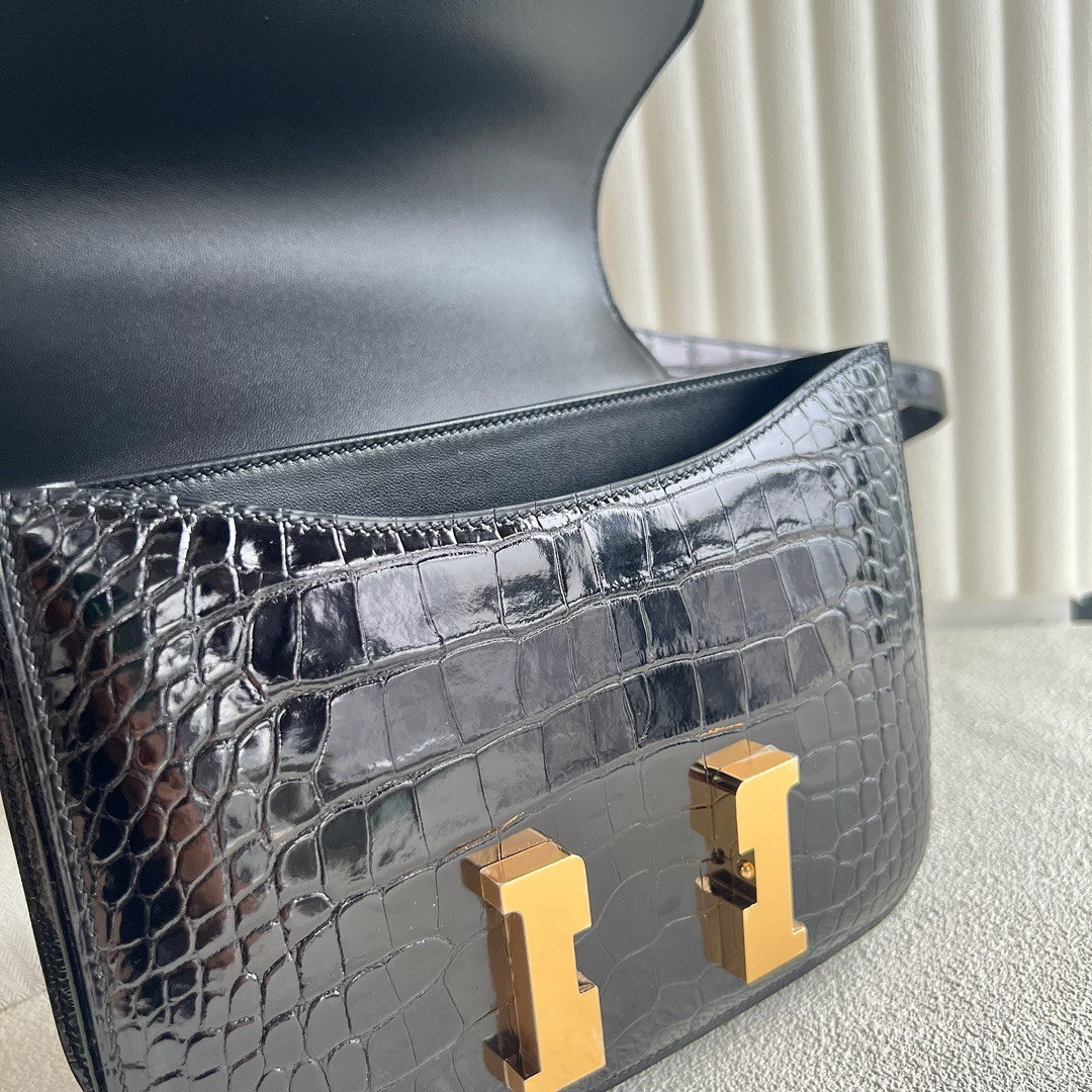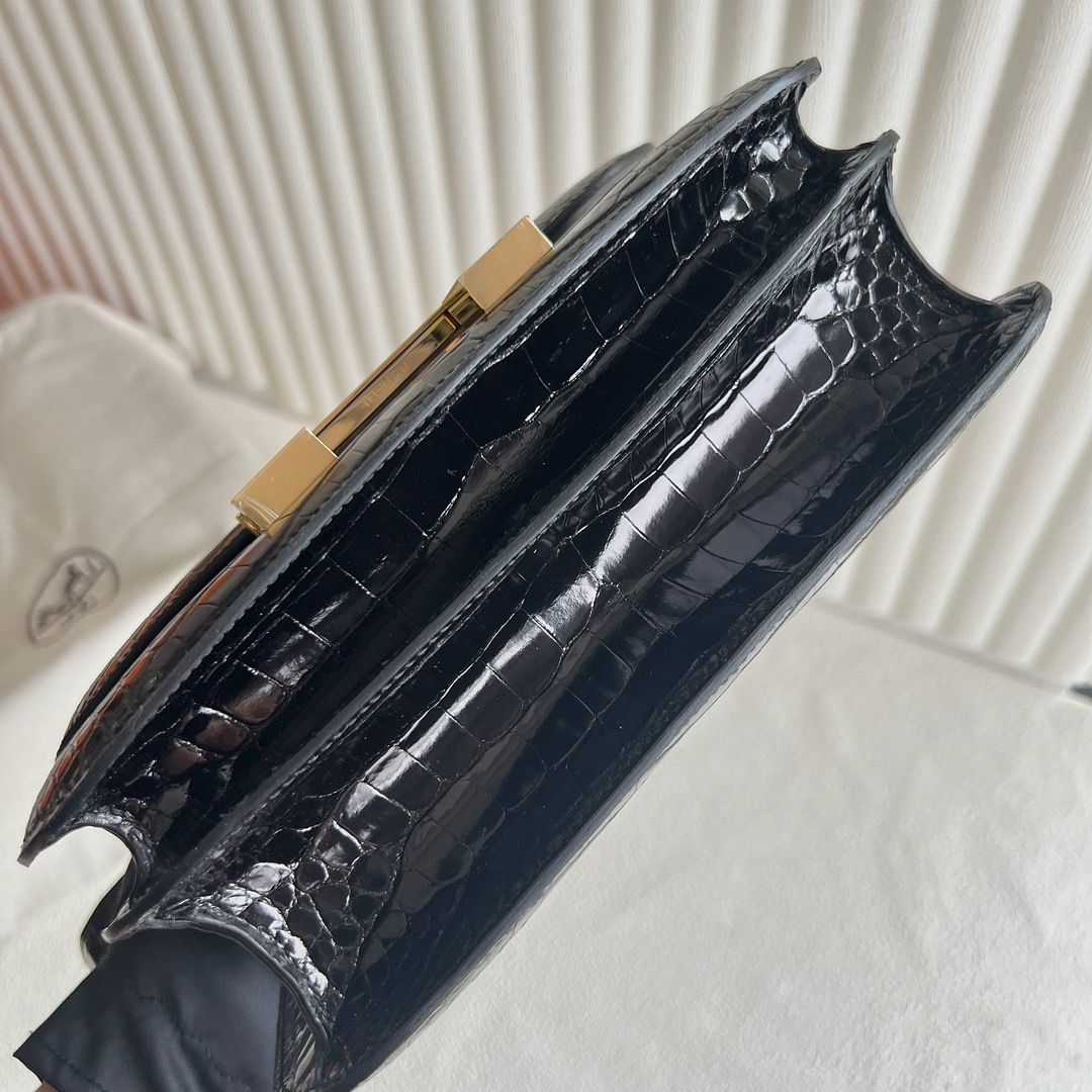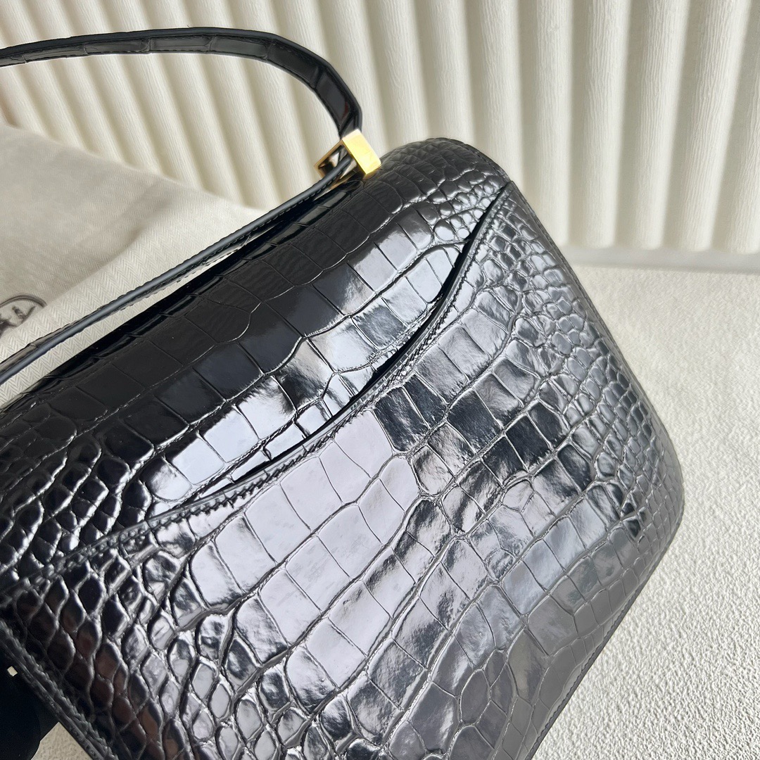 Hermes Constance 24cm Polished / Shiny Alligator Crocodile CC89 Noir 黑色 Gold Hardware(GHW)