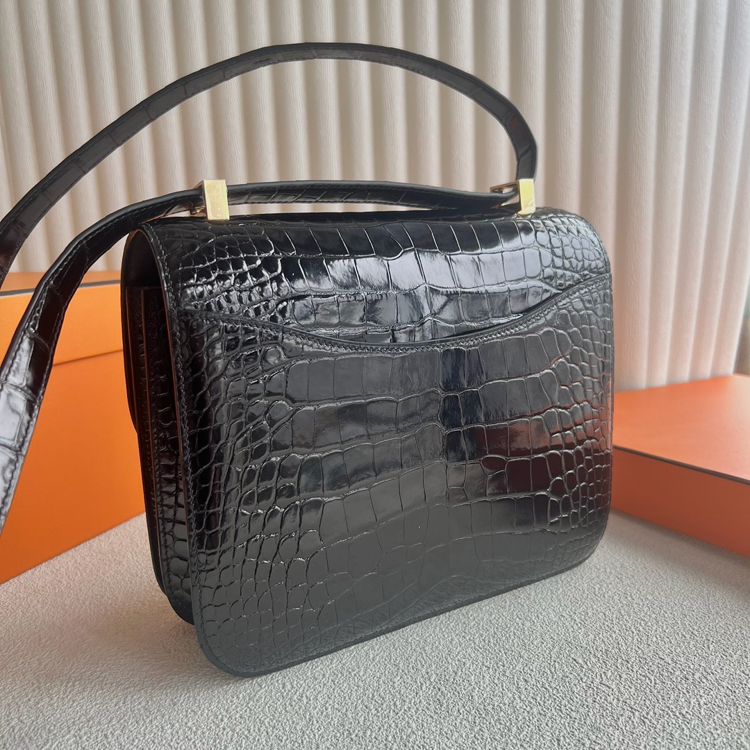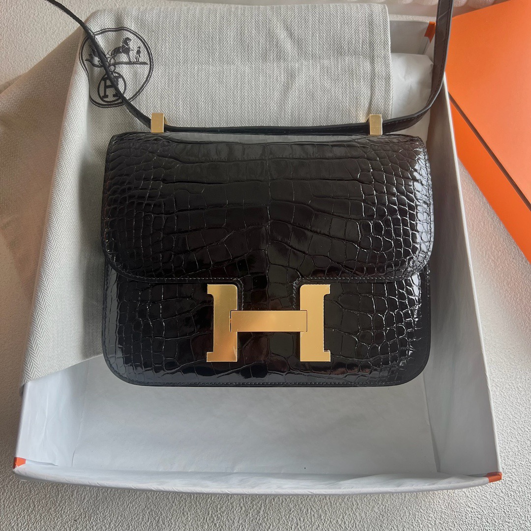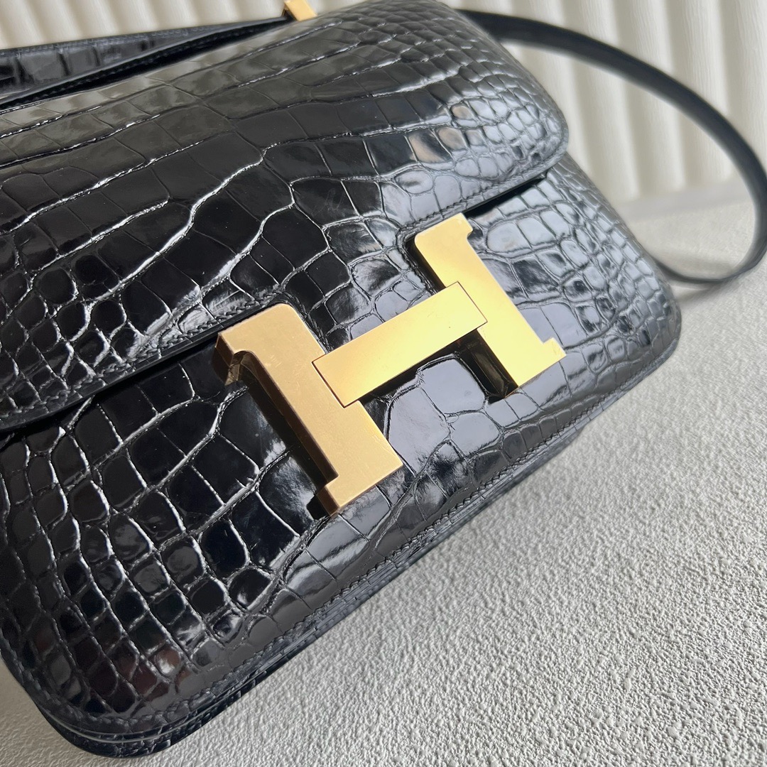 Hermes Constance 24cm Polished / Shiny Alligator Crocodile CC89 Noir 黑色 Gold Hardware(GHW)