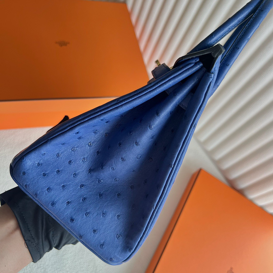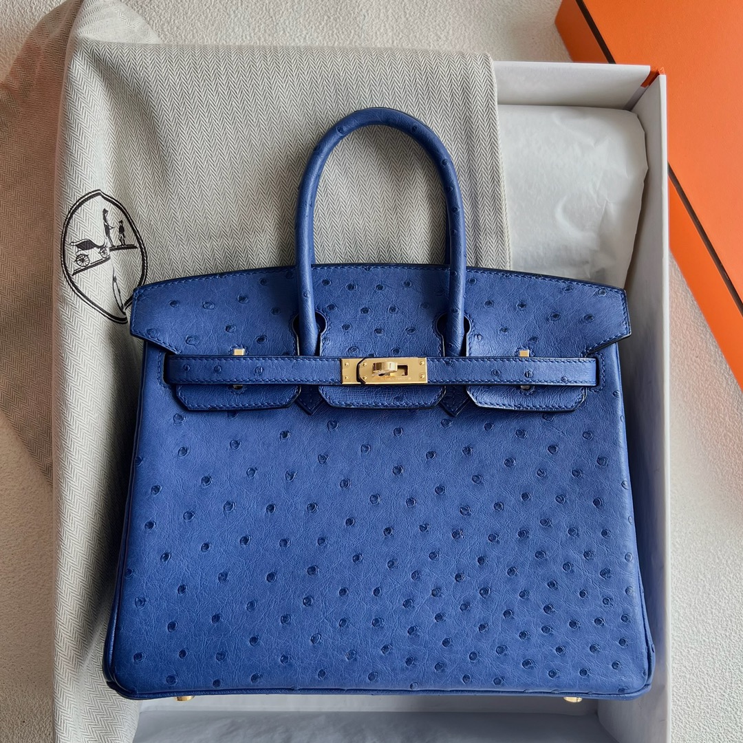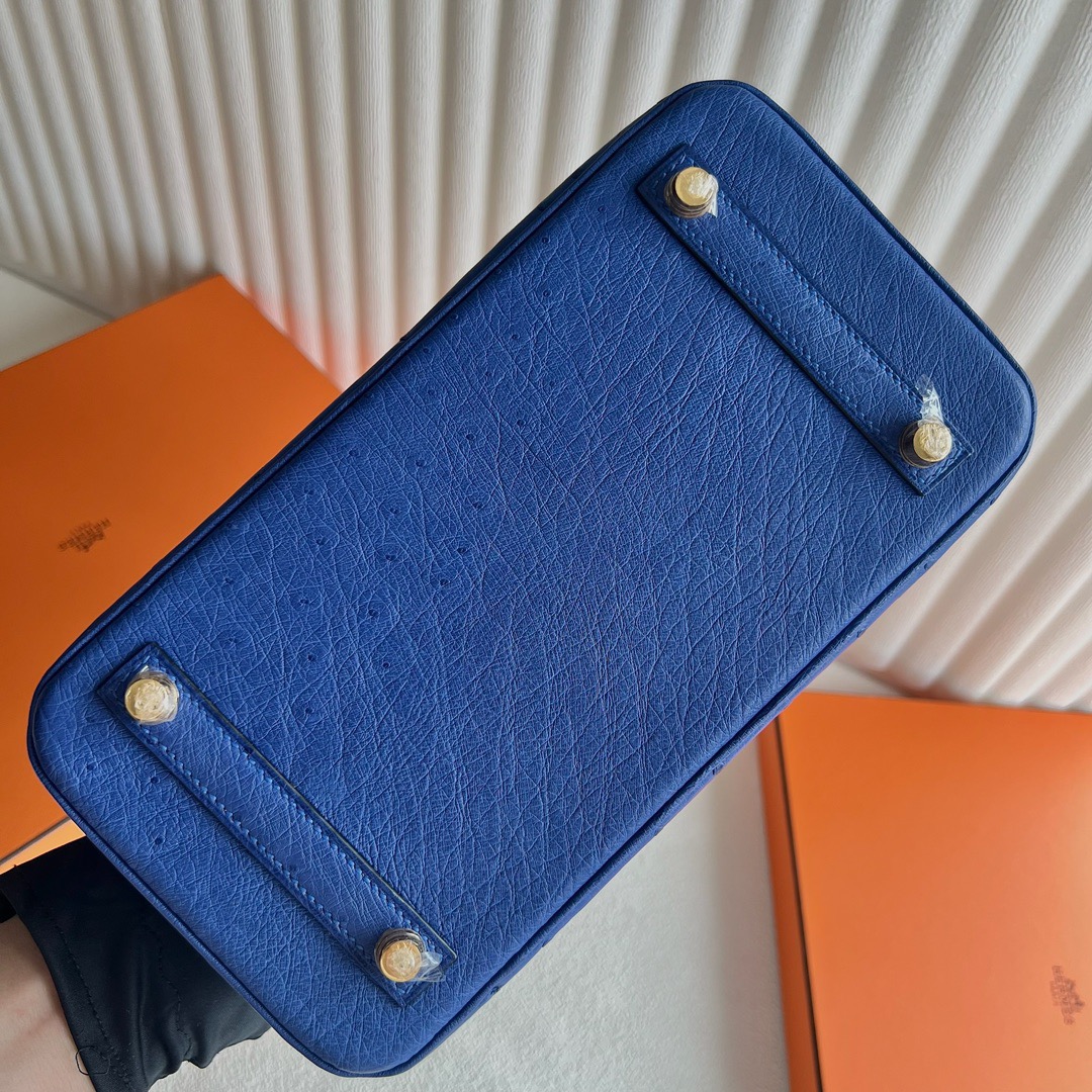 Hermes Birkin 25cm Ostrich Original factory Leather I7 Bleu Zellige 琉璃蓝 Gold Hardware(GHW)
