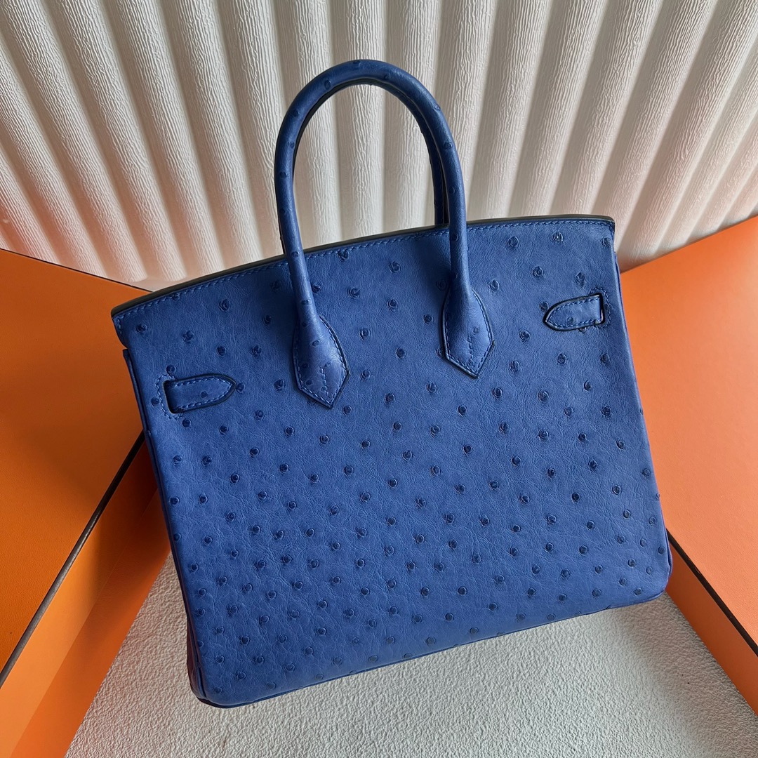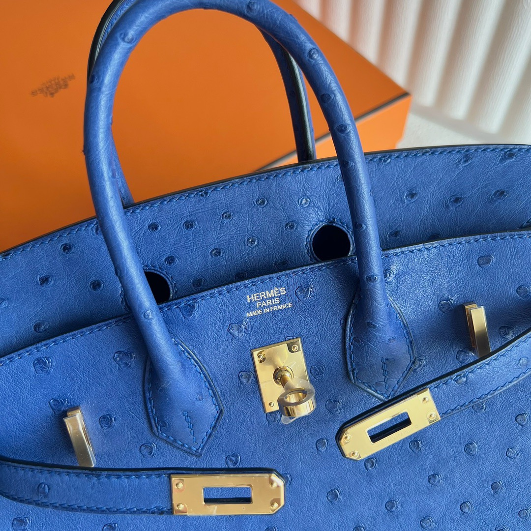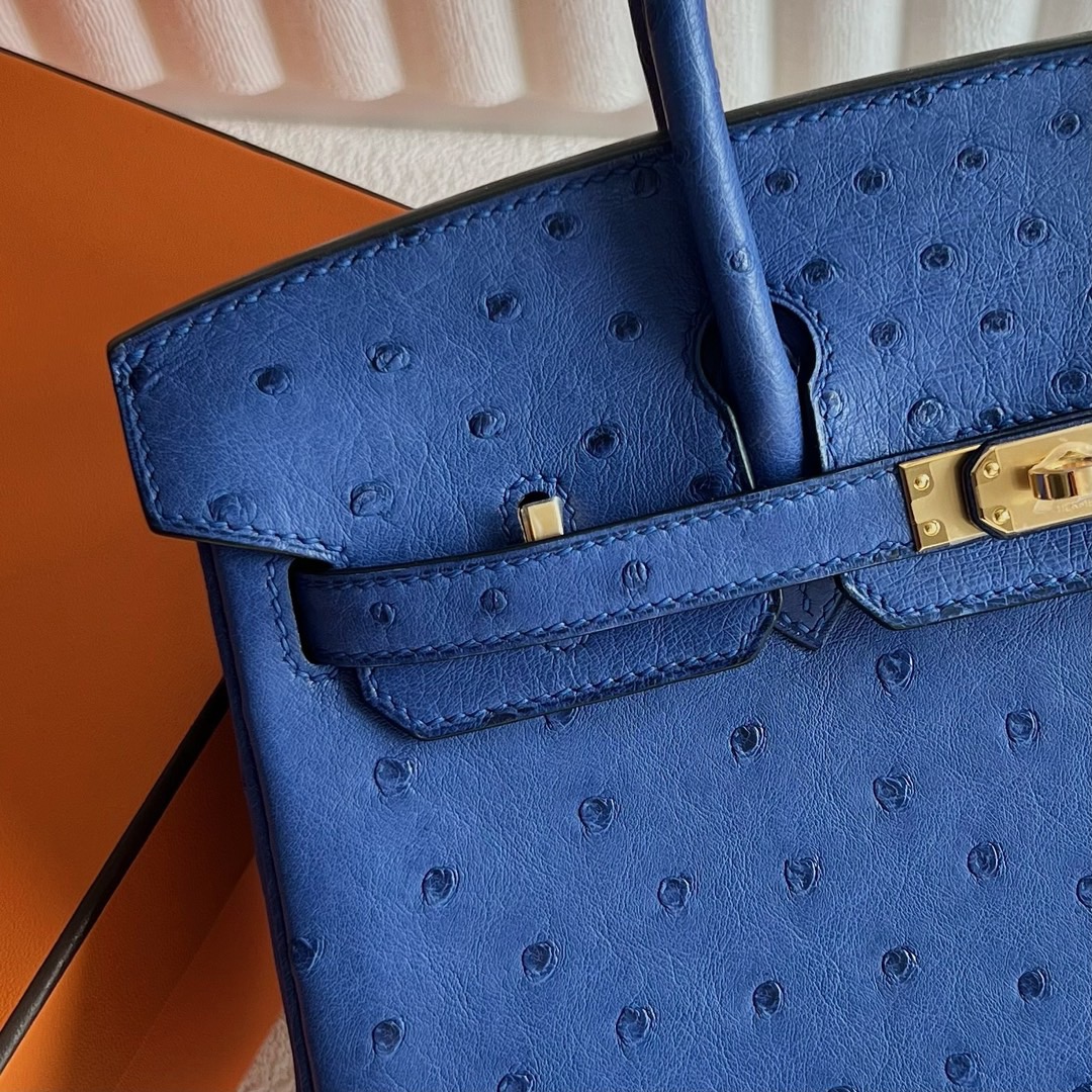 Hermes Birkin 25cm Ostrich Original factory Leather I7 Bleu Zellige 琉璃蓝 Gold Hardware(GHW)