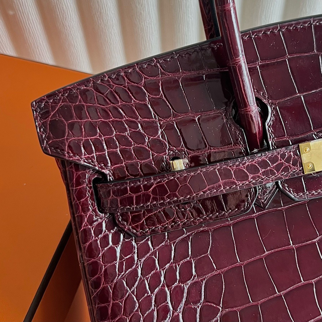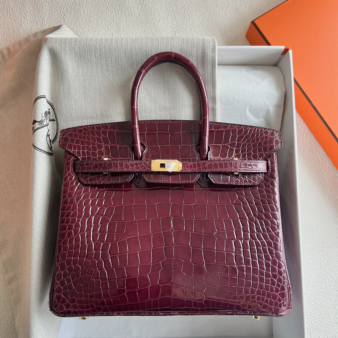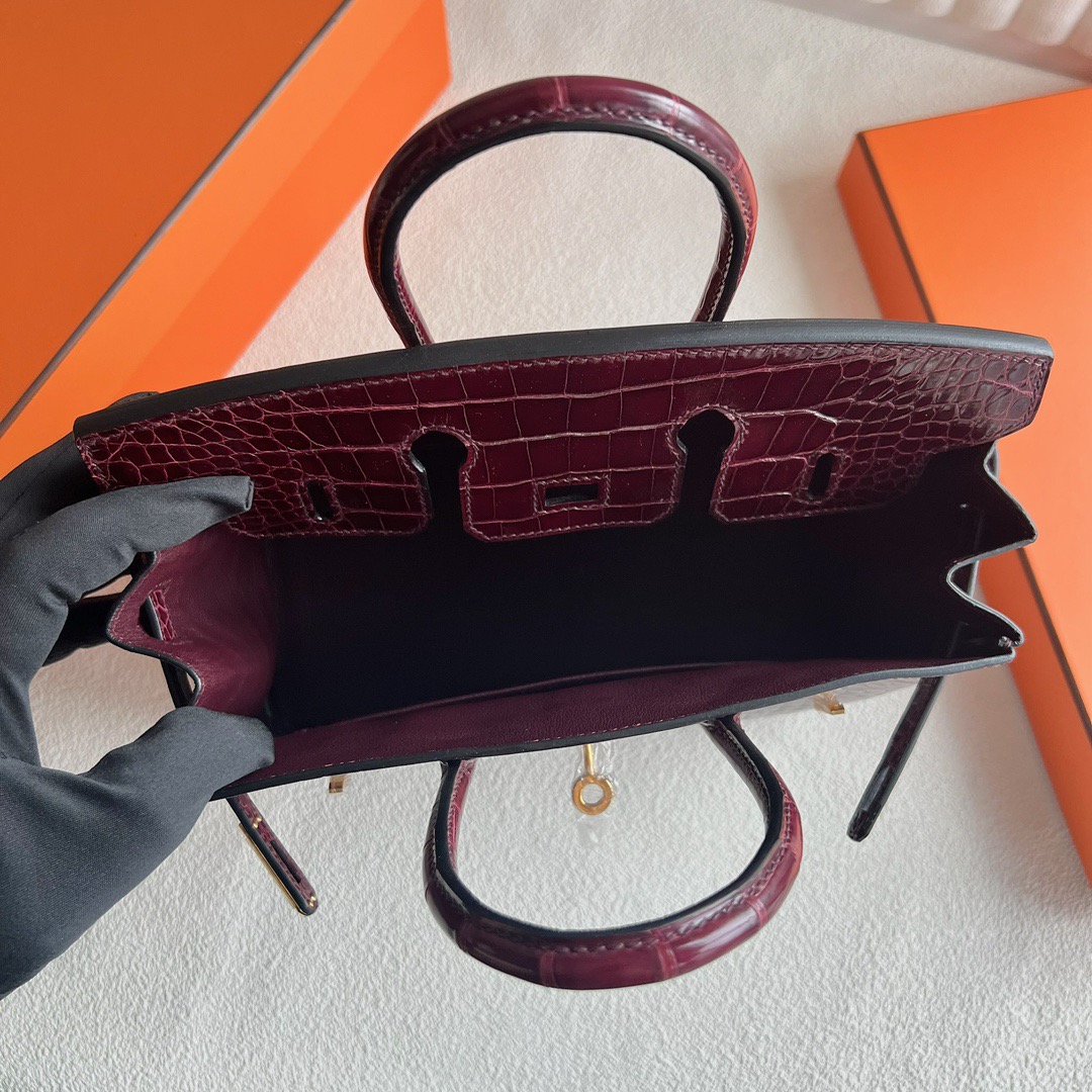 Hermes Birkin 25cm French HCP Crocodile Leather F5 Bourgogne 勃艮第酒红 Polished Shiny Alligator Crocodile Gold Hardware(GHW)