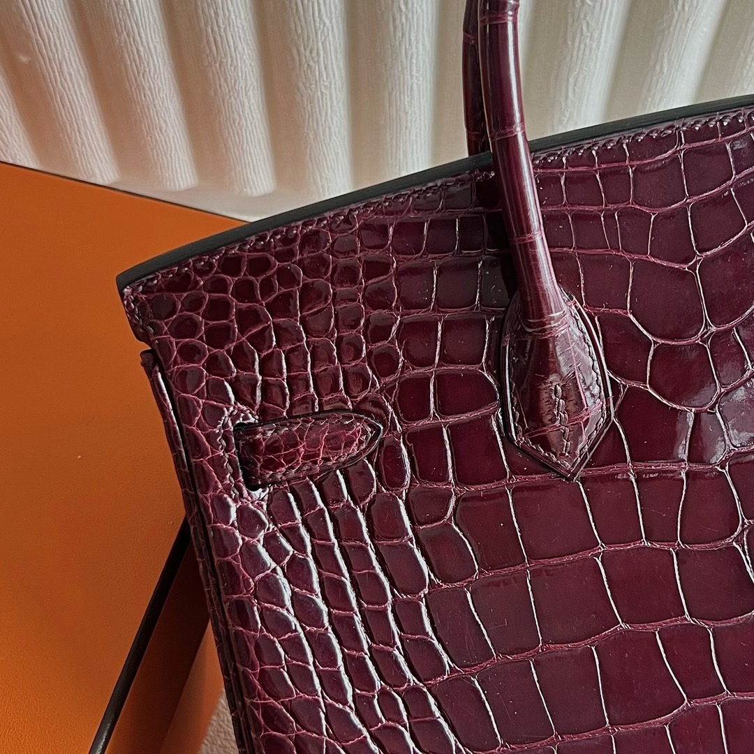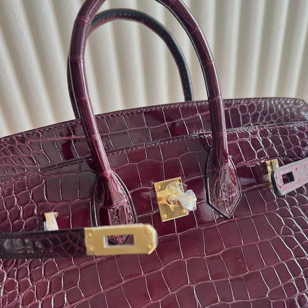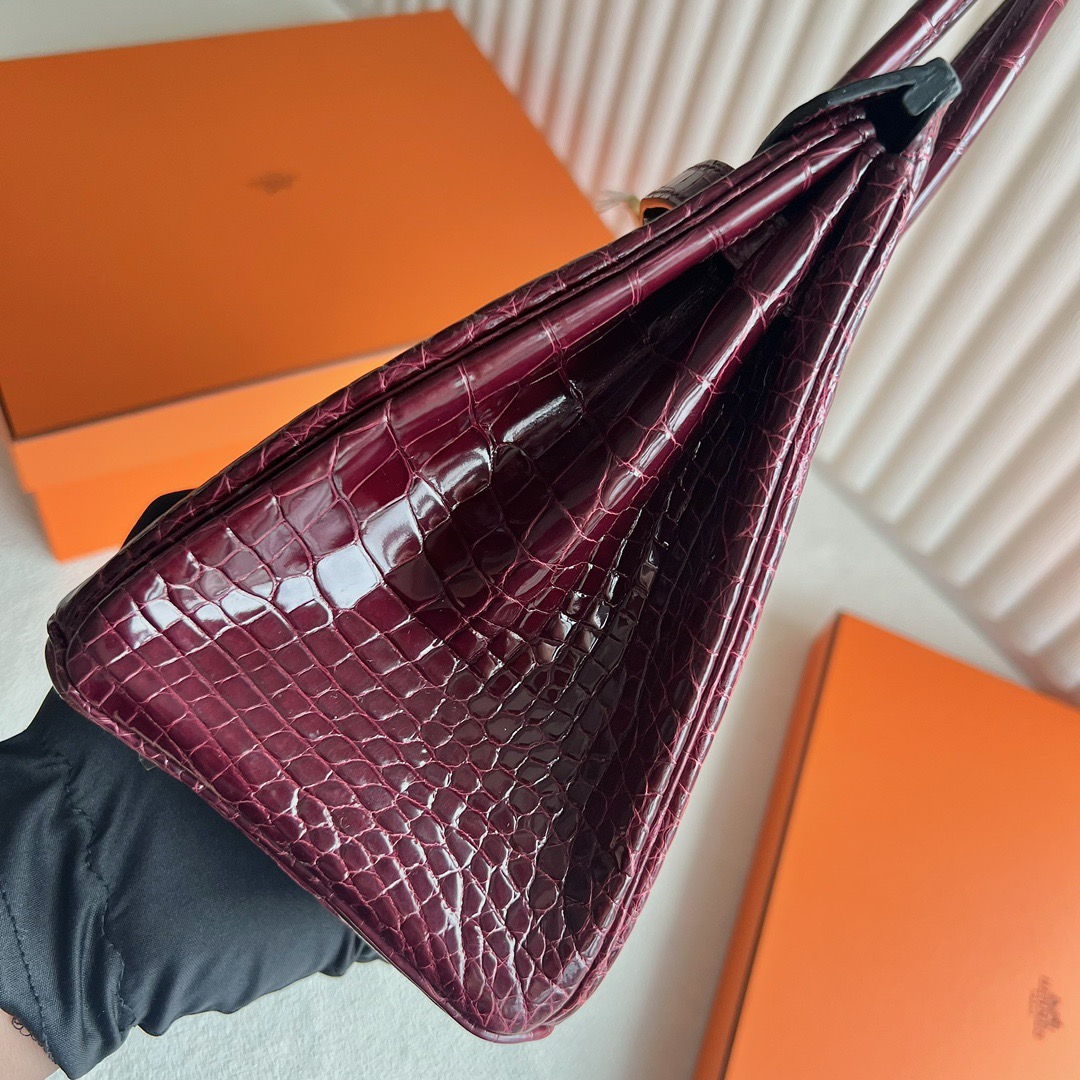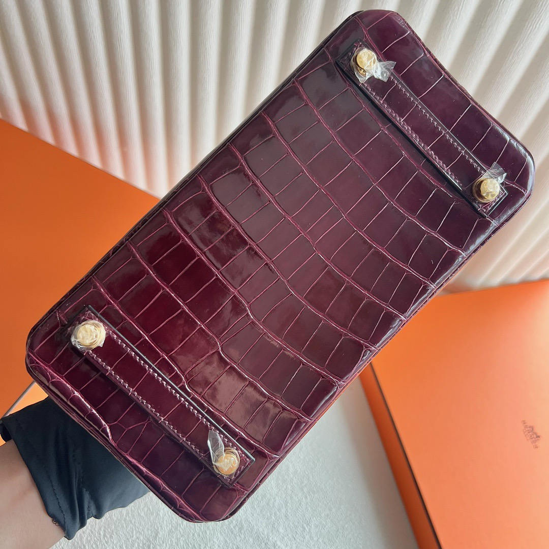 Hermes Birkin 25cm French HCP Crocodile Leather F5 Bourgogne 勃艮第酒红 Polished Shiny Alligator Crocodile Gold Hardware(GHW)