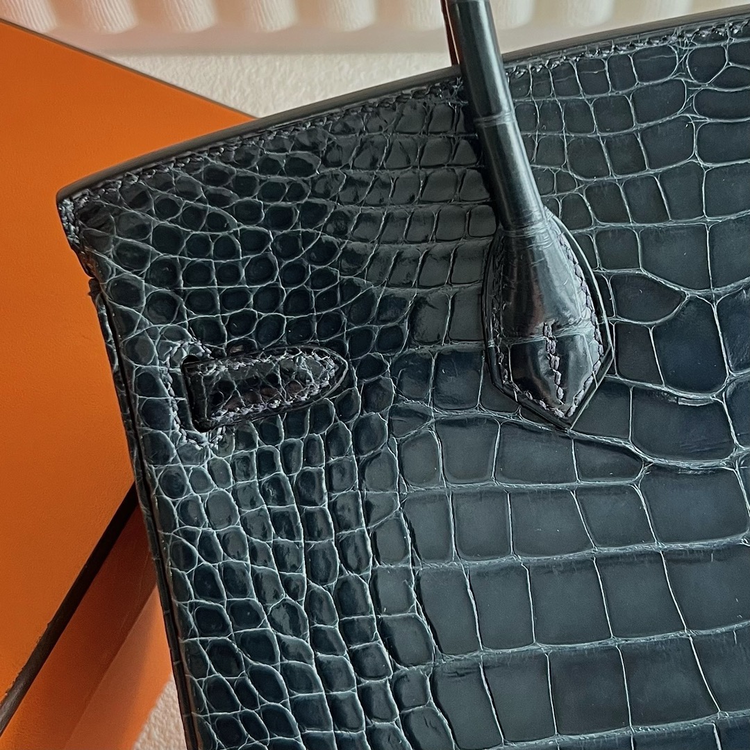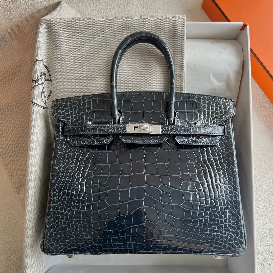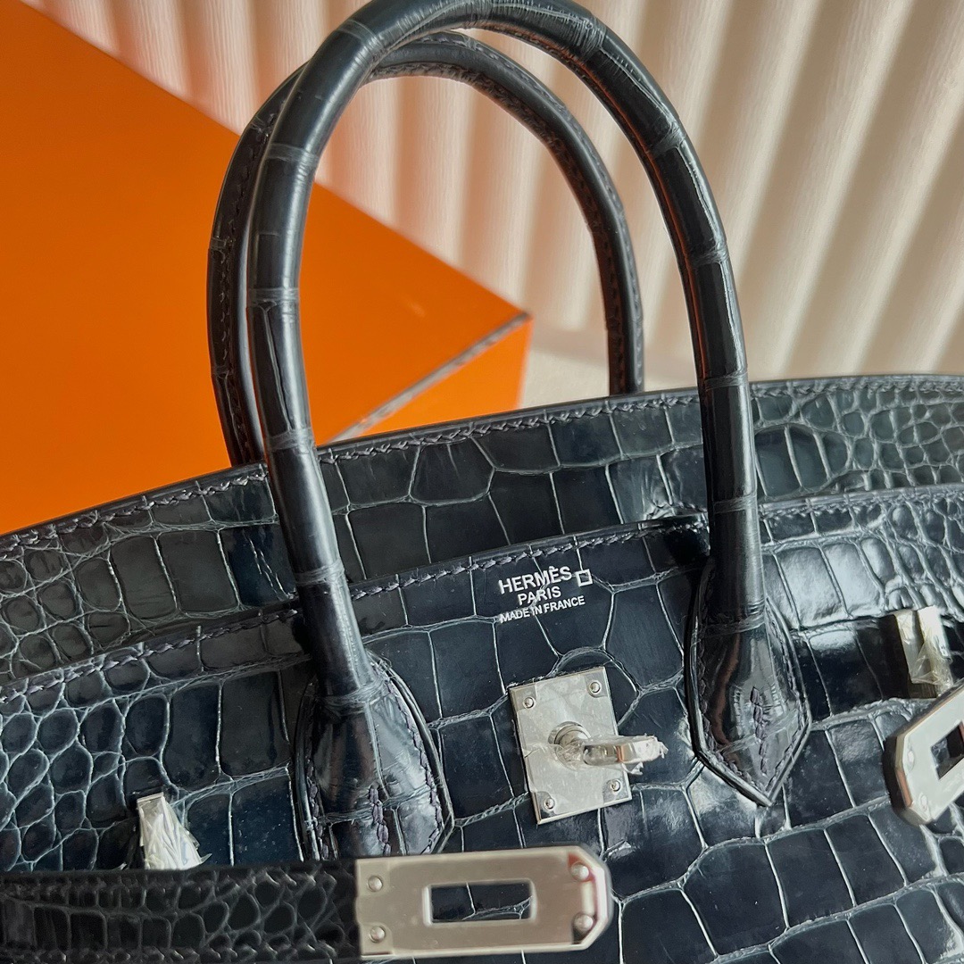Hermes Birkin 25cm French HCP Crocodile Leather CK76 Blue Indigo 深海蓝 Polished Shiny Alligator Crocodile Palladium Hardware(PHW)