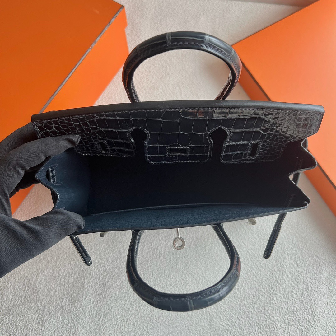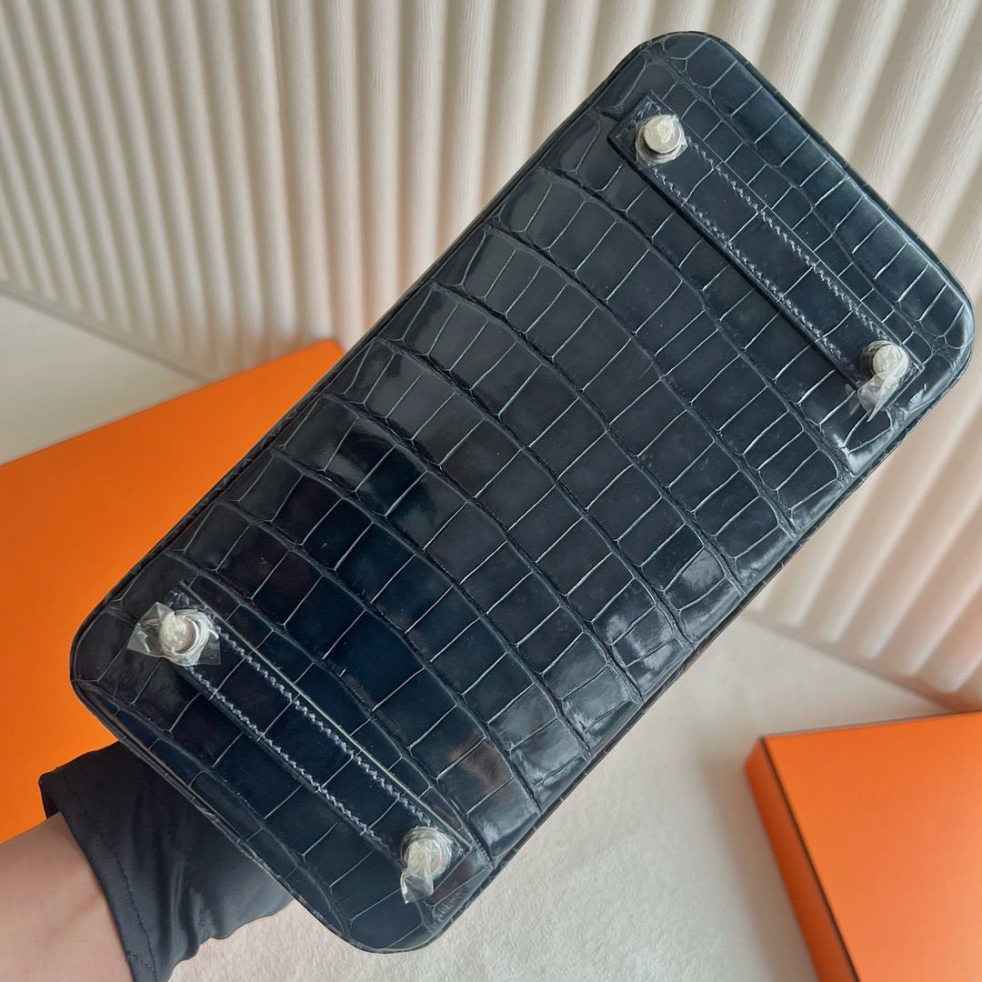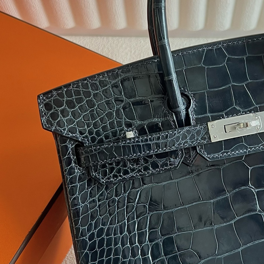 Hermes Birkin 25cm French HCP Crocodile Leather CK76 Blue Indigo 深海蓝 Polished Shiny Alligator Crocodile Palladium Hardware(PHW)