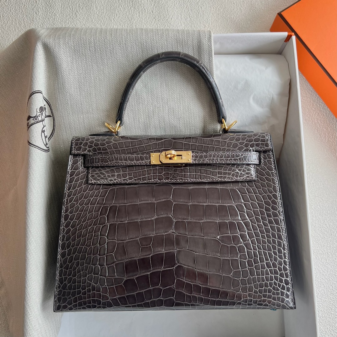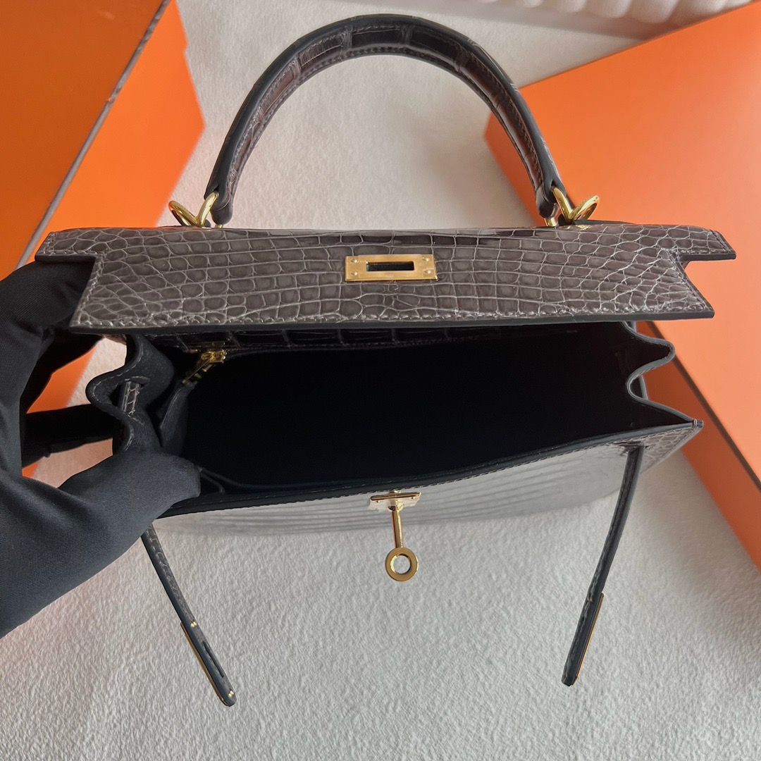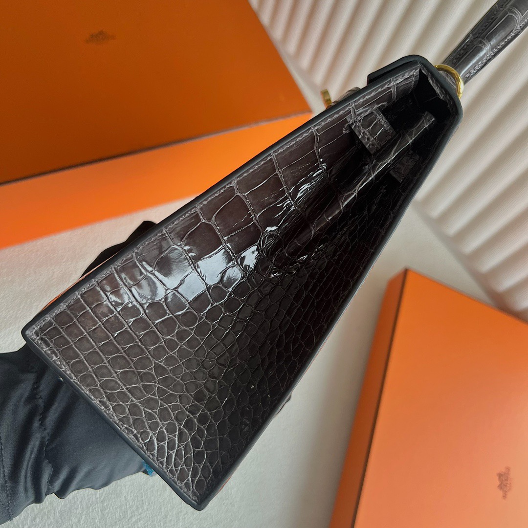 Hermes Kelly 25cm French HCP Crocodile Leather CK88 Graphite 石墨灰 Polished Shiny Alligator Crocodile Gold Hardware(GHW)