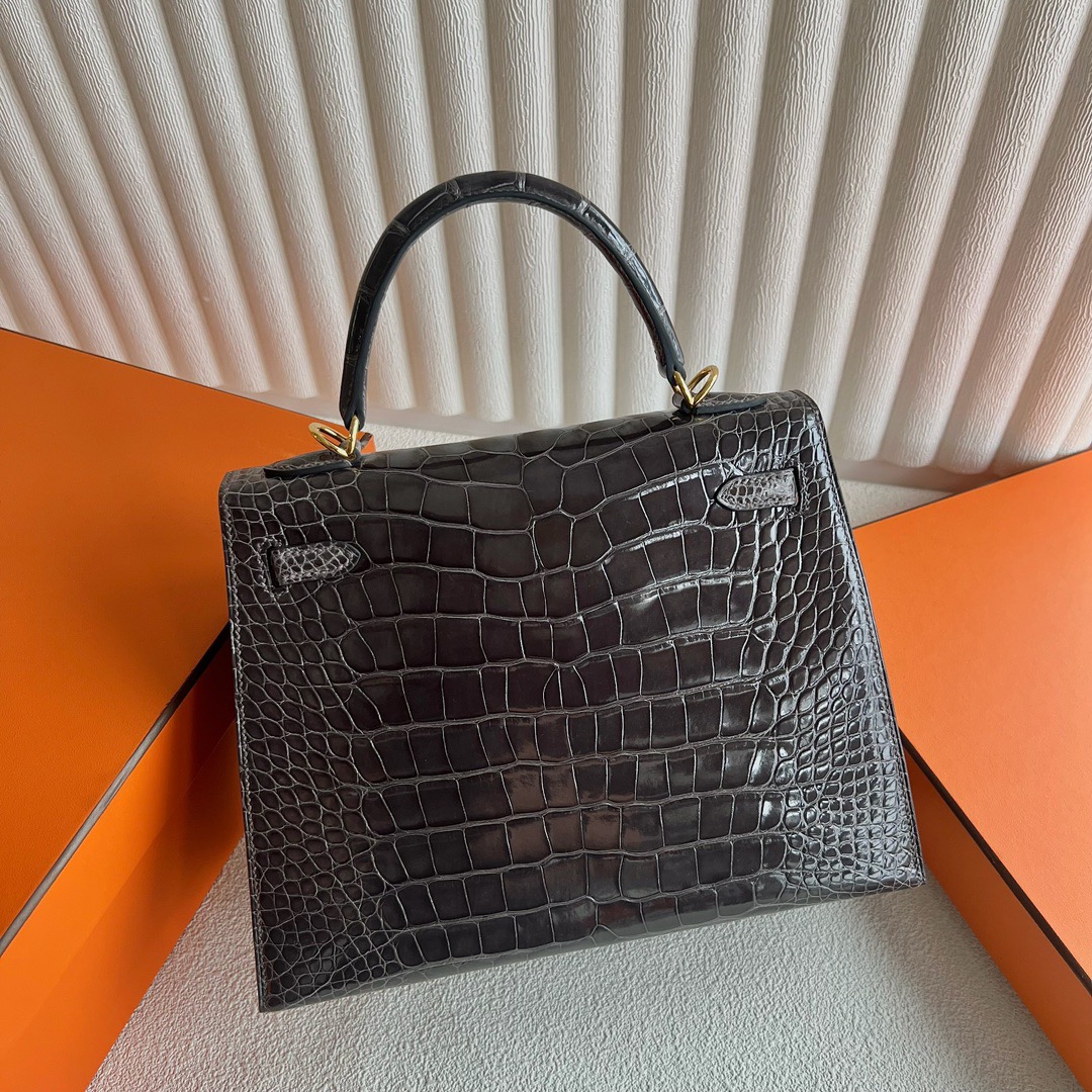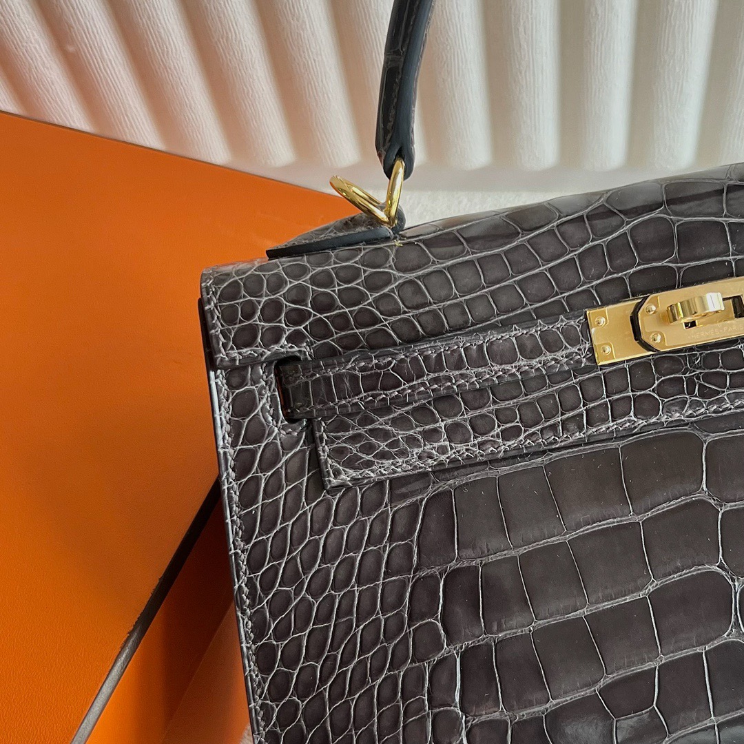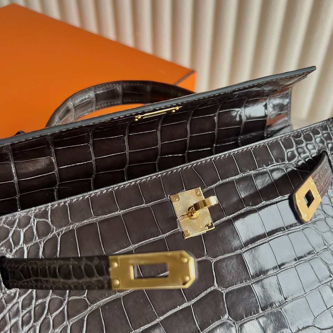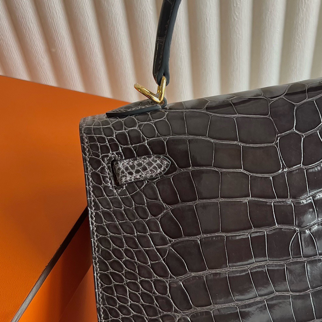 Hermes Kelly 25cm French HCP Crocodile Leather CK88 Graphite 石墨灰 Polished Shiny Alligator Crocodile Gold Hardware(GHW)