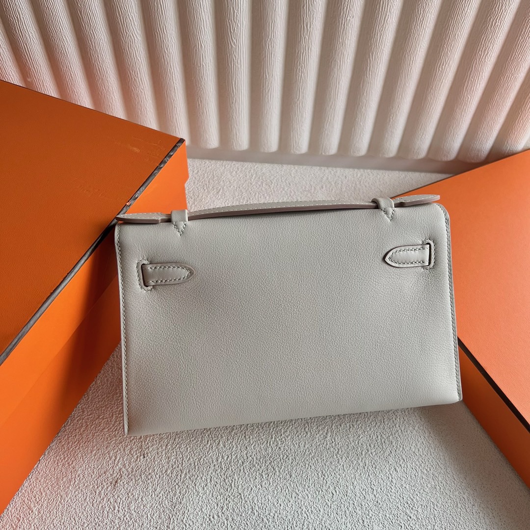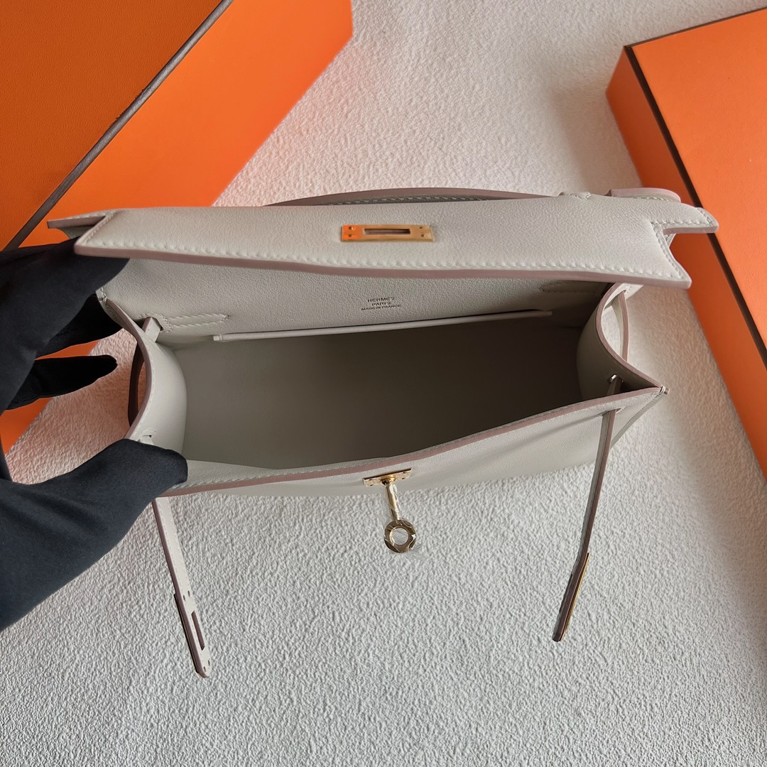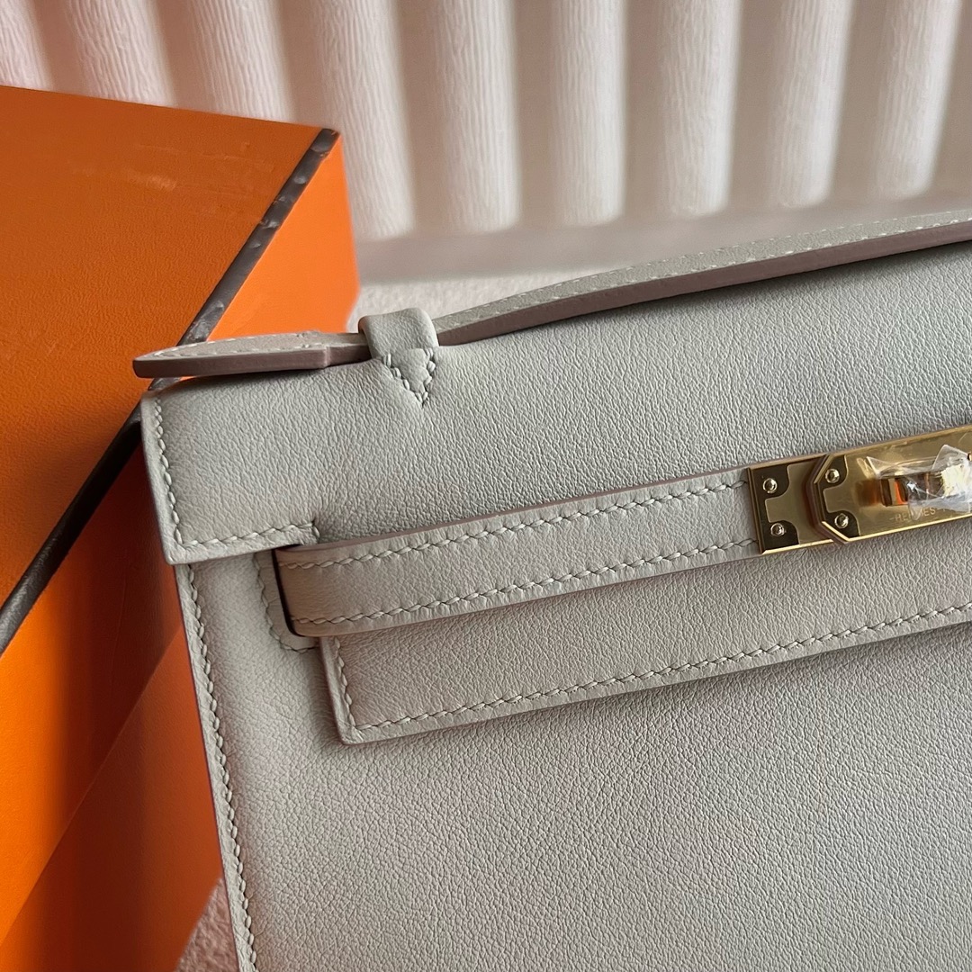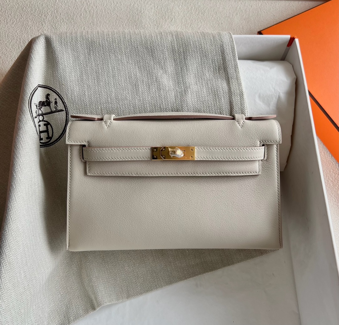 Hermes Mini Kelly Pochette 22cm Swift Original factory leather CK8L Beton 冰川白 Gold Hardware(GHW)