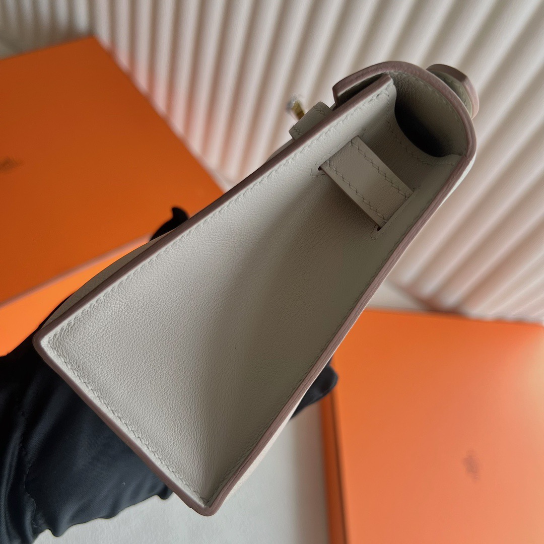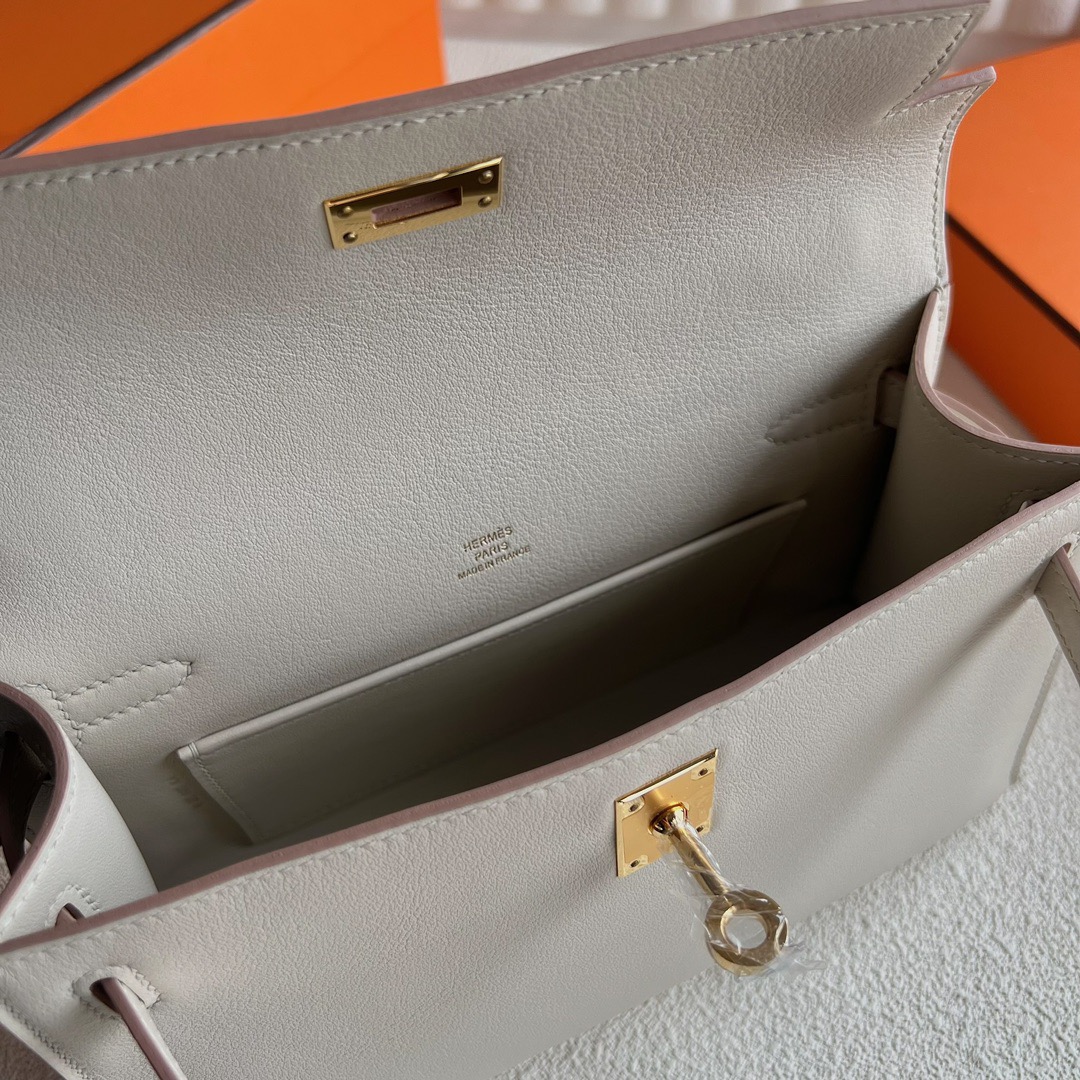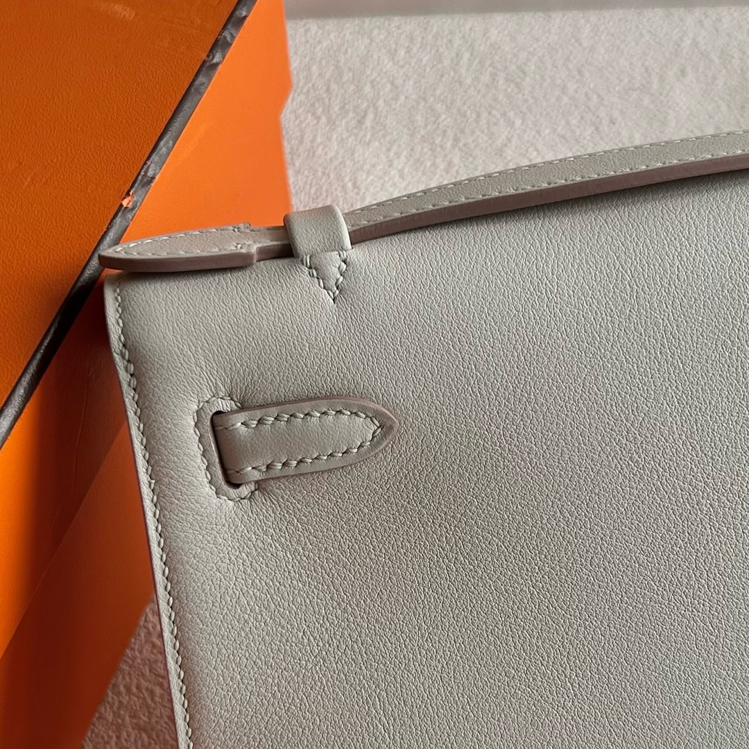 Hermes Mini Kelly Pochette 22cm Swift Original factory leather CK8L Beton 冰川白 Gold Hardware(GHW)
