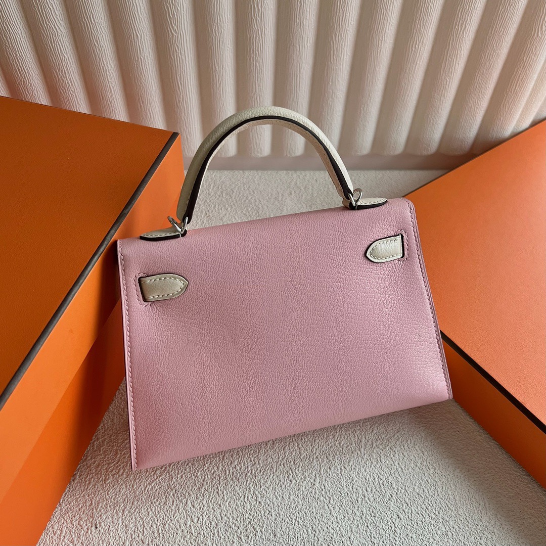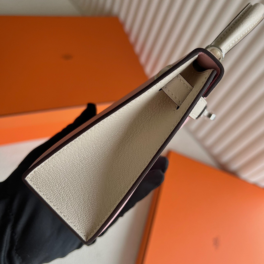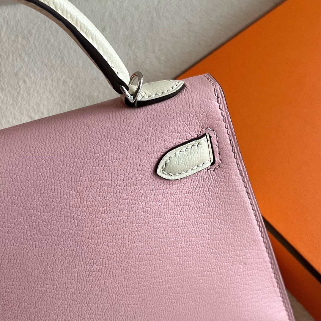 Hermès Special Order (HSS) Kelly Sellier 20 Mini Chevre Mysore 3Q Rose Sakura 樱花粉 / I2 Nata 奶油白 Palladium Hardware(PHW)