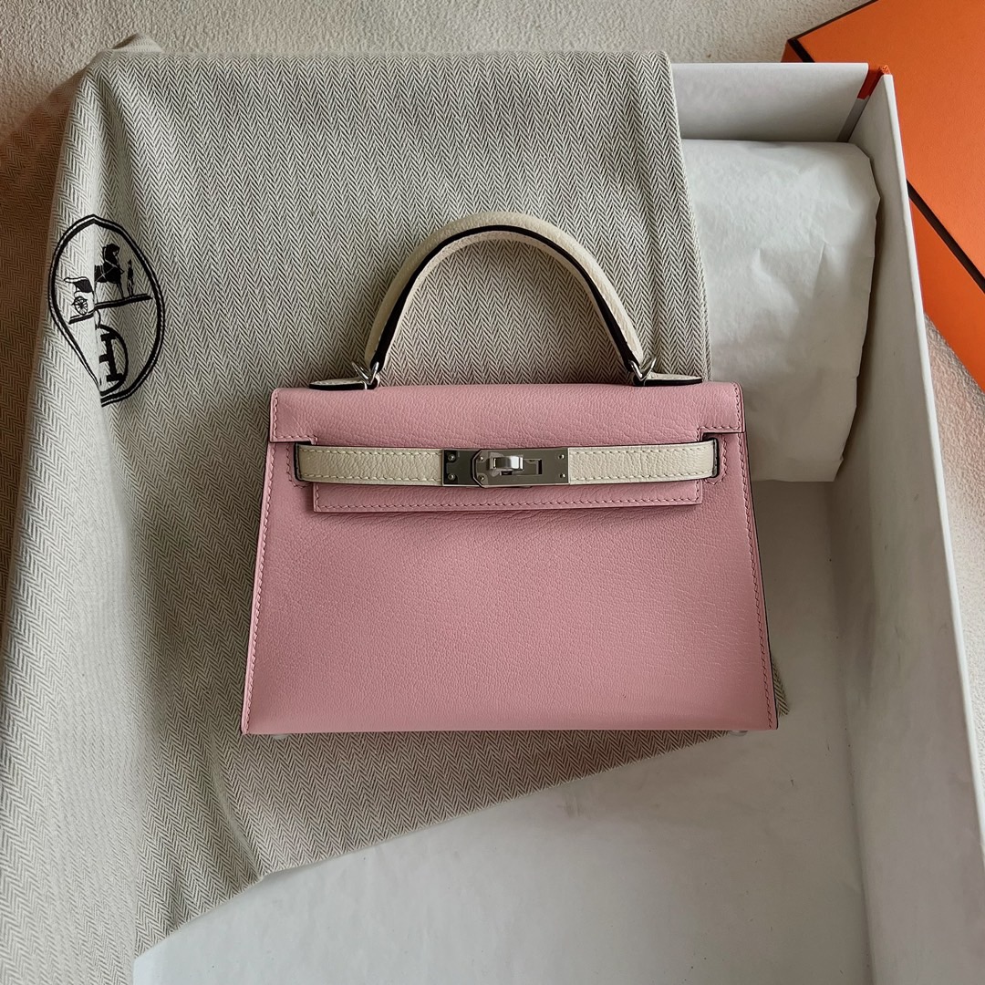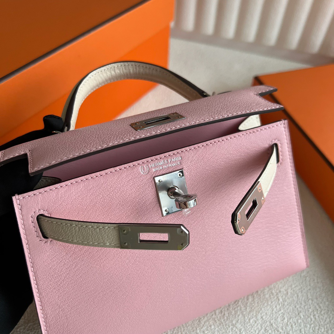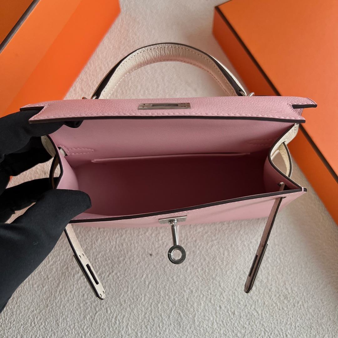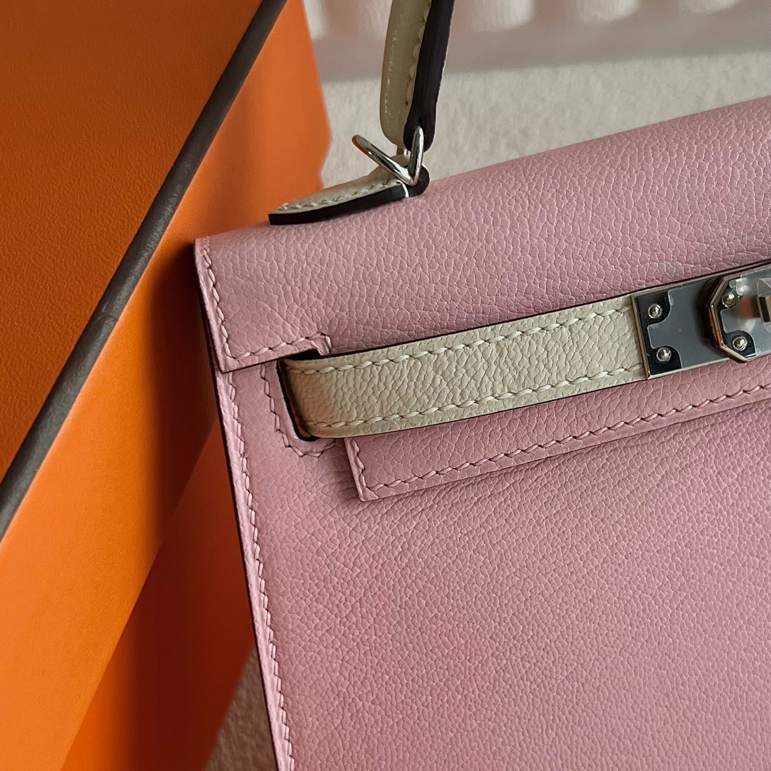 Hermès Special Order (HSS) Kelly Sellier 20 Mini Chevre Mysore 3Q Rose Sakura 樱花粉 / I2 Nata 奶油白 Palladium Hardware(PHW)
