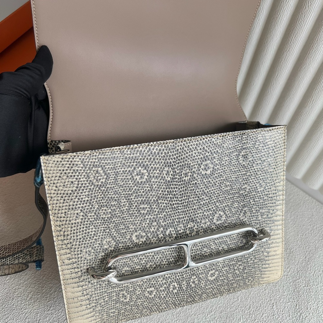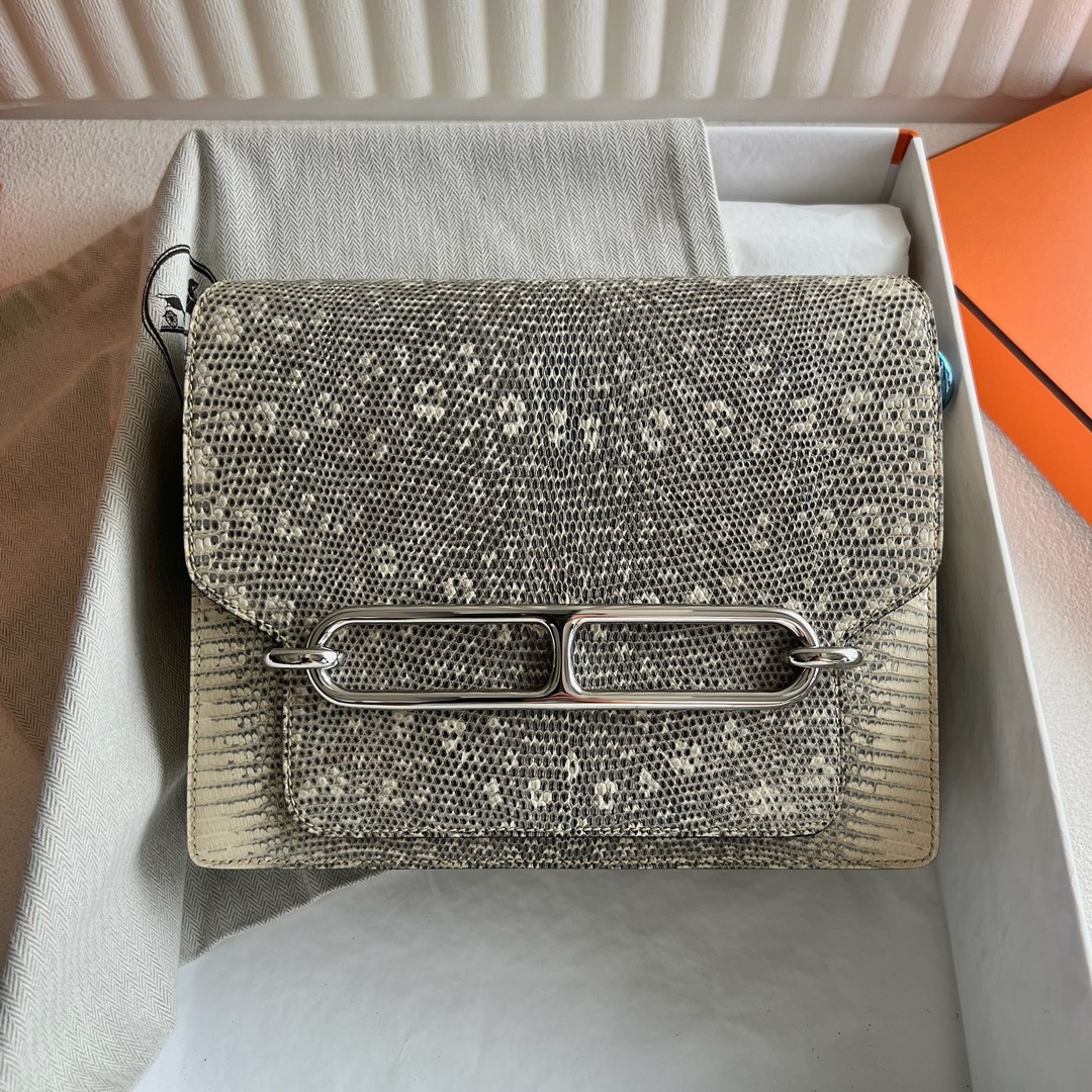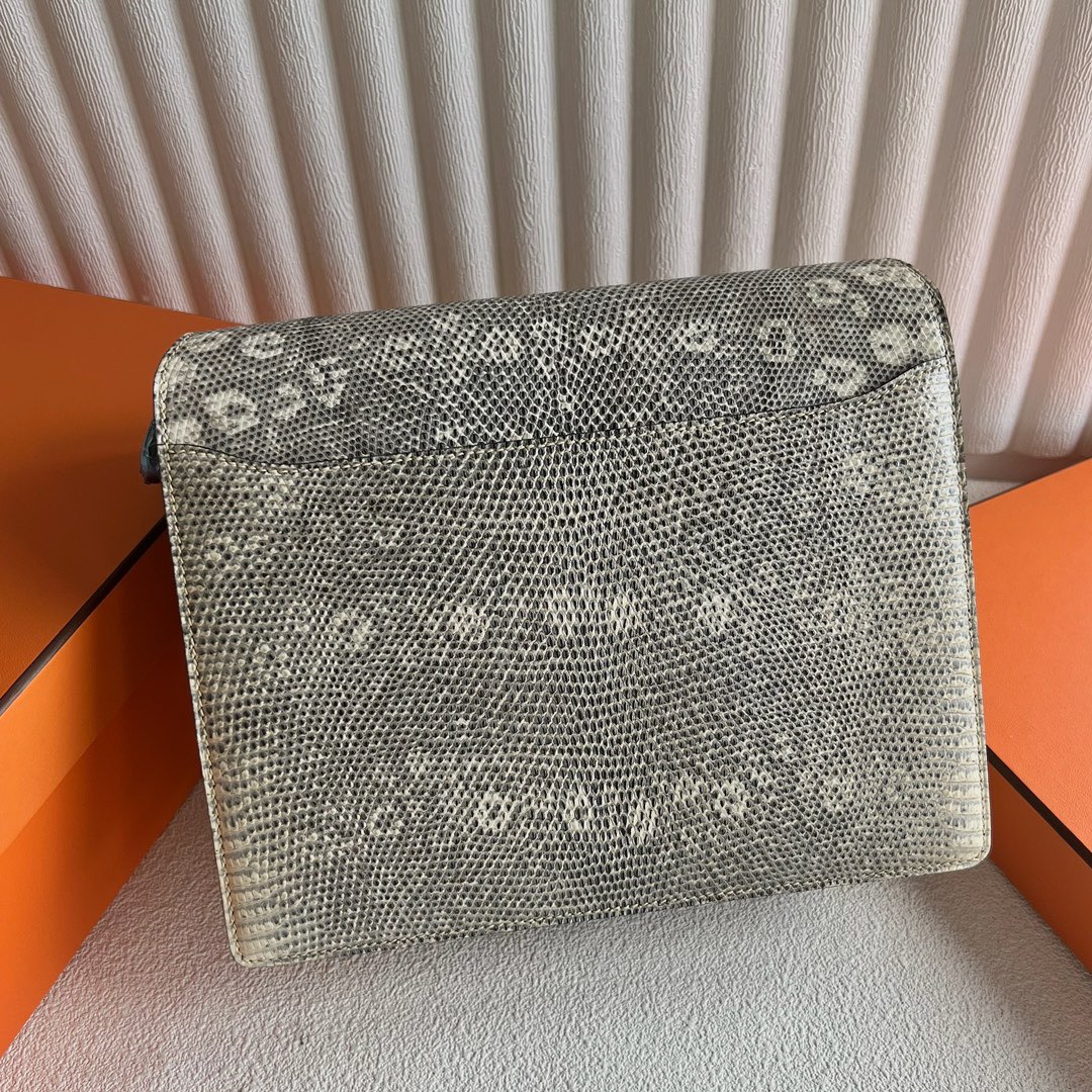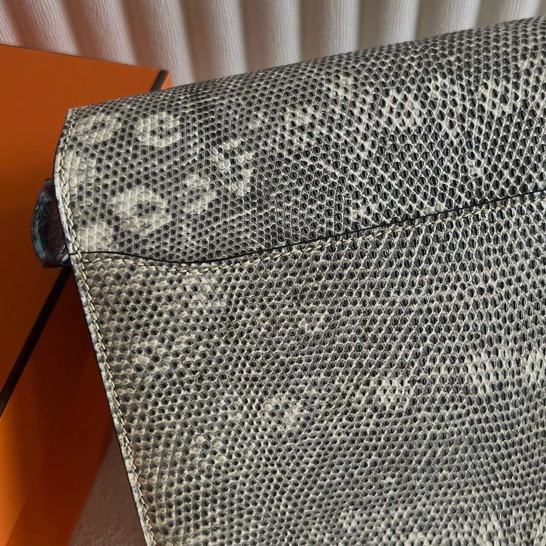 Hermès Roulis 23cm Lizard Leather 1B Ombre 自然色蜥蜴 雪花色蜥蜴 、 1D Desert 原色蜥蜴偏黄色