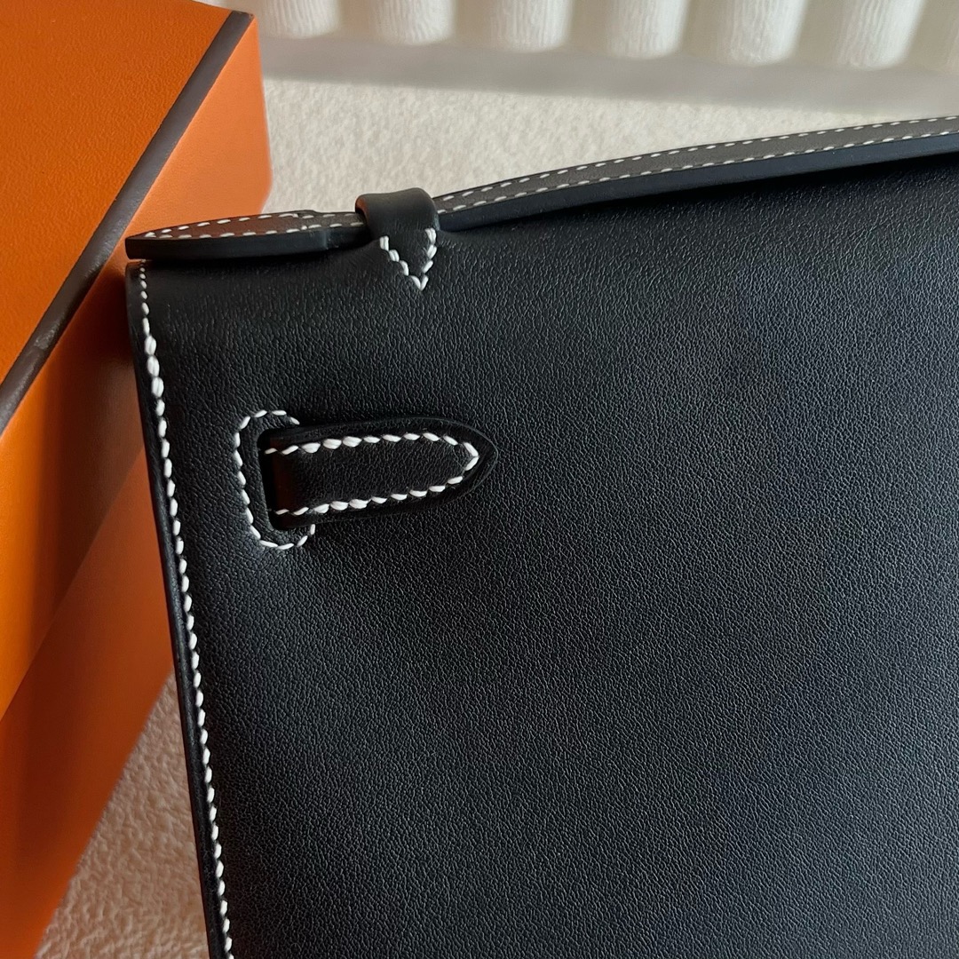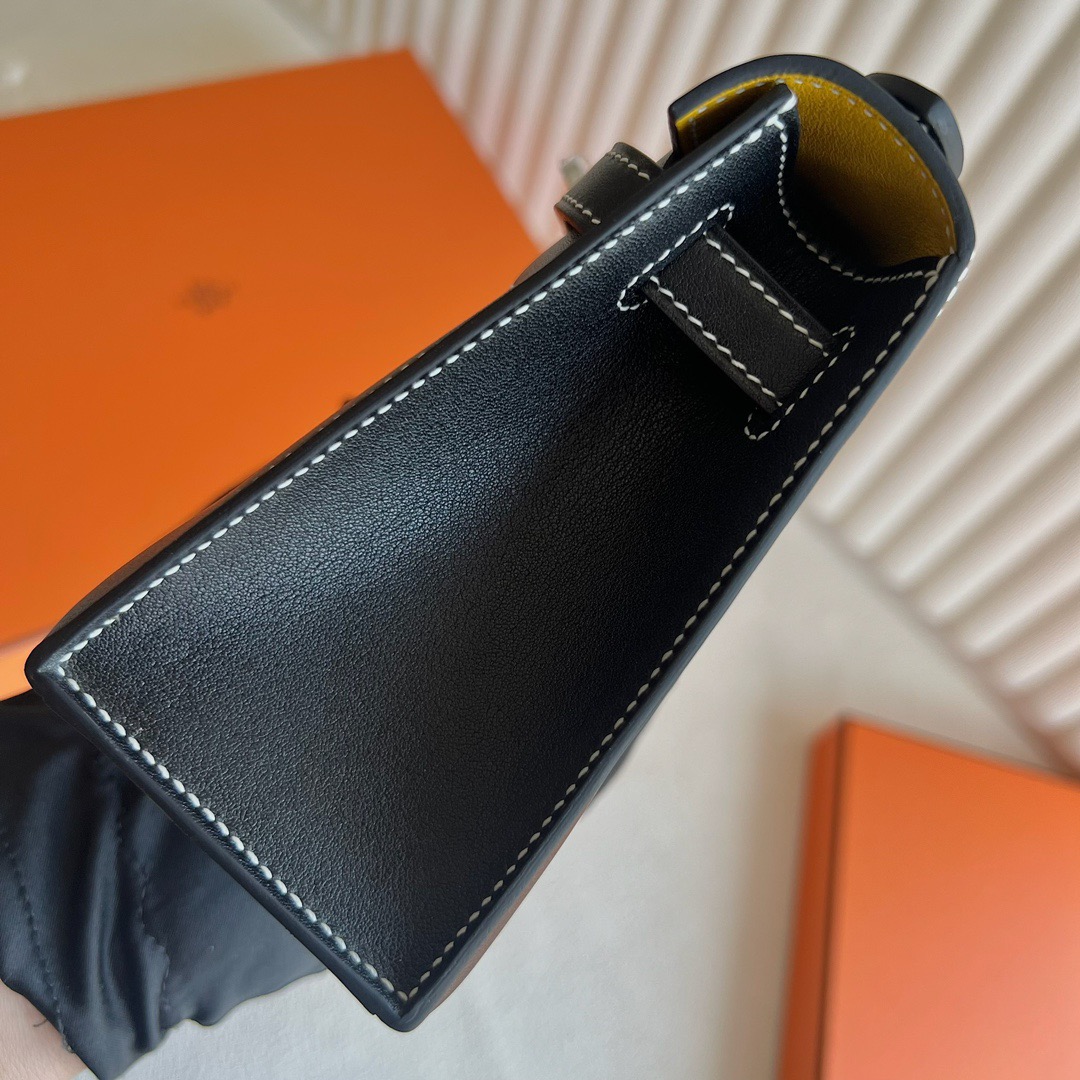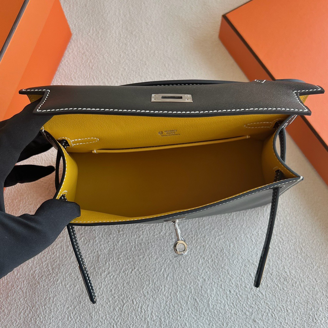 Hermès Special Order Mini Kelly Pochette 22cm Swift Leather CK89 Noir 黑色 And 9D Jaune Ambre 琥珀黄 Palladium Hardware(PHW)